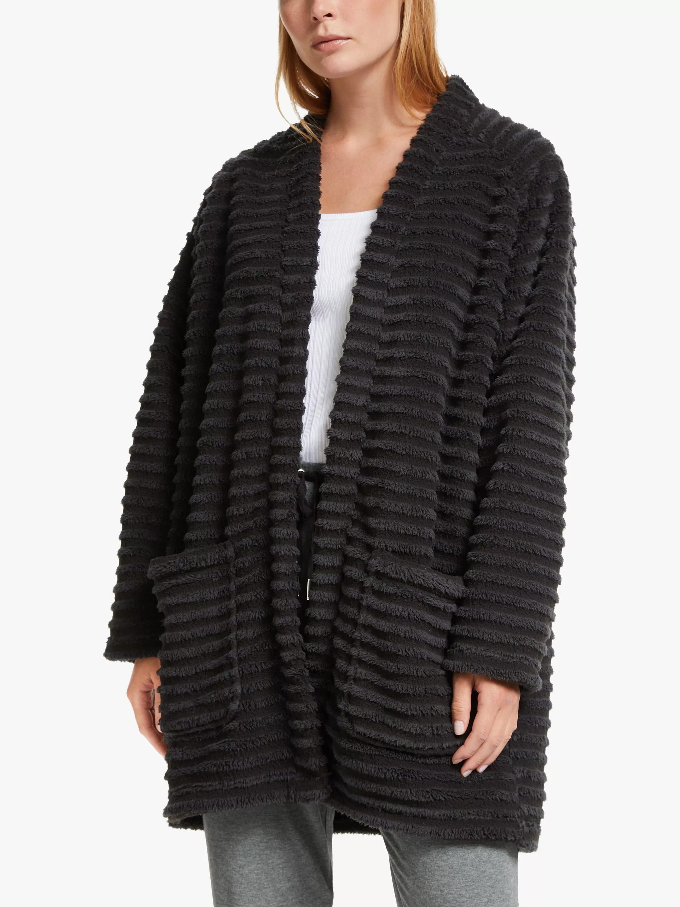 A comfy throw-on layer, we've designed this piece with a super soft pile and chunky ribbed texture that feels warm and cosy on the skin. We've shaped it with raglan sleeves and an enveloping relaxed fit with front patch pockets to keep hands toasty too.