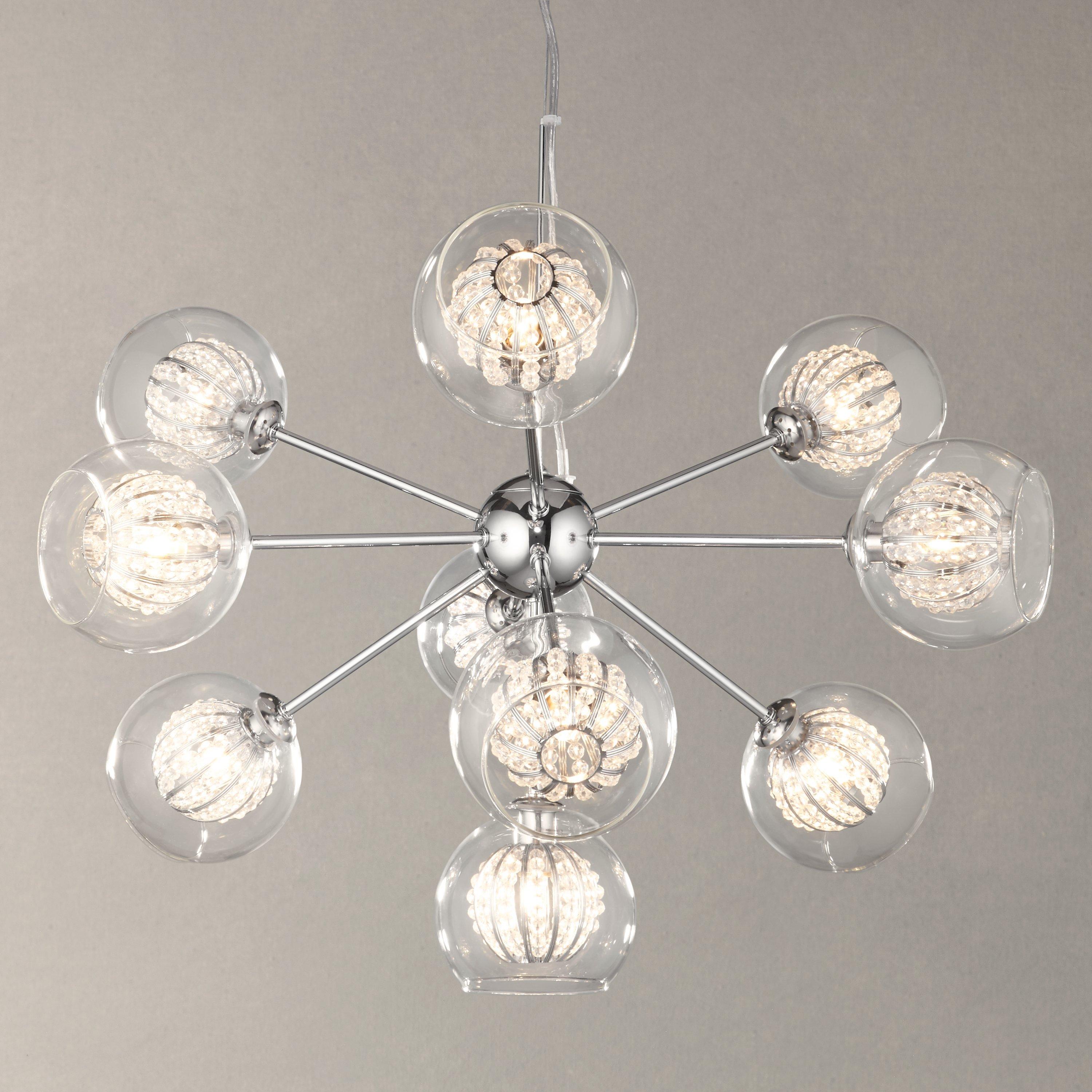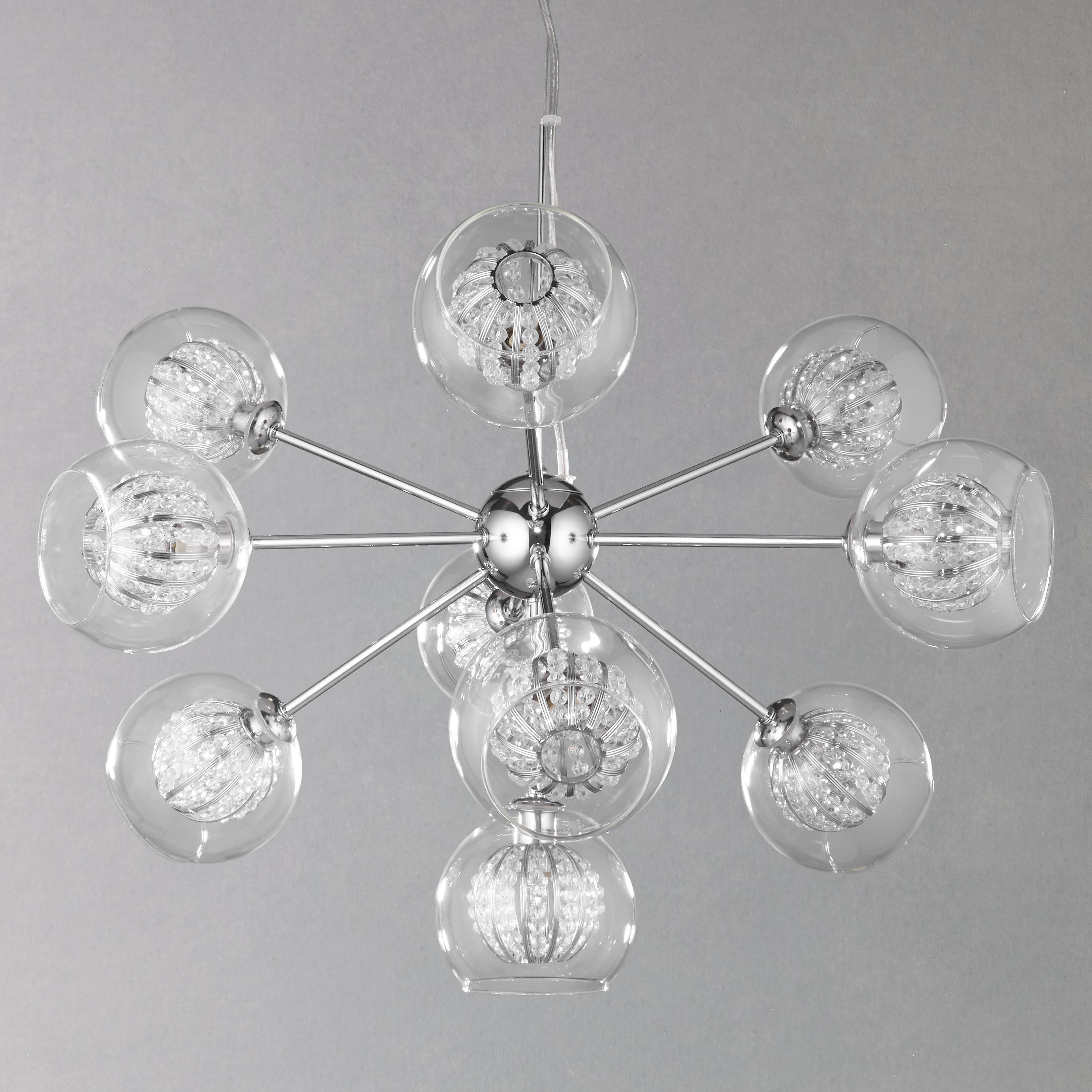 A beautiful burst of bling for the ceiling, this light has ten shades each containing an orb of crystals that reflect and refract the light from each bulb. It's the ideal light for making a statement in your living room.