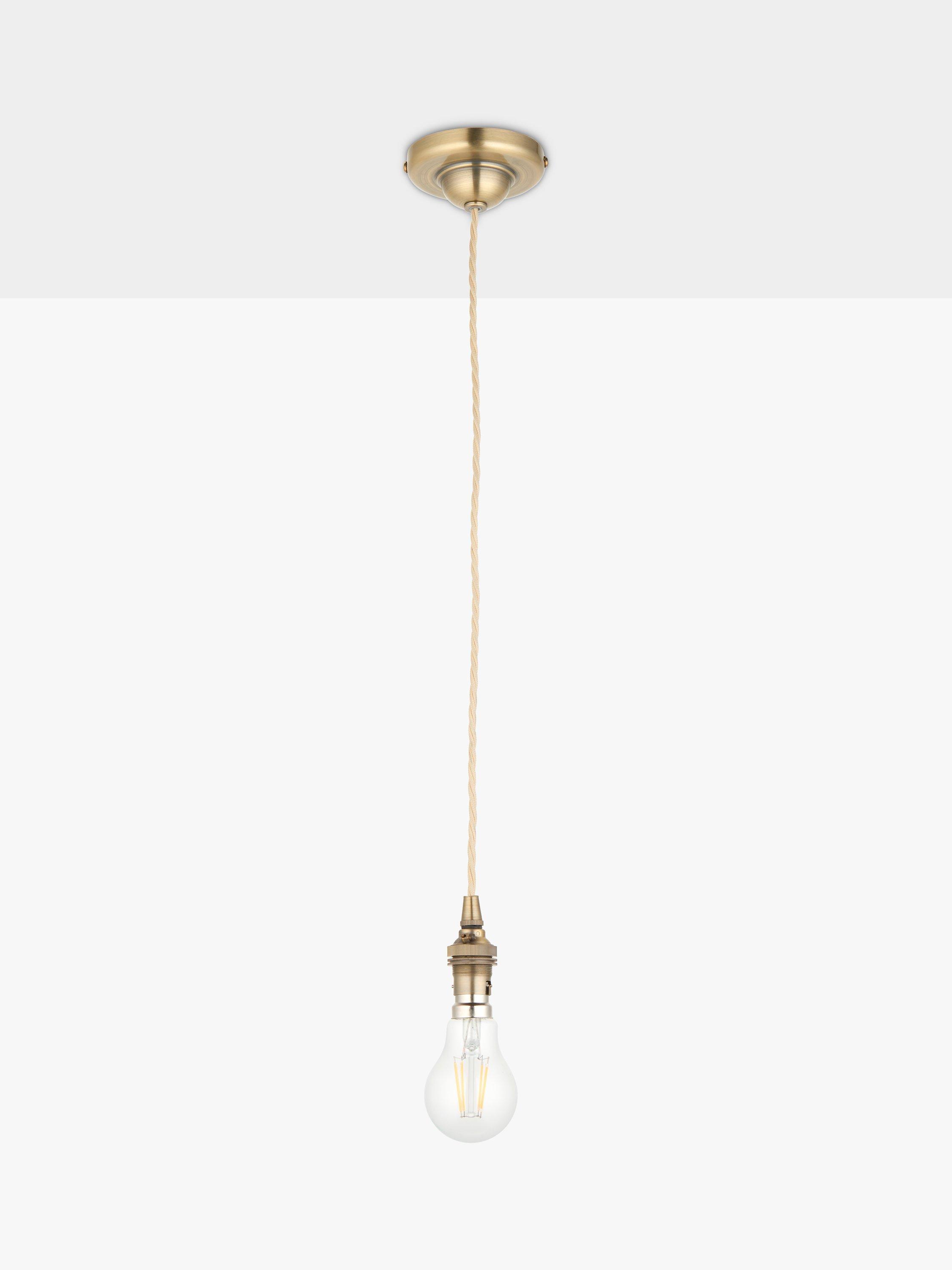 Our quintessential classic cable set compliments any classic pendant shade or easy-fit lamp shade. A traditional Bayonet Cap fitting is suspended from a twisted fabric cable.