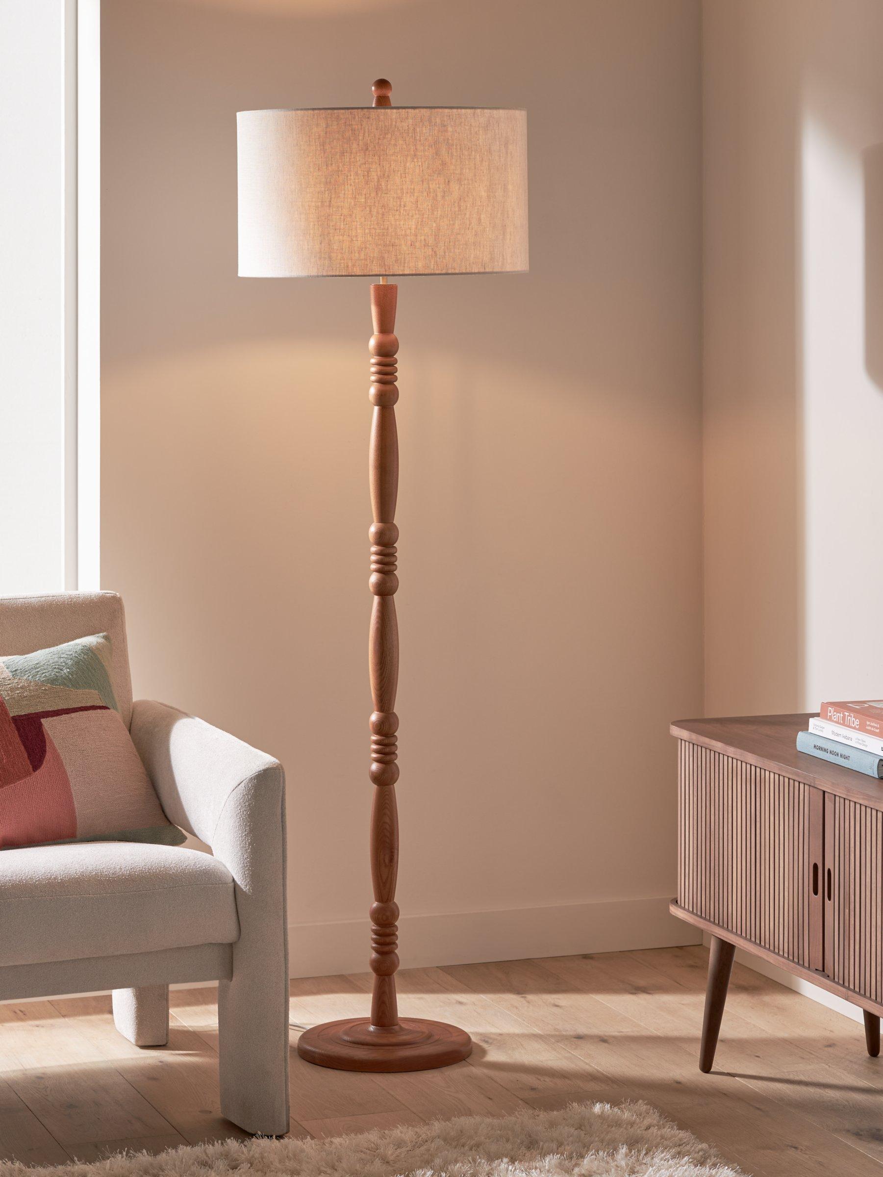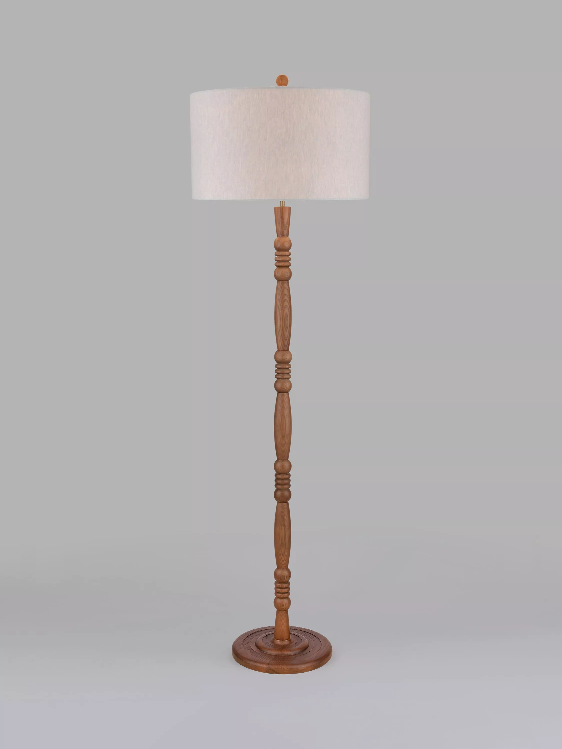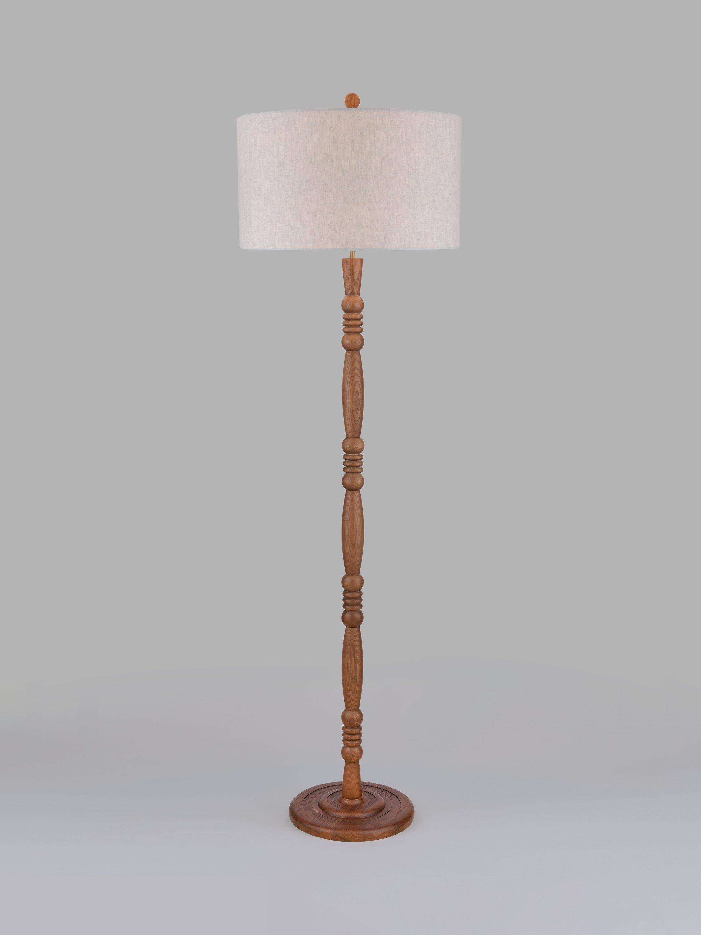 This floor lamp is designed with a classic candlestick silhouette. The lamp's stem rises up from a turned, solid ash base and the drum lampshade adds a warm wash of light that suits a variety of living spaces.