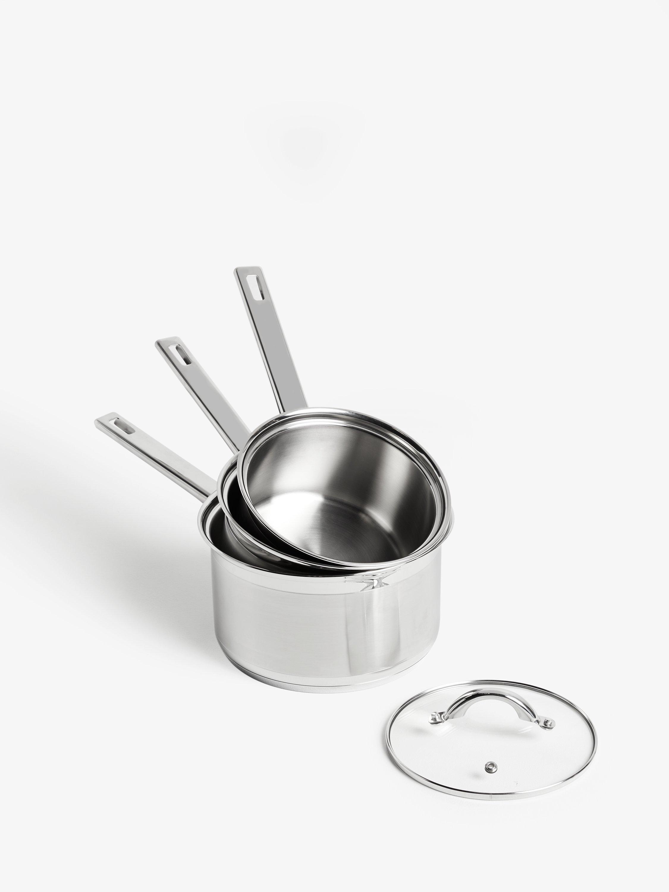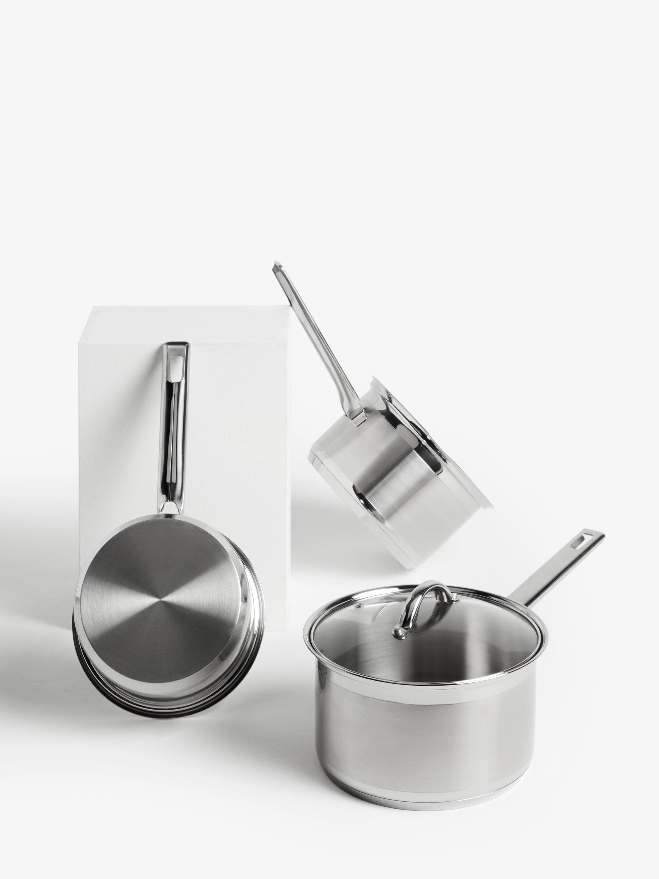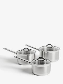 John LewisClassic Glass Lid Stainless Steel Saucepan Set, 3 Pieces