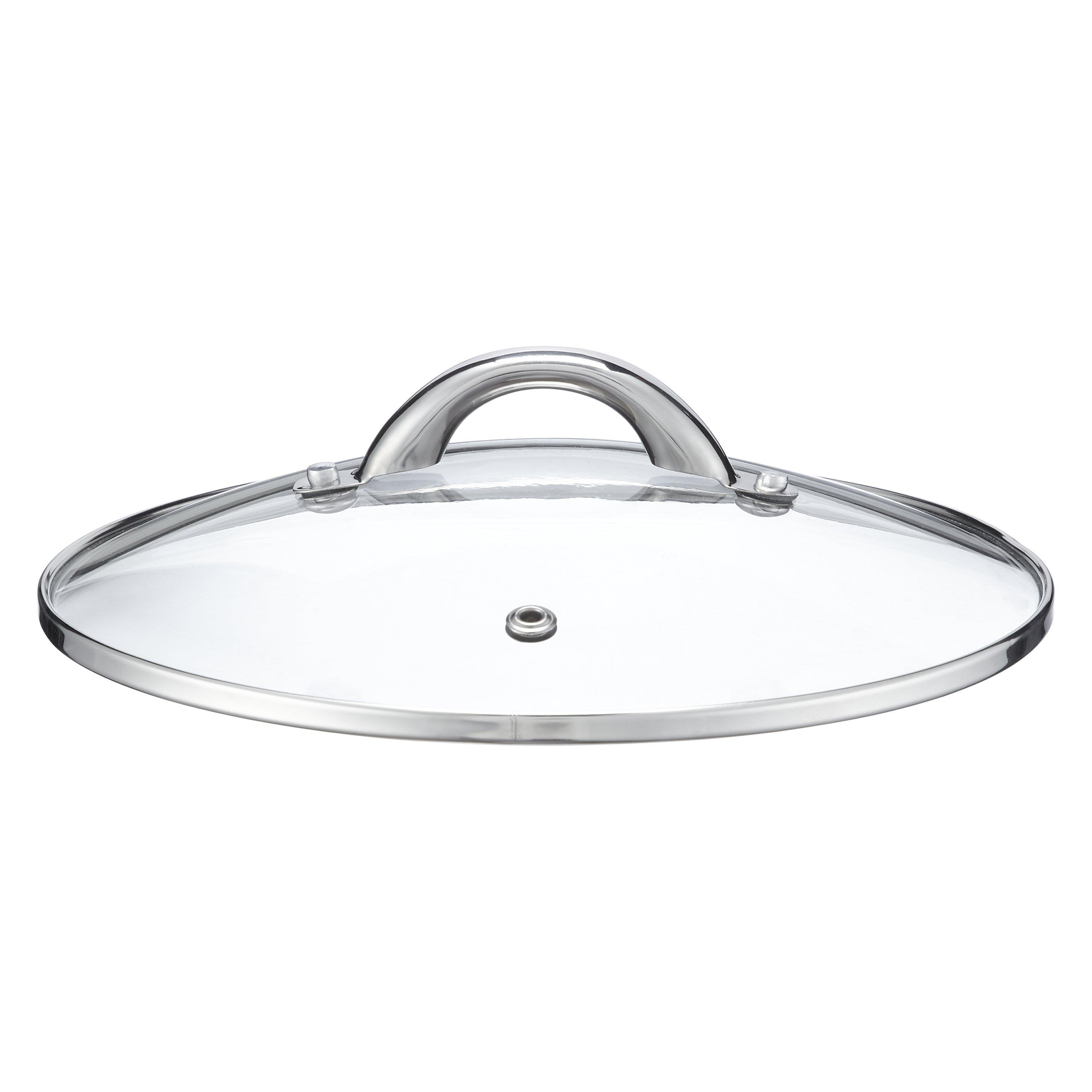 - Saucepans with glass lids, built-in lid rests and stepped rims to prevent drips