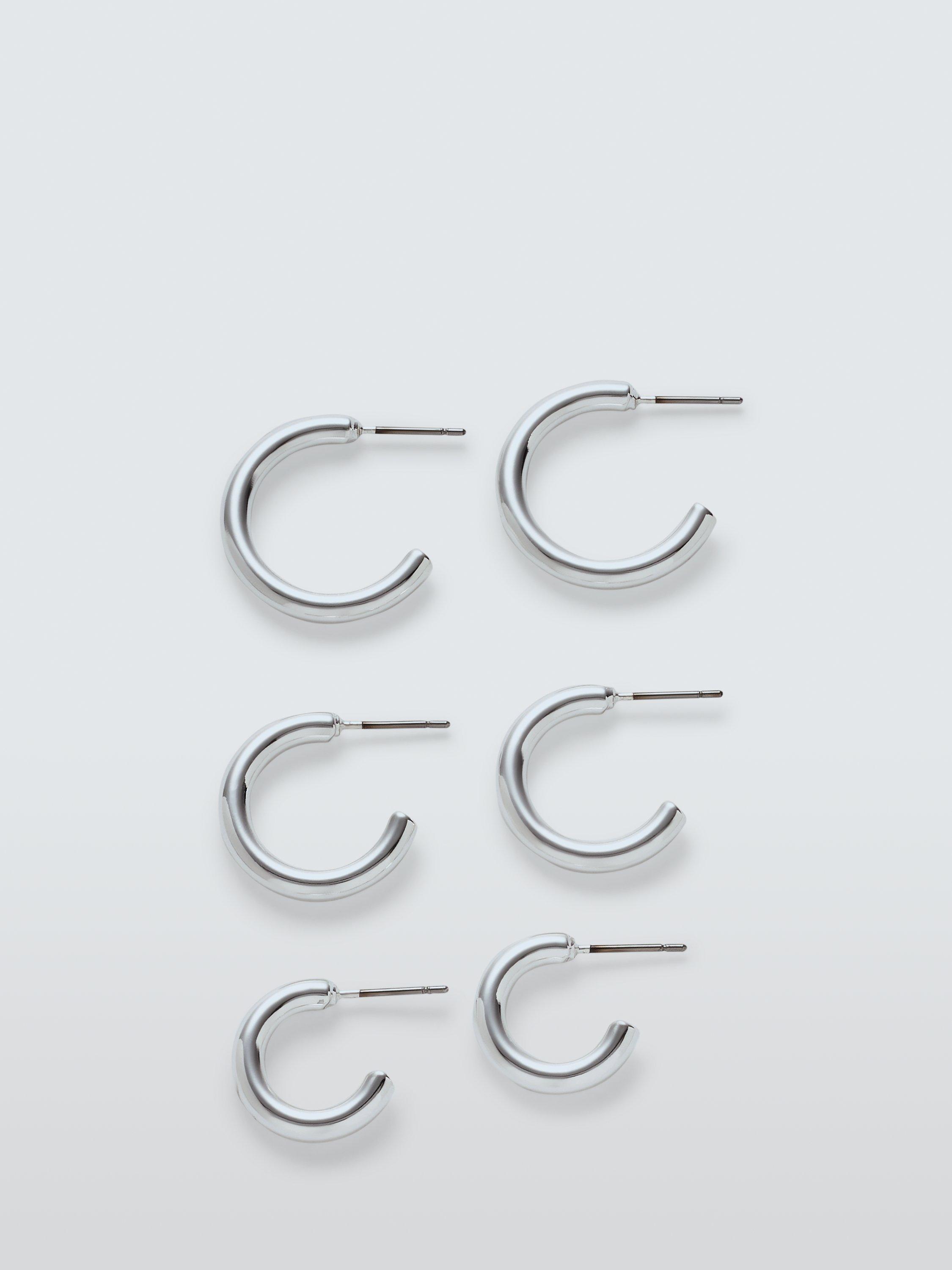 A pack of three different-sized, highly polished hoop earrings. Sleek and highly wearable with any oufit, they're suitable for pierced ears only.