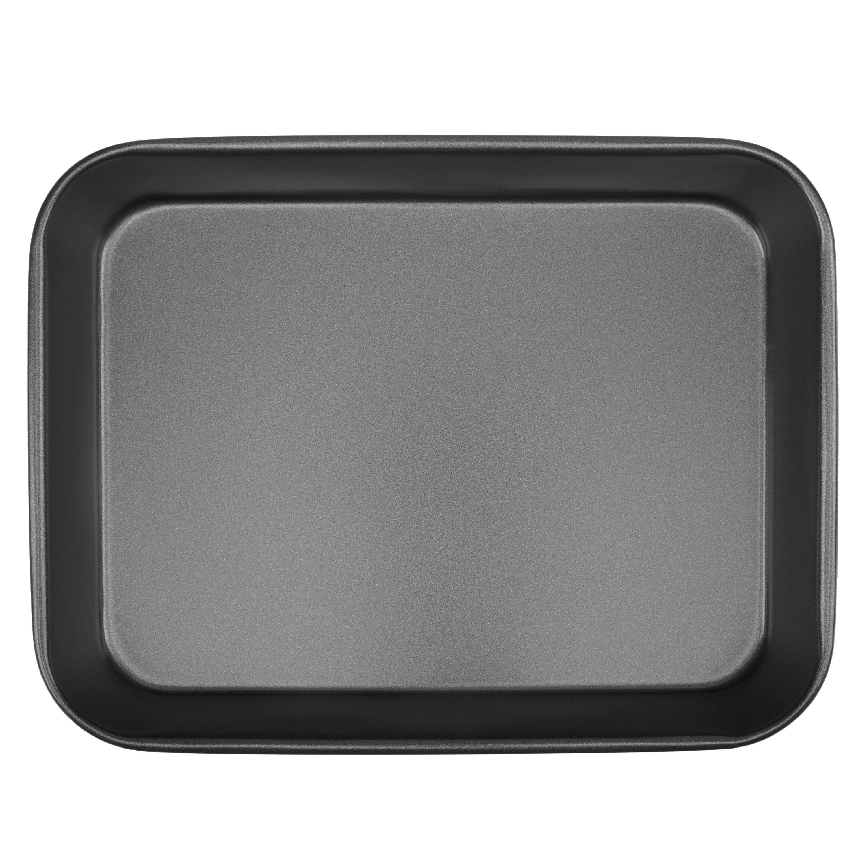 This roaster is made from durable carbon steel and won't warp. The non-stick coating ensures excellent food release and easy cleaning while the high sides contain spitting and splashing from meat juices.