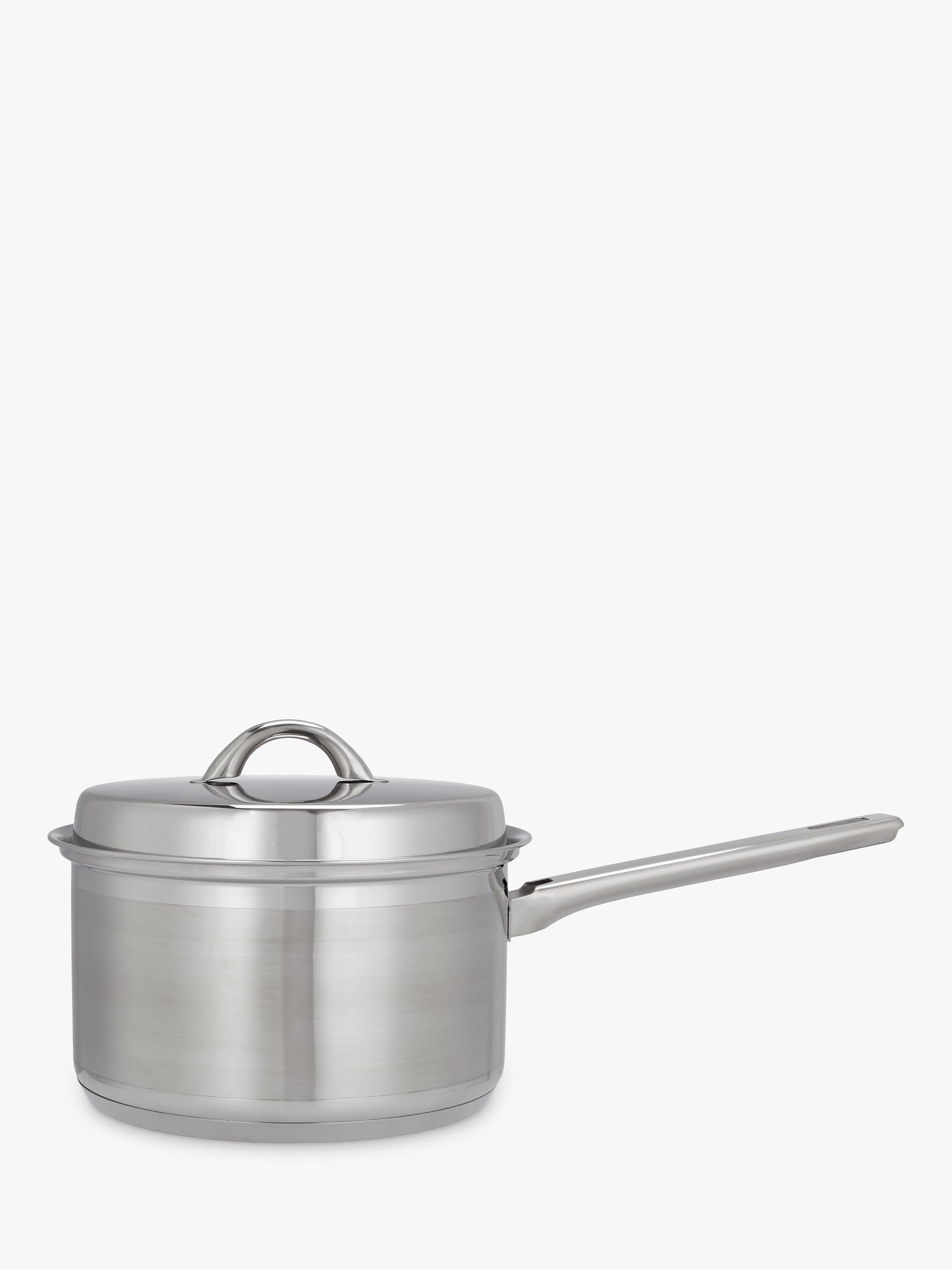 - Saucepans with lids, built-in lid rests and stepped rims to prevent drips
