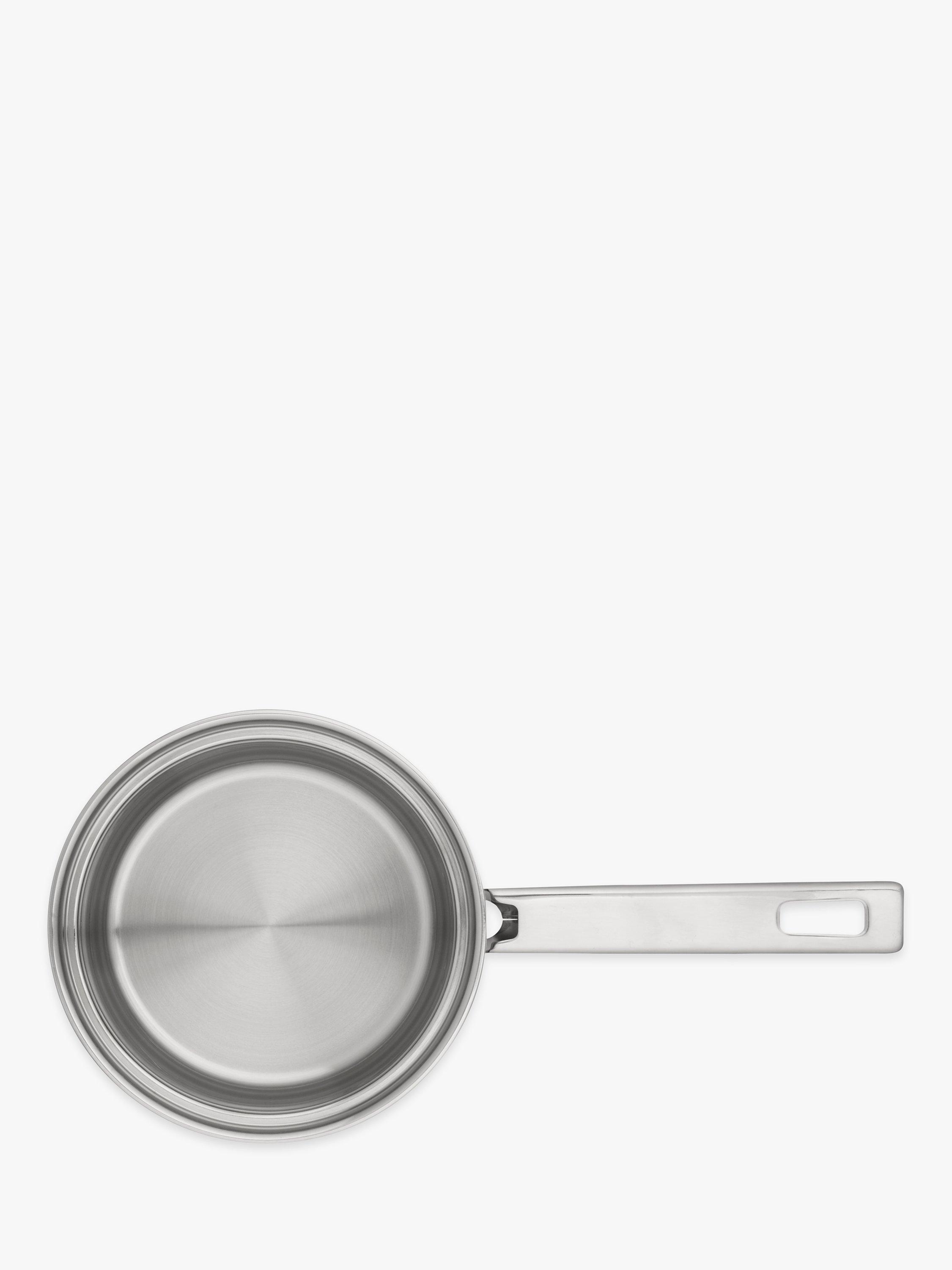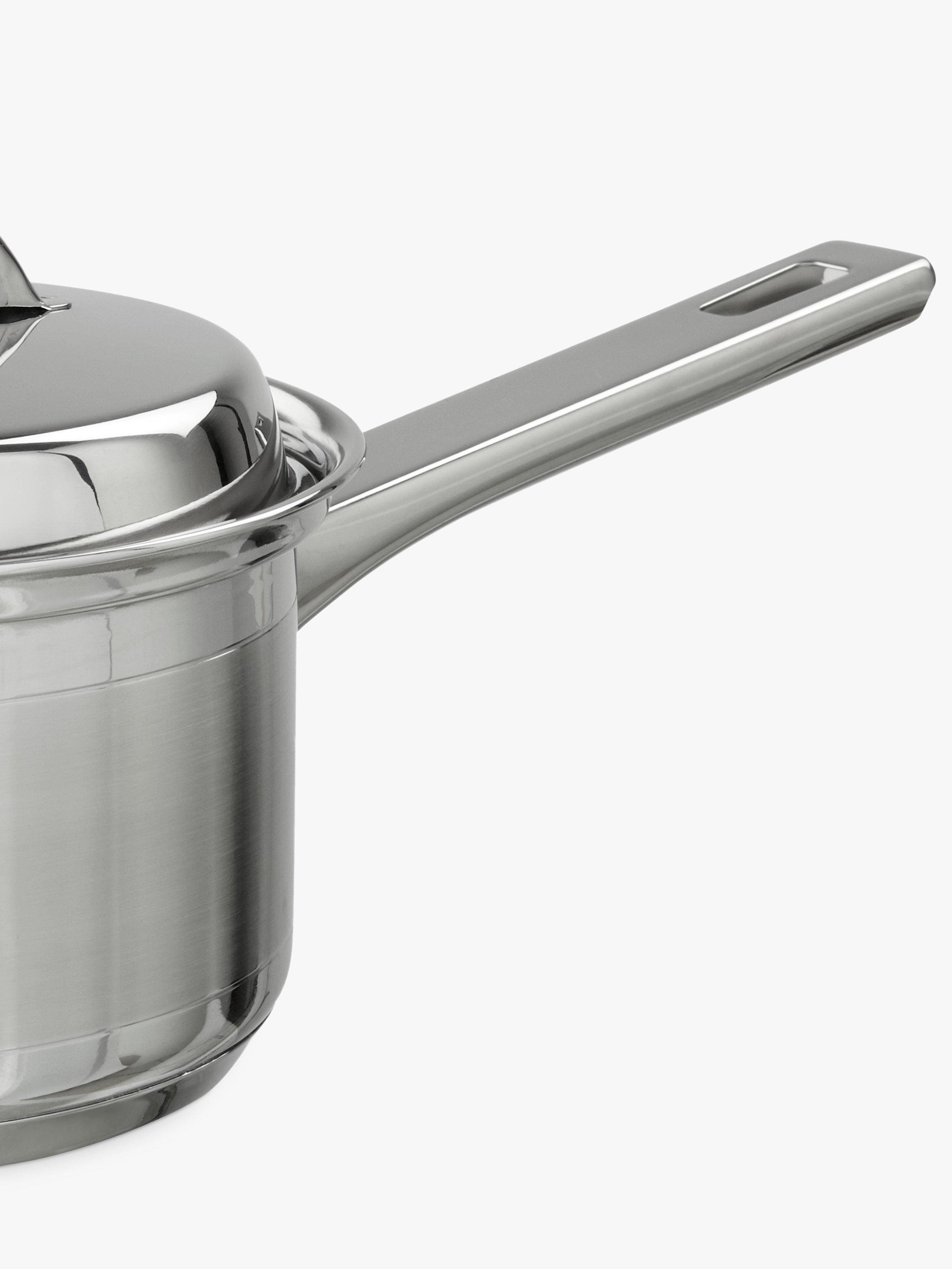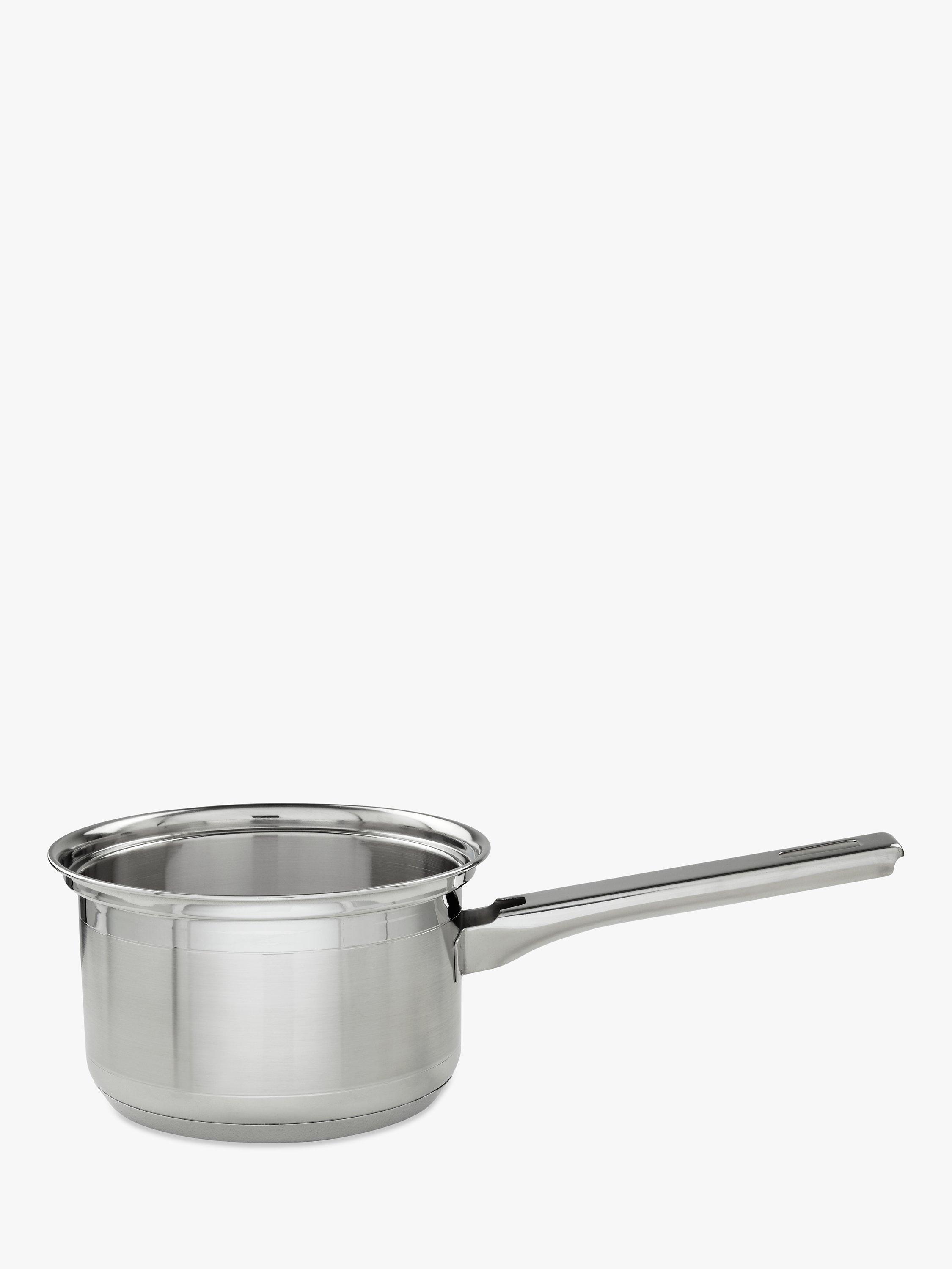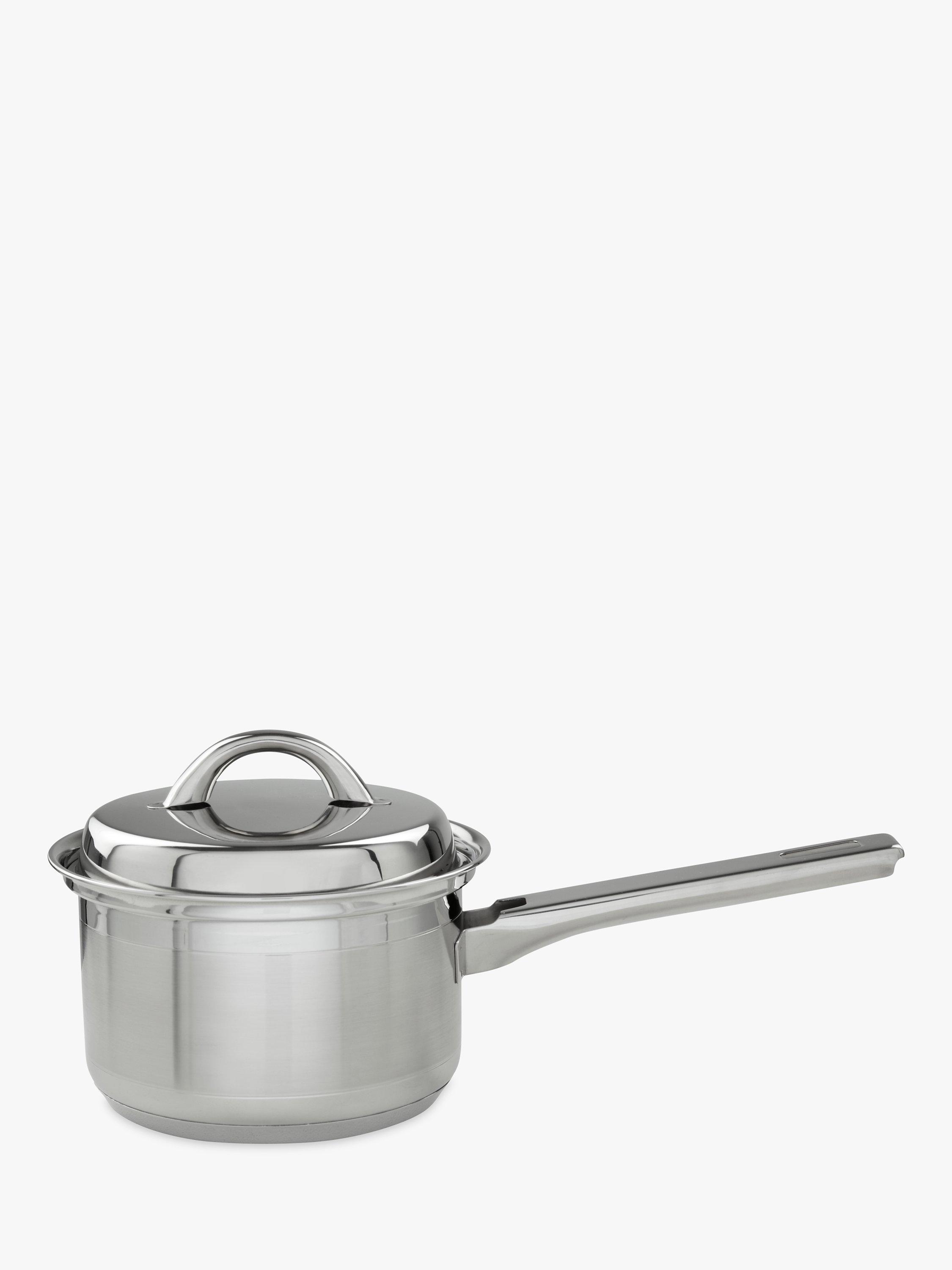 - Saucepans with lids, built-in lid rests and stepped rims to prevent drips