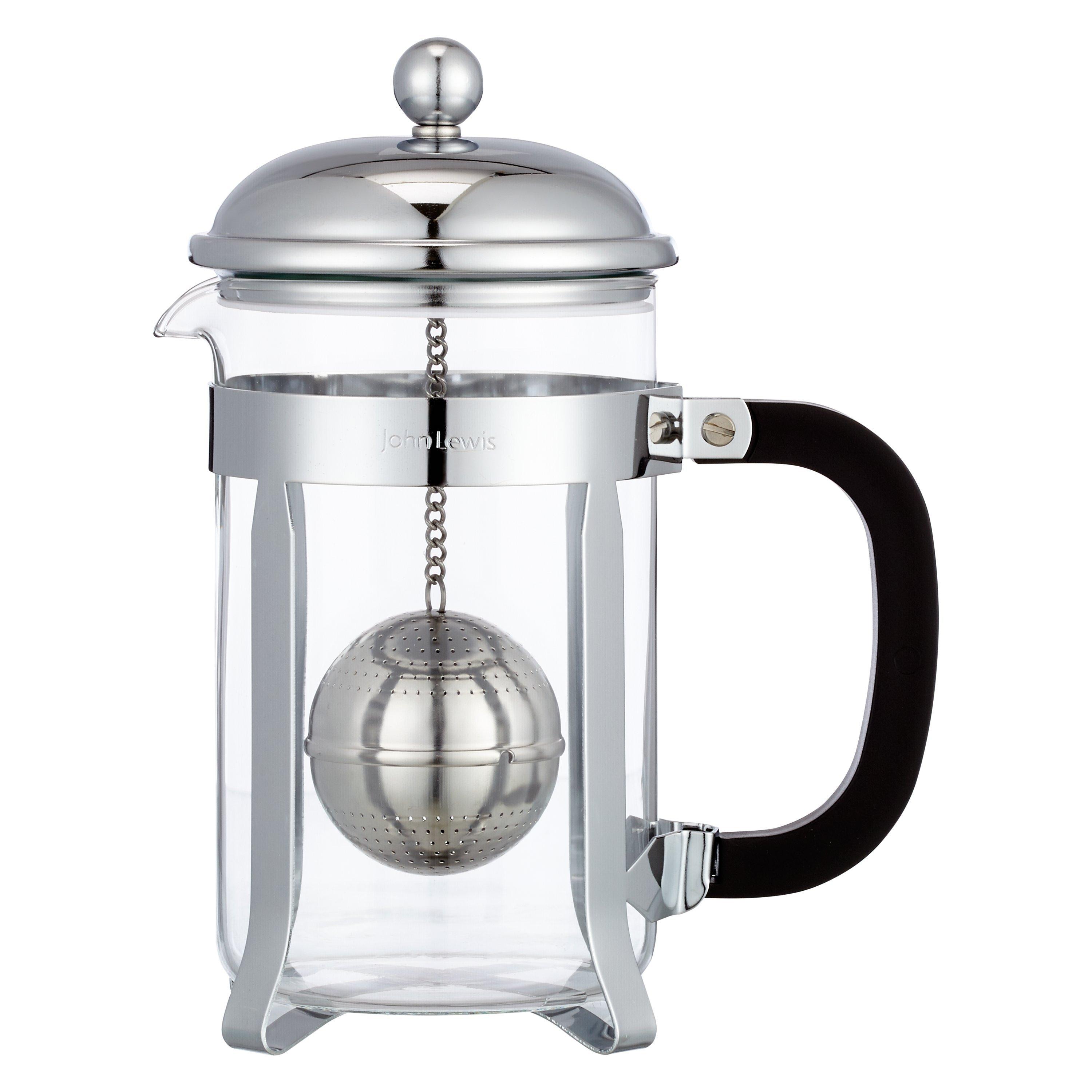 Our modern classic tea maker is made of heat resistant borosilicate glass and stainless steel. This piece also features a hanging loose leaf tea infuser and an easy pour spout. A kitchen necessity for every tea aficionado.