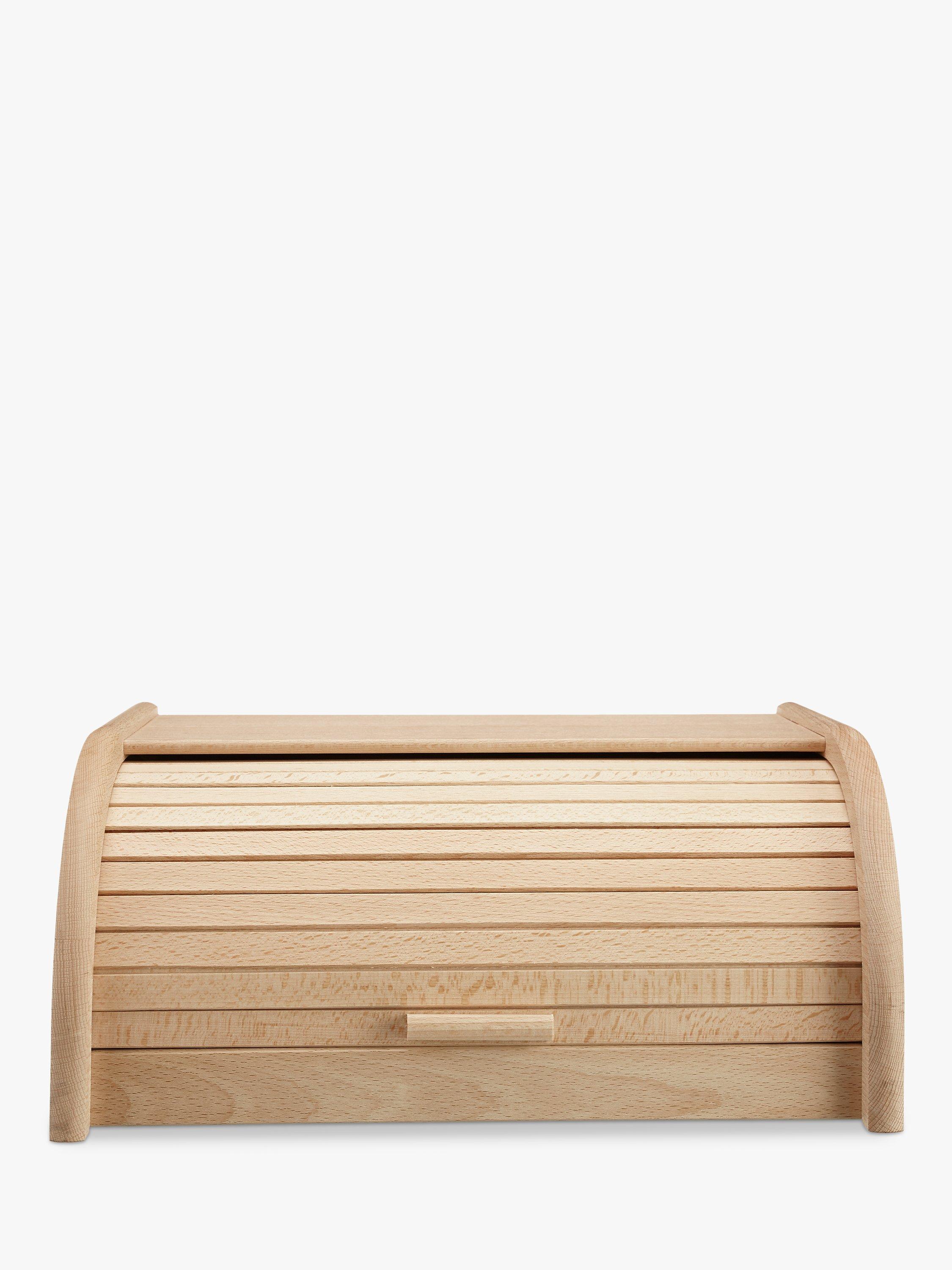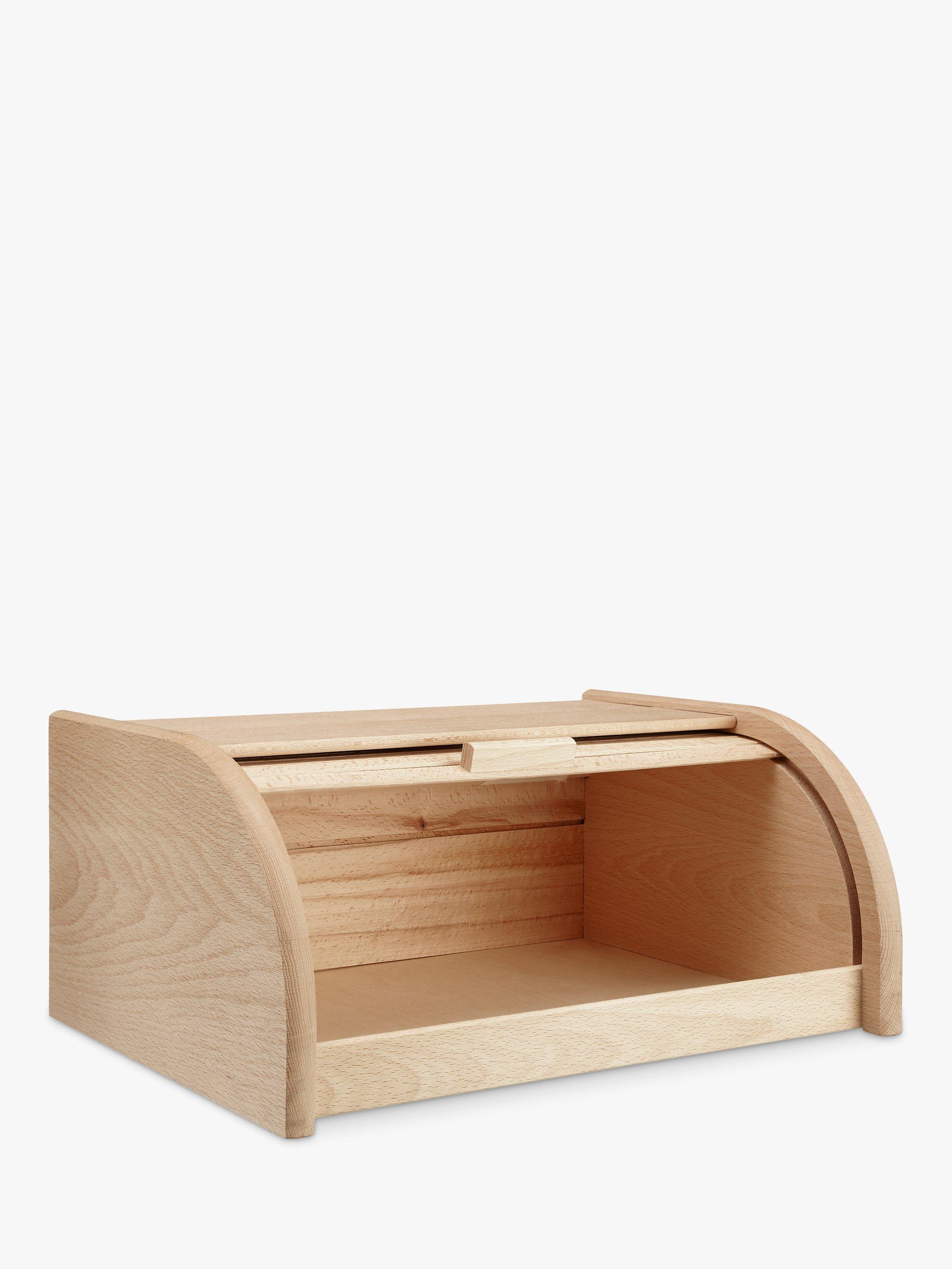 This classic style bread bin is made from solid beech wood and features a smooth roll top lid for easy access to the contents and a flat top which makes a handy shelf for extra kitchen storage. The beech wood has been sourced from European forests.