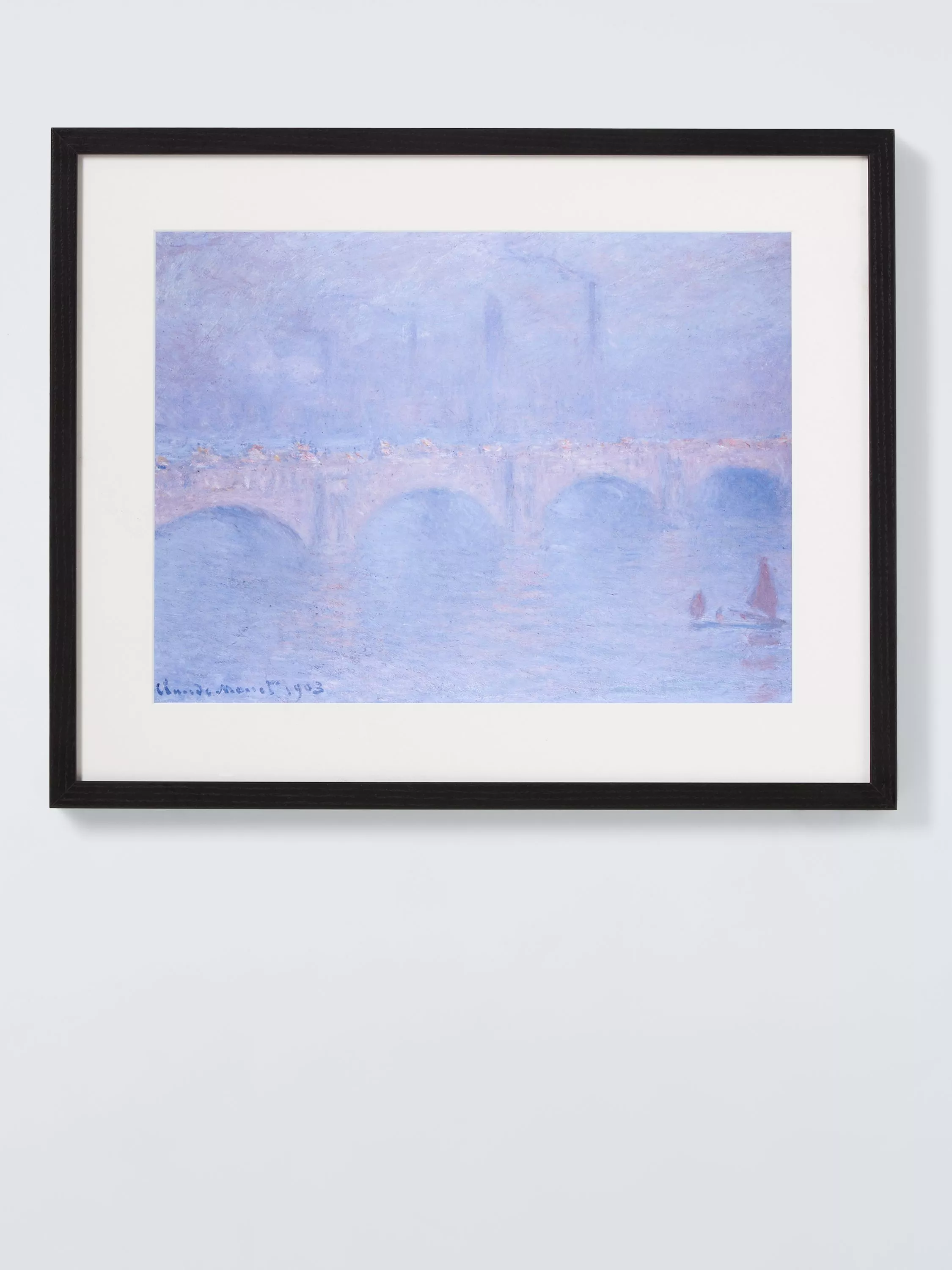 London cityscape by French painter Claude Monet, the founder of Impressionism and the subject of a major new exhibition, Monet and London, at the Courtauld Gallery. Printed, glazed, and framed in solid ash wood to museum quality, ready to hang on your wall.