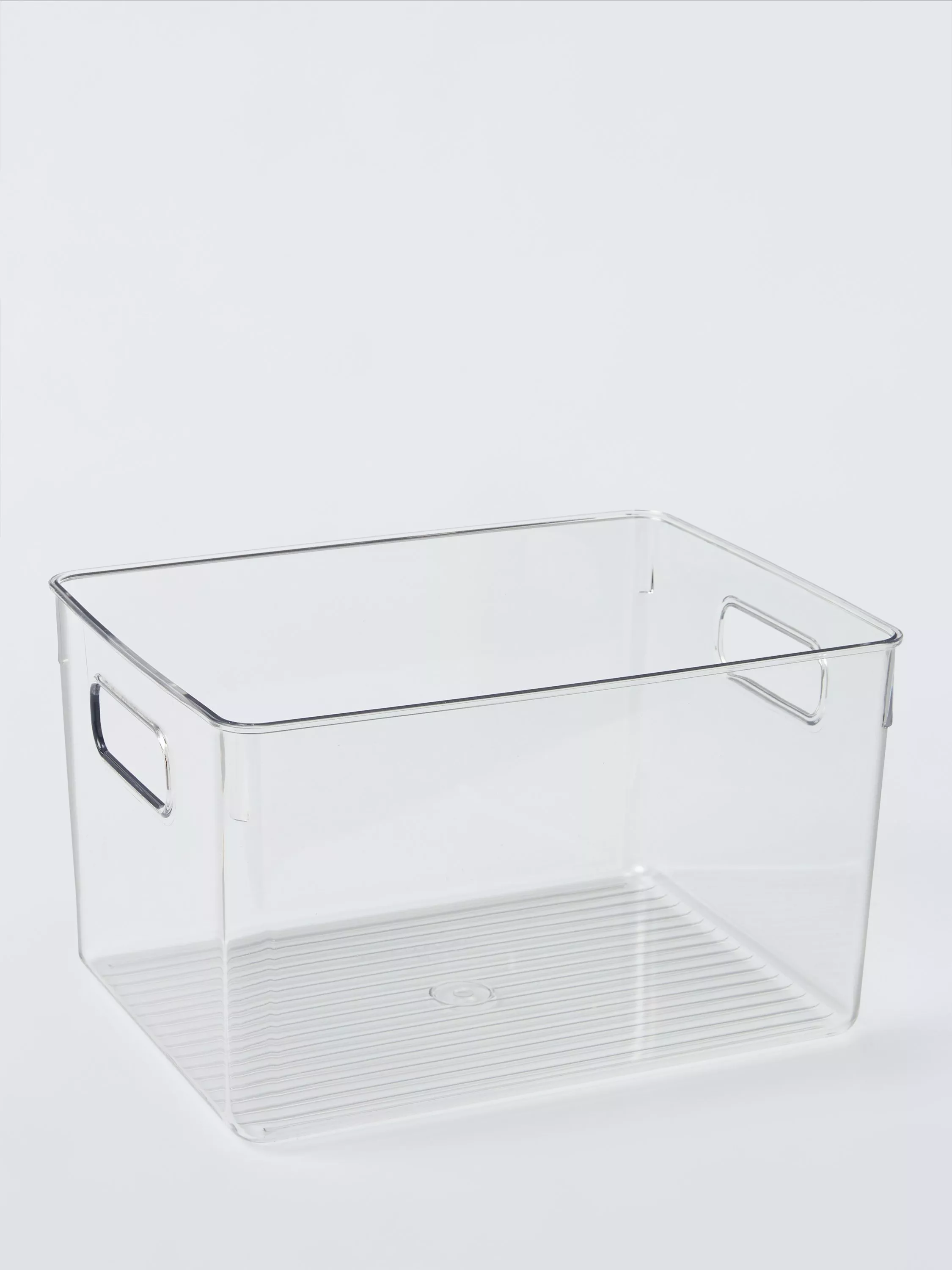 Keep your home tidy with our storage box. It's the perfect size for tidying away everyday items, with strong handles that make it easy to carry. The multi-purpose design works in any room, and the easy-to-clean clear plastic lets you see what's inside.