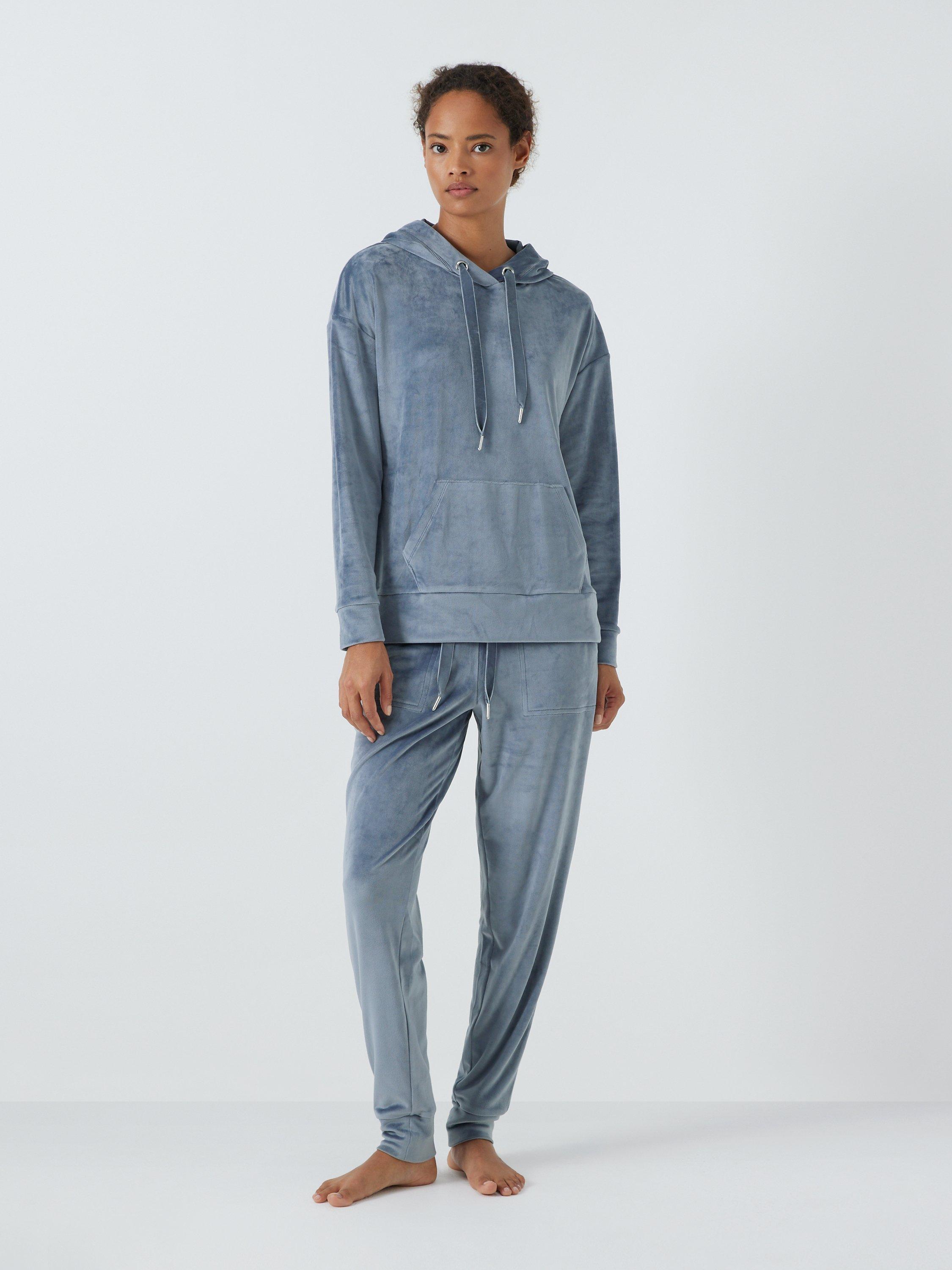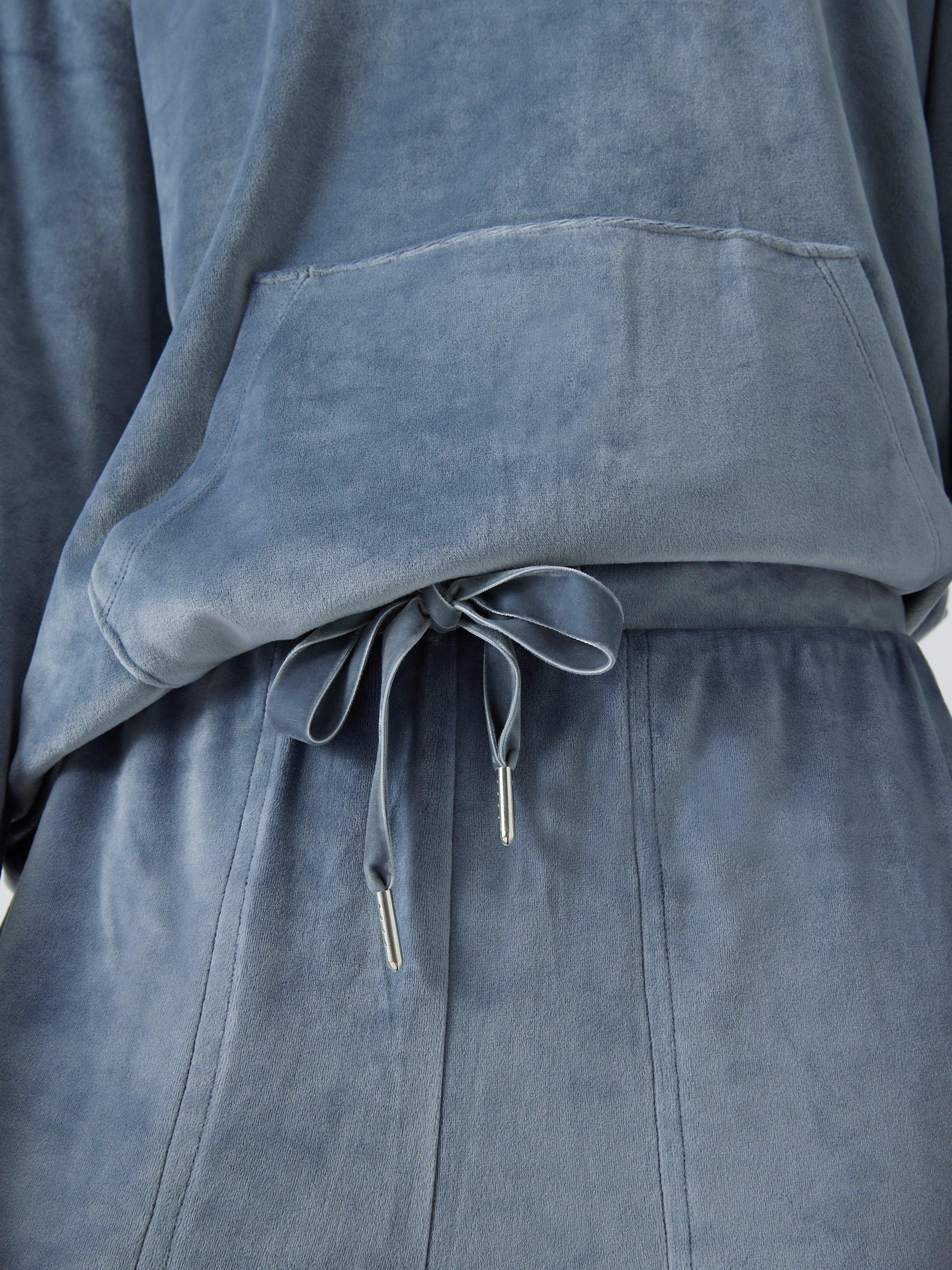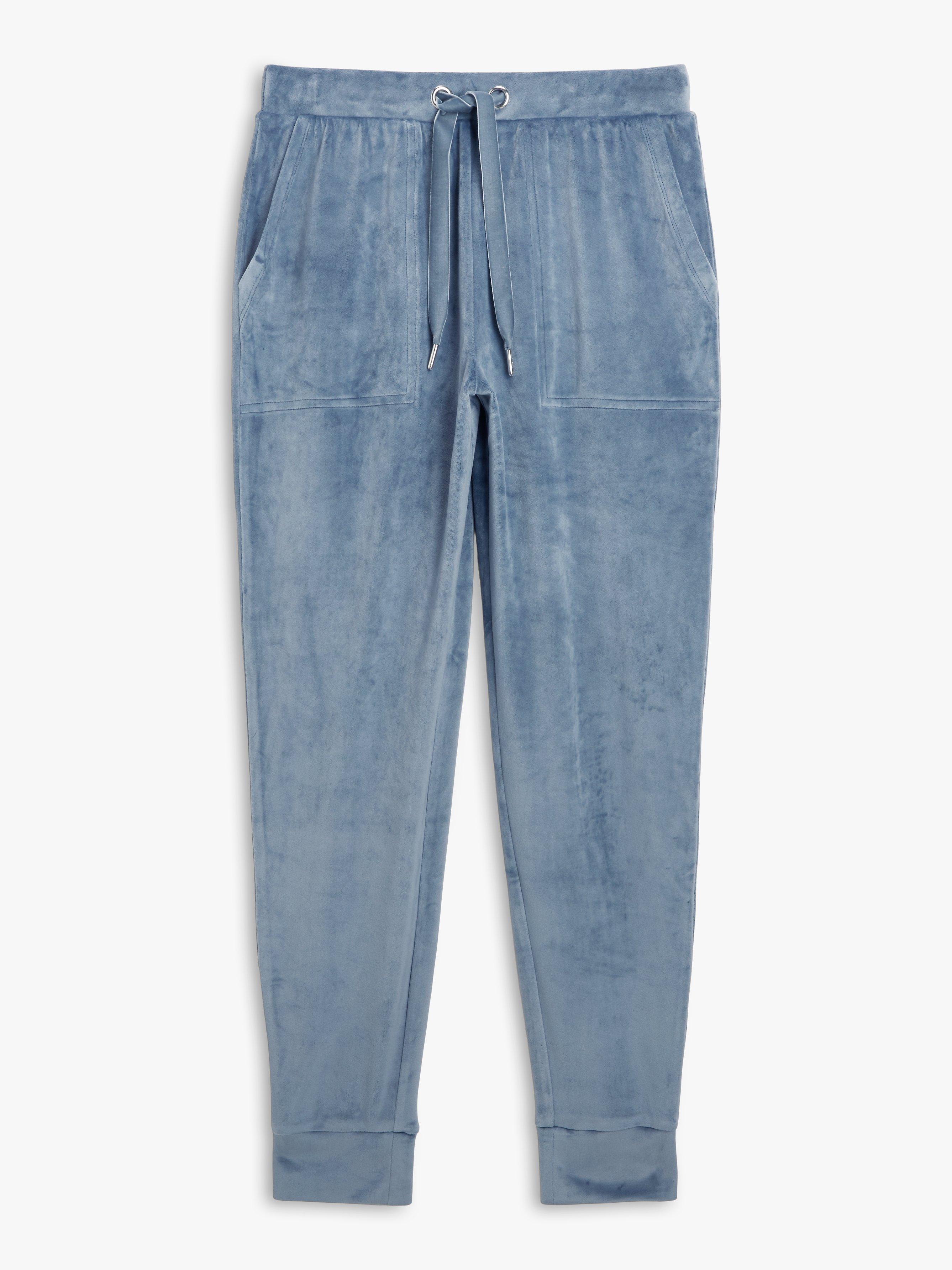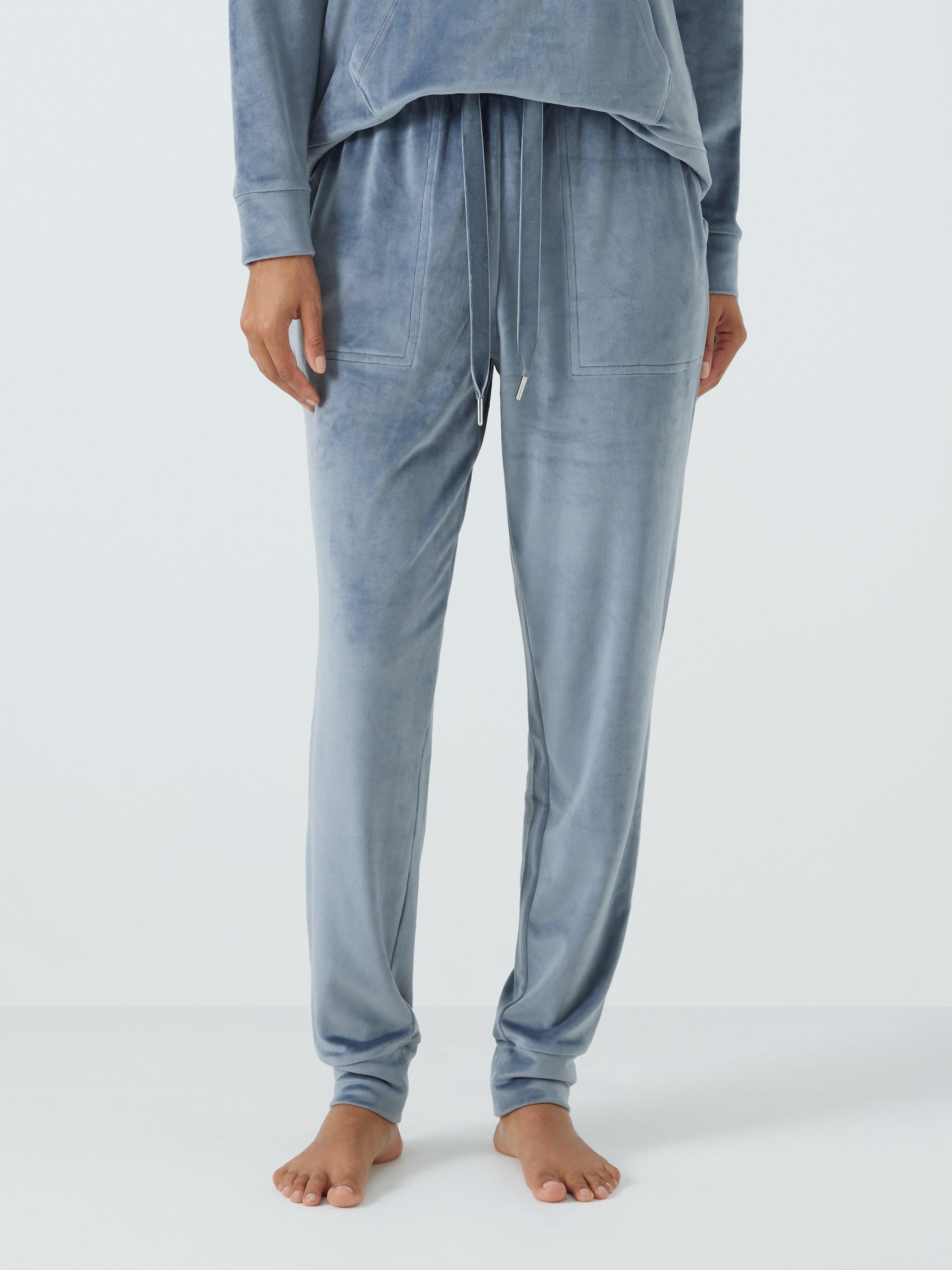 The trousers are made from velour so it has the right balance of warmth, durability and a soft sheen that looks and feels great. Ensuring comfort with an elasticated waistband, we've elevated these lounge pants with front pockets and a tapered fit, adding silver-toned eyelets and detailing to the velvet ribbon tie ends for a premium feel.