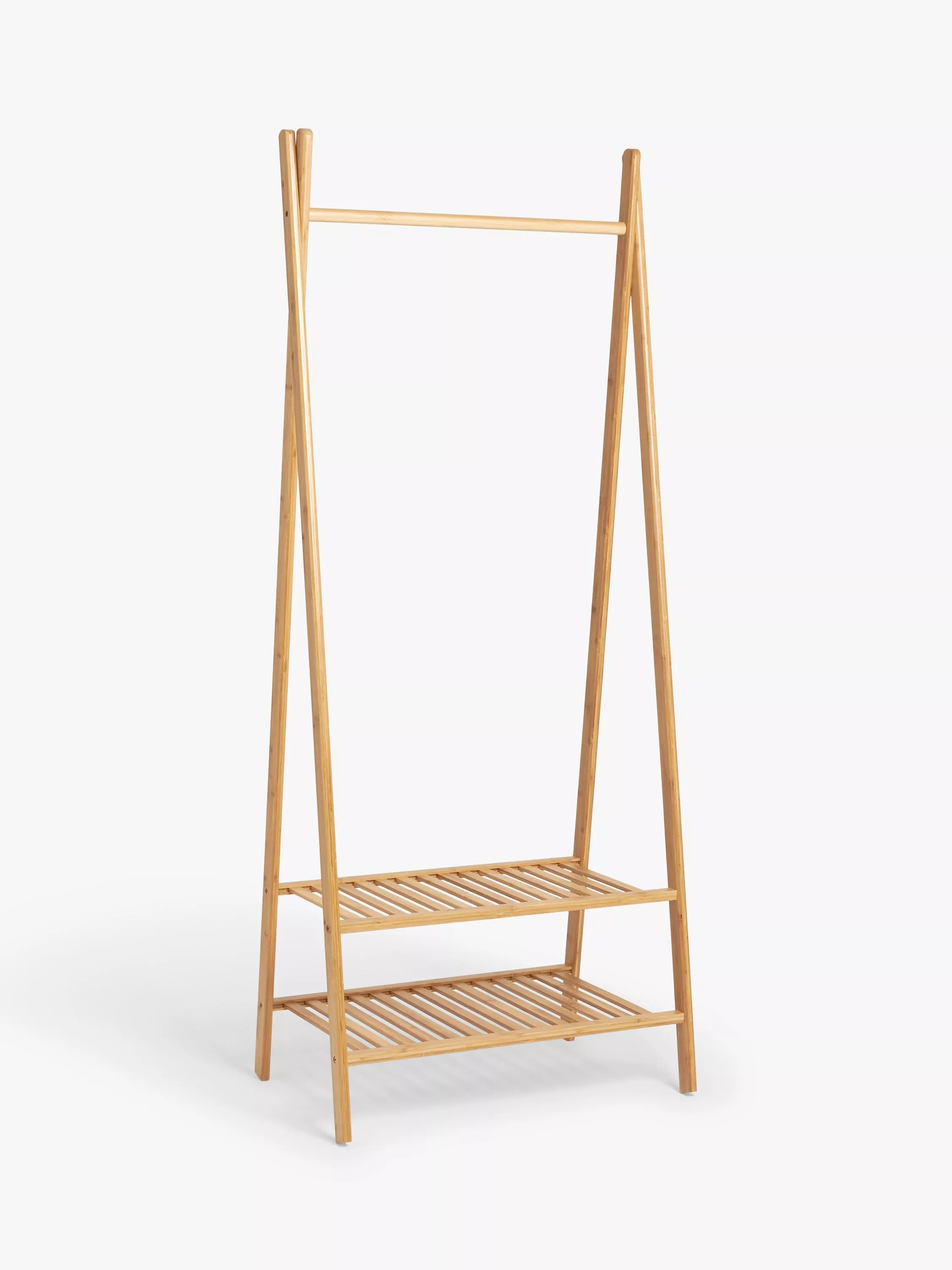 Attractive open storage with a hanging rail and two slatted shelves for shoes and accessories. Great for guest rooms, a minimalist modern bedroom or even in the hall. Made of FSC-certified bamboo.