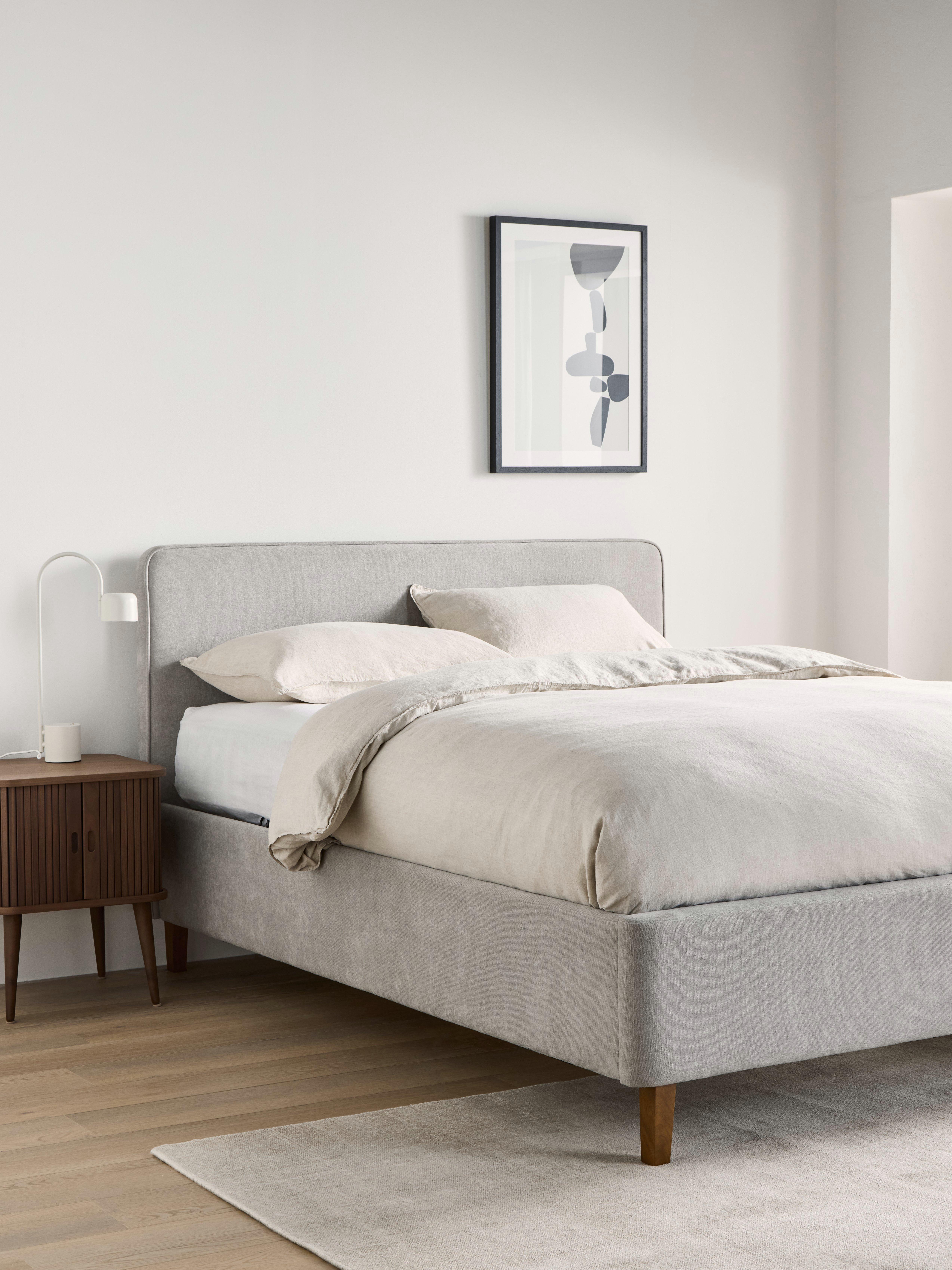 We've kept things simple with Clyde. A modern frame with clean lines, supportive sprung slats and upholstery in a soft, brushed weave fabric. We've also designed the ottoman lift from the side of the frame for easy access to your items - a design detail that's especially helpful when floor space is limited. It's a great-value option if you're thinking of a bedroom refresh and need the extra storage space.