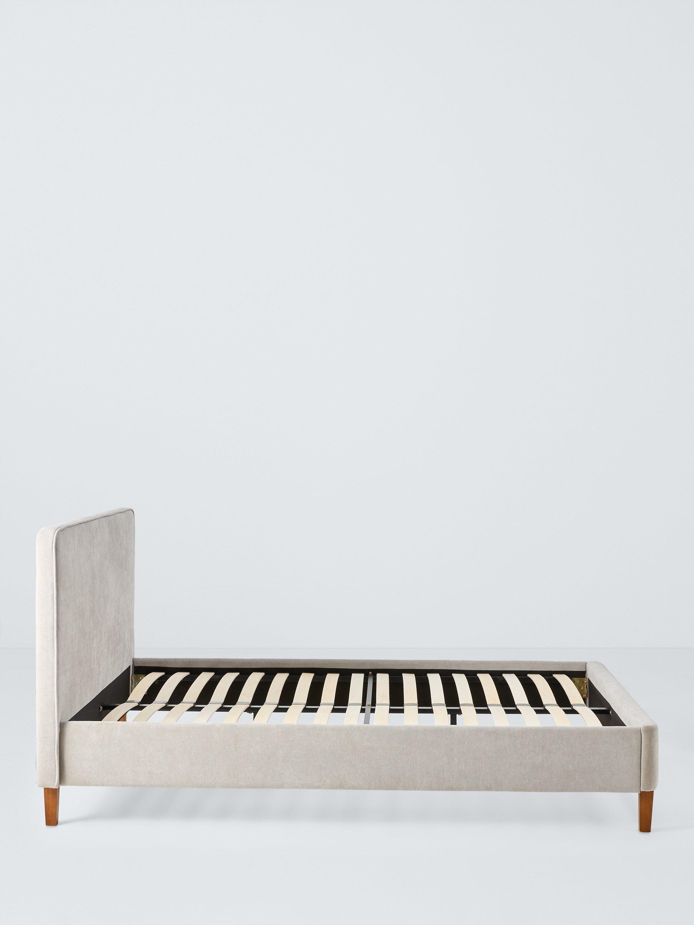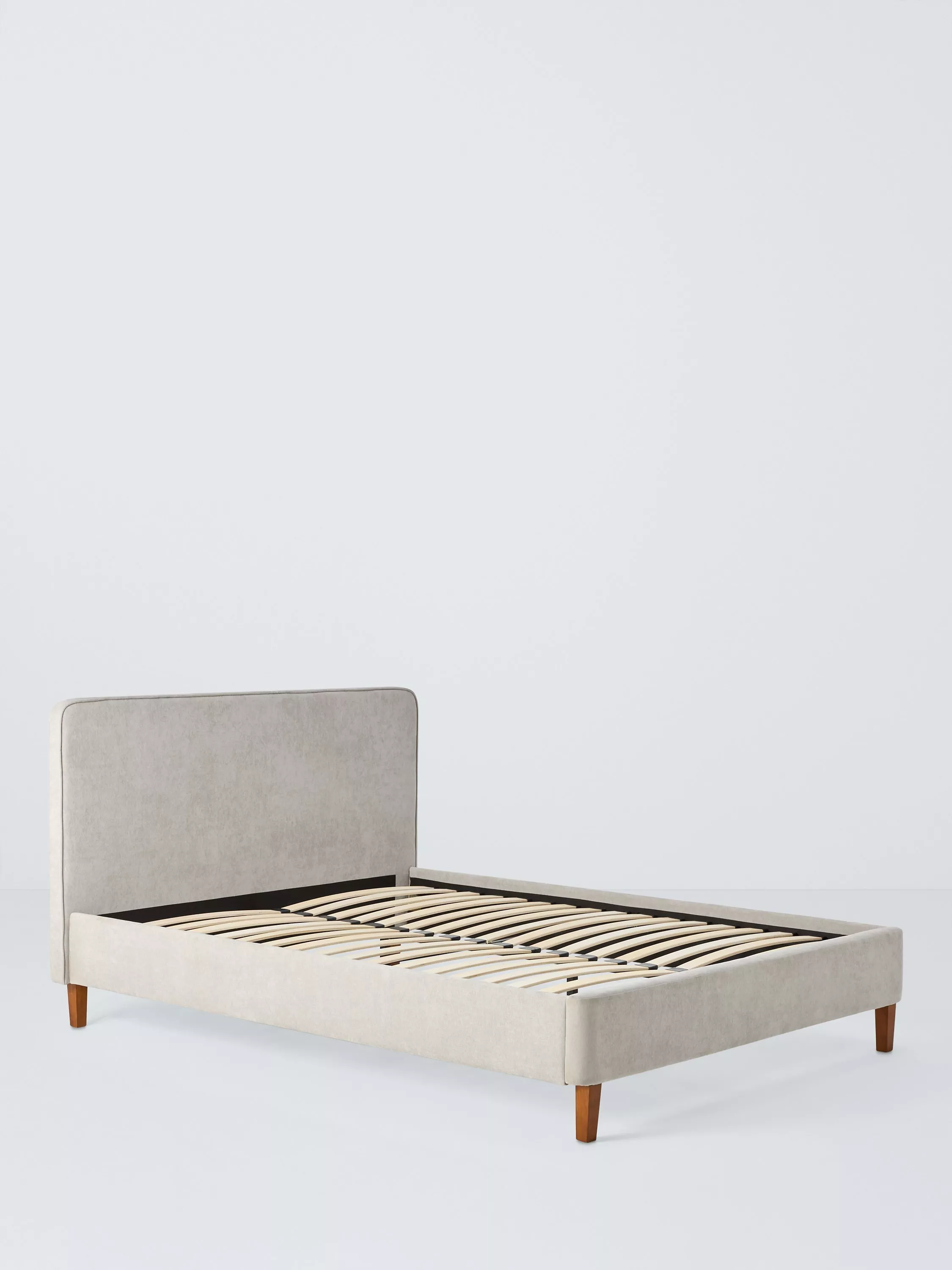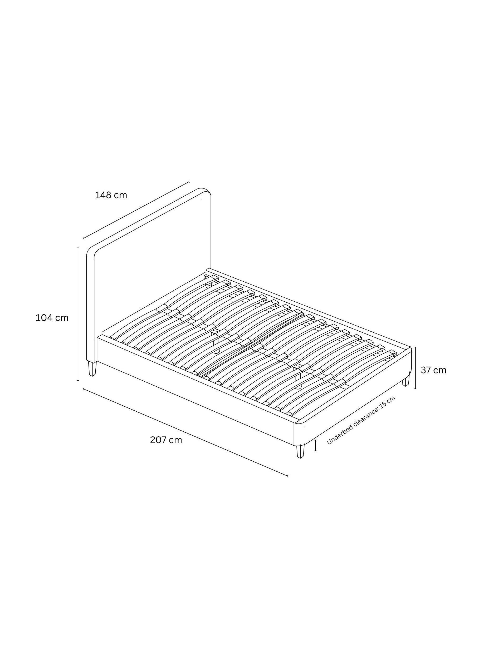 Beautifully simple, impressively well made and available at a price you'll love. Our modern Clyde bed frame has a gently curved shape, with a wide headboard and sturdy wooden legs. It's a design that will keep your bedroom feeling serene and calm. Sprung slats in the base ensure the perfect support for a great night's sleep.
