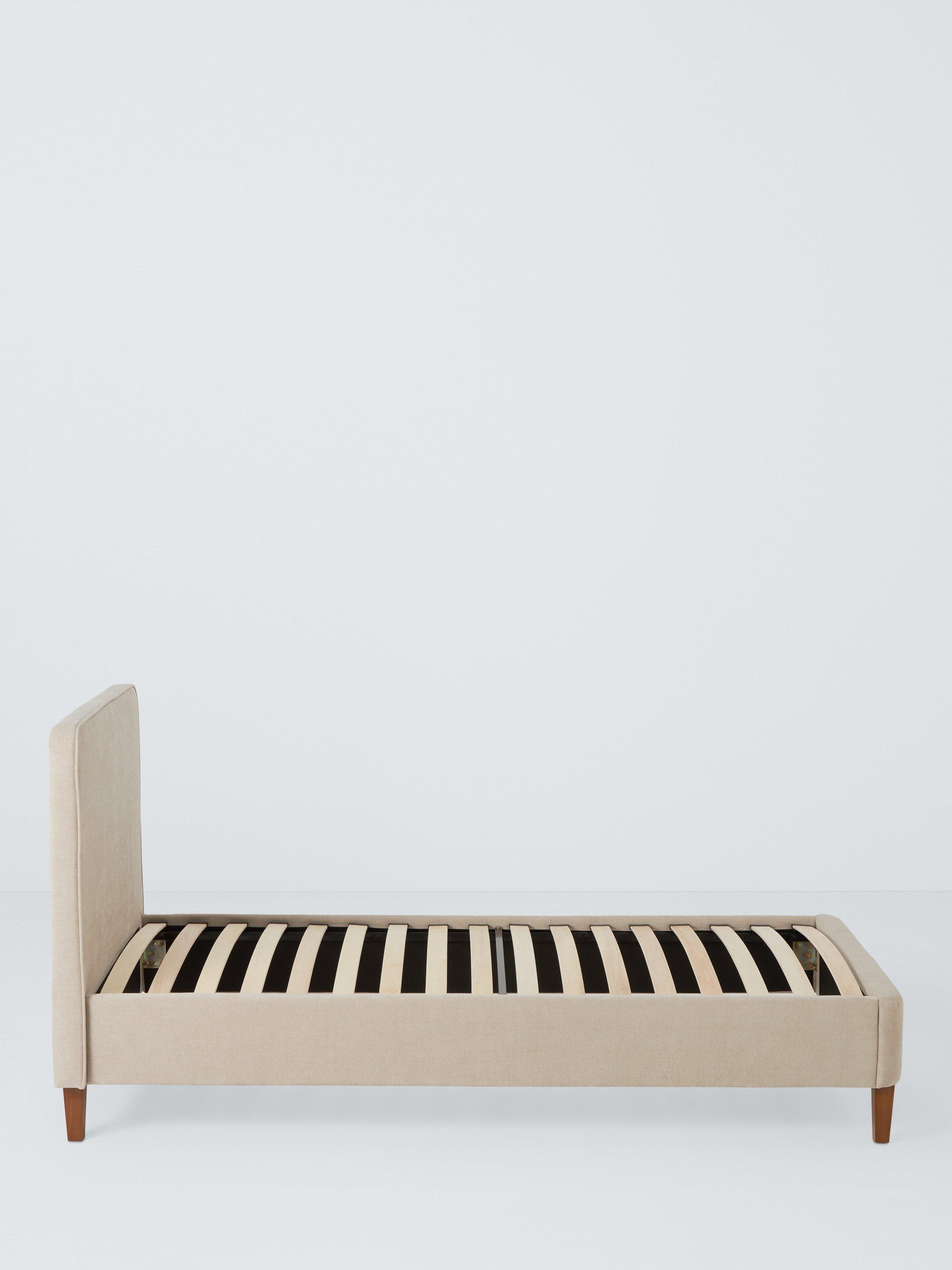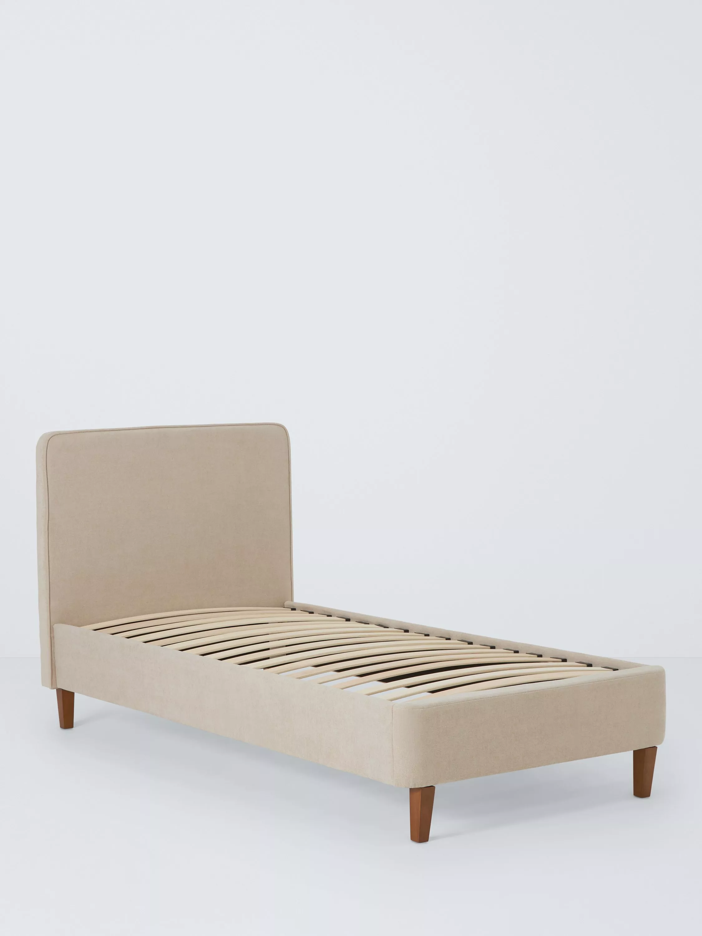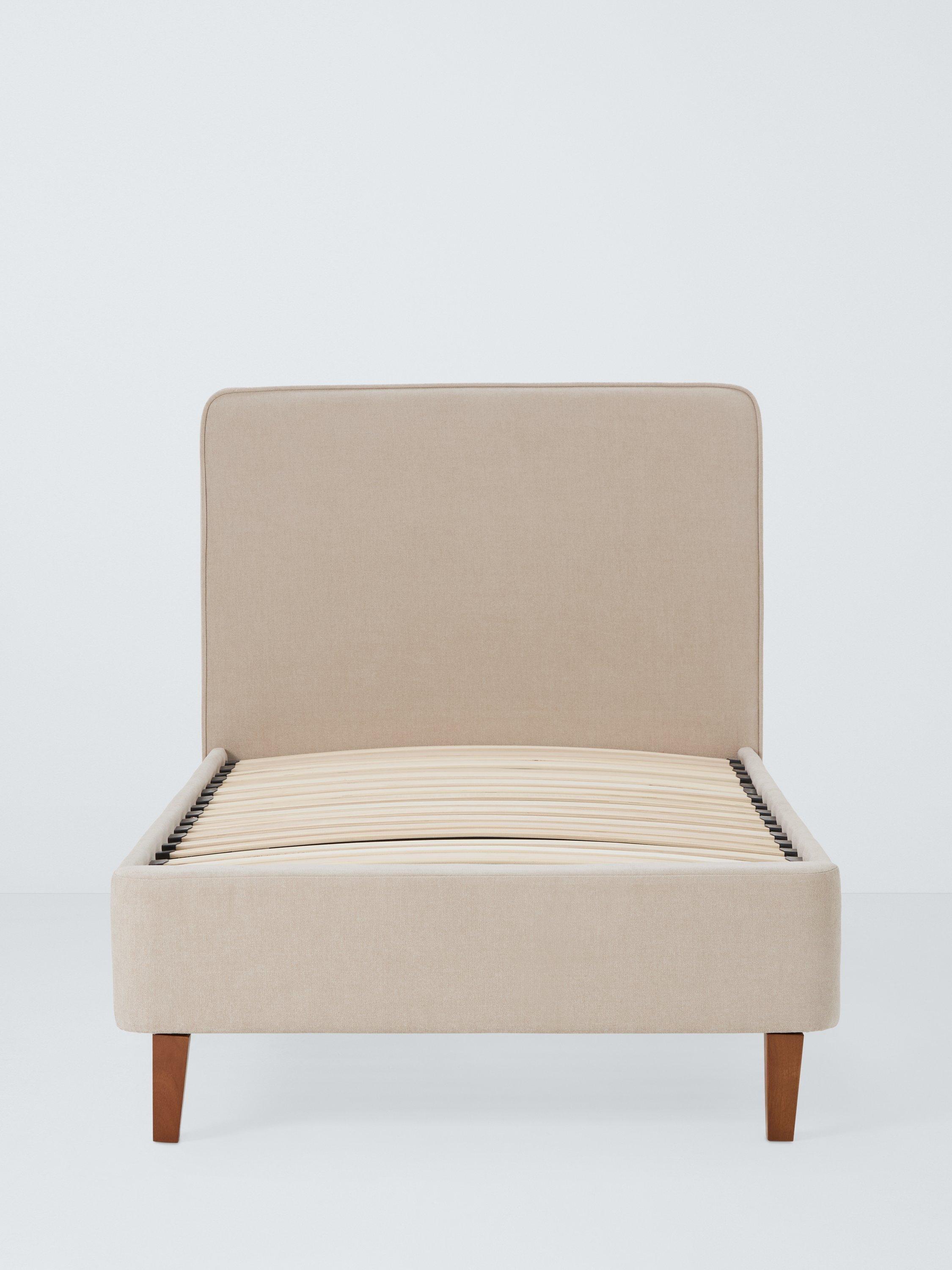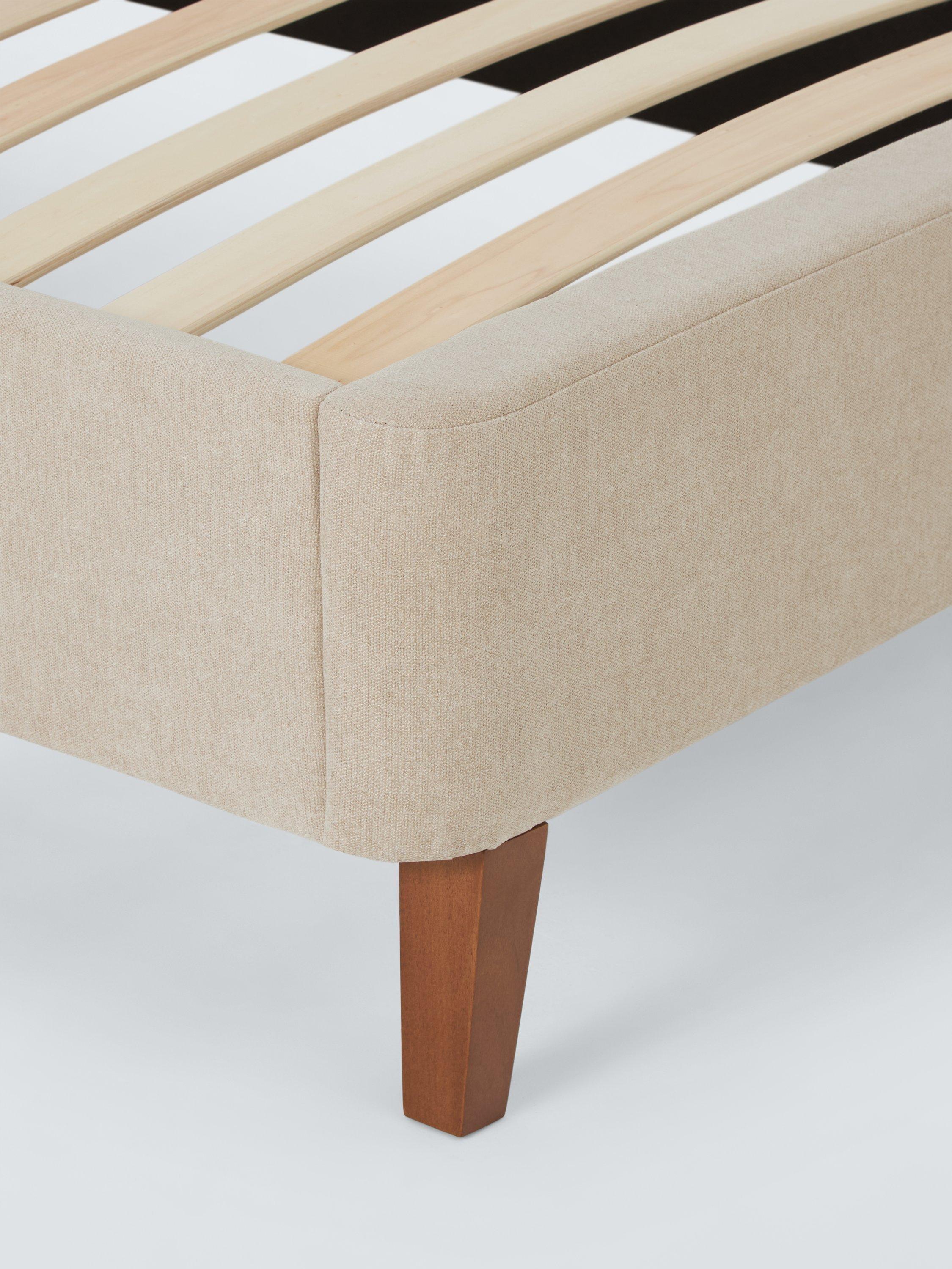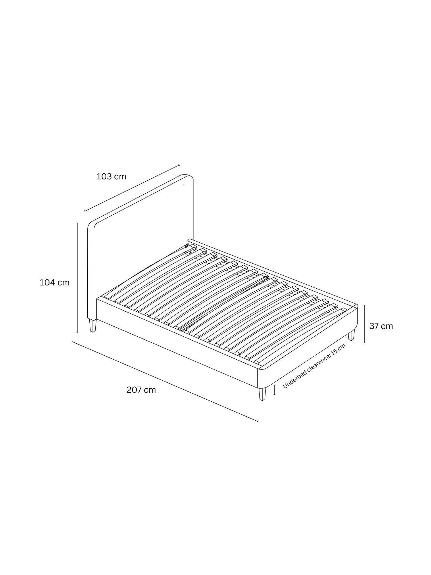 Beautifully simple, impressively well made and available at a price you'll love. Our modern Clyde bed frame has a gently curved shape, with a wide headboard and sturdy wooden legs. It's a design that will keep your bedroom feeling serene and calm. Sprung slats in the base ensure the perfect support for a great night's sleep.