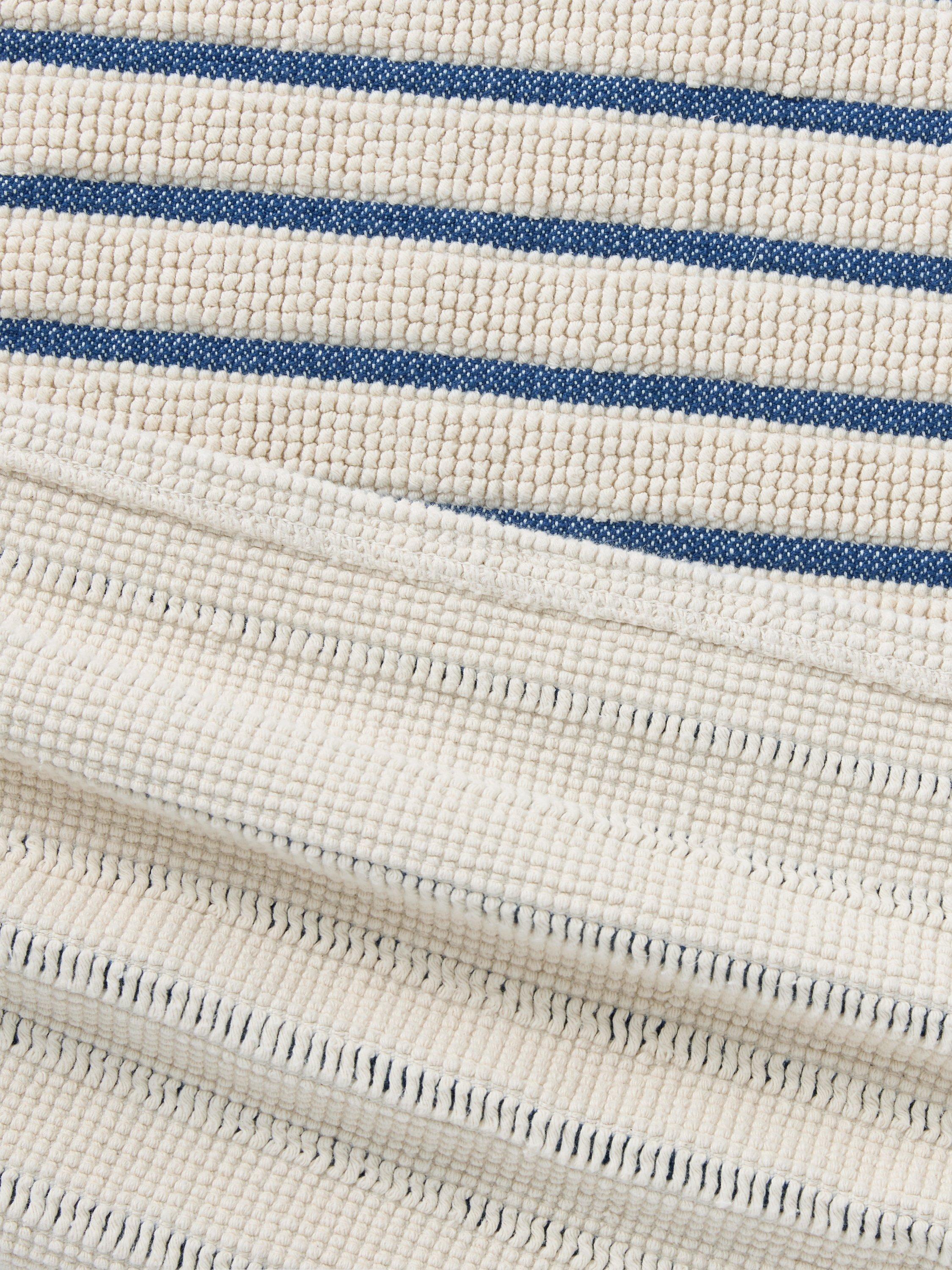 This textured stripe bath mat is woven from a cotton blend for a relaxed look and an absorbent finish.