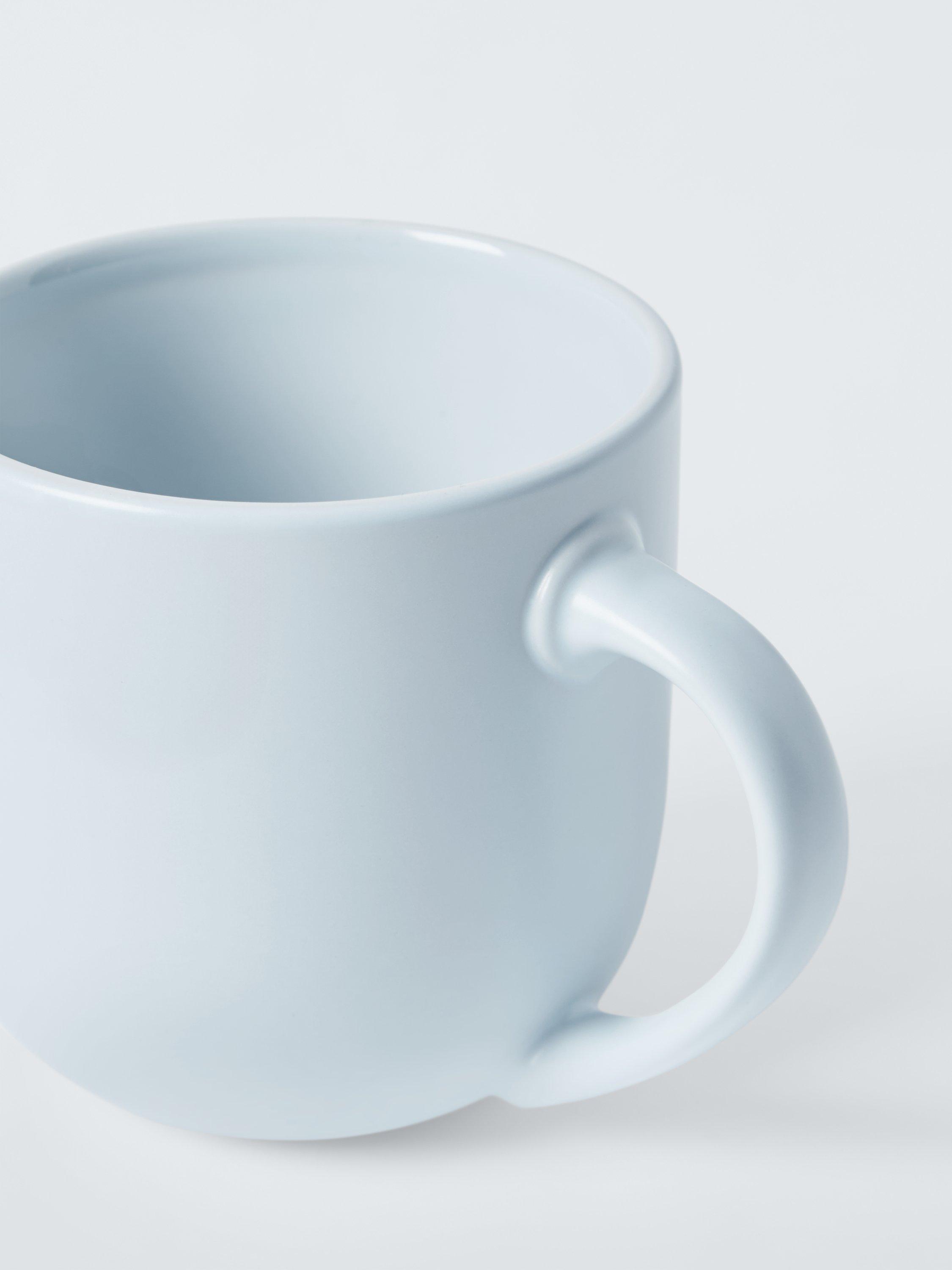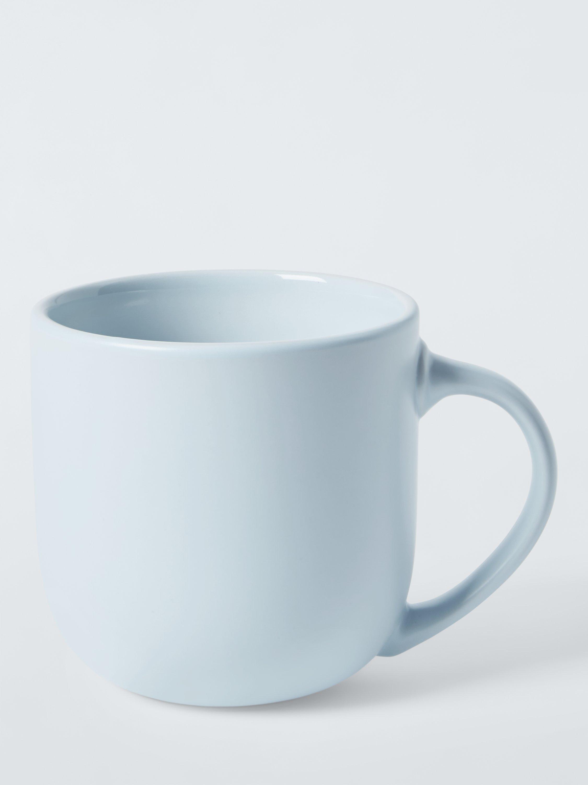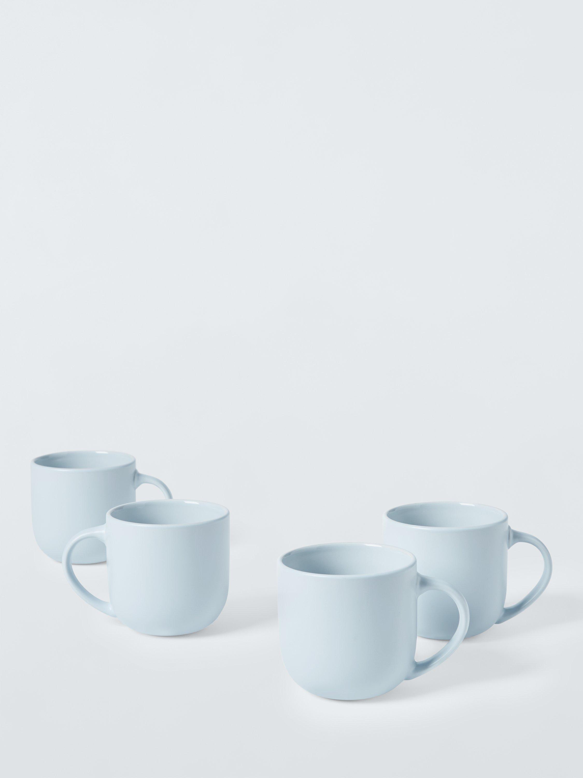 Four mugs with a matt glaze on the exterior and a glossy glaze inside. Made of stoneware, they're dishwasher, freezer and microwave-safe for everyday use.