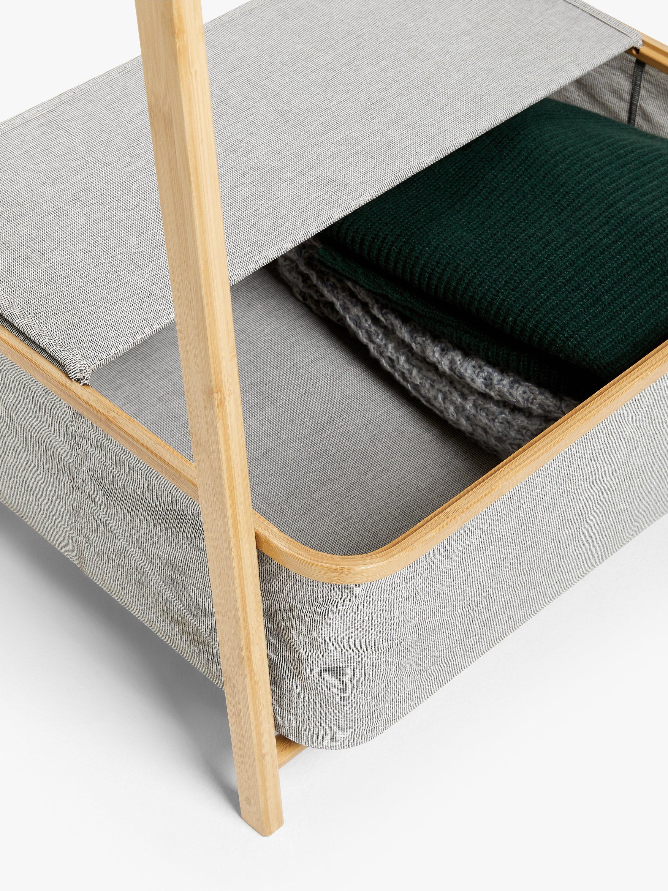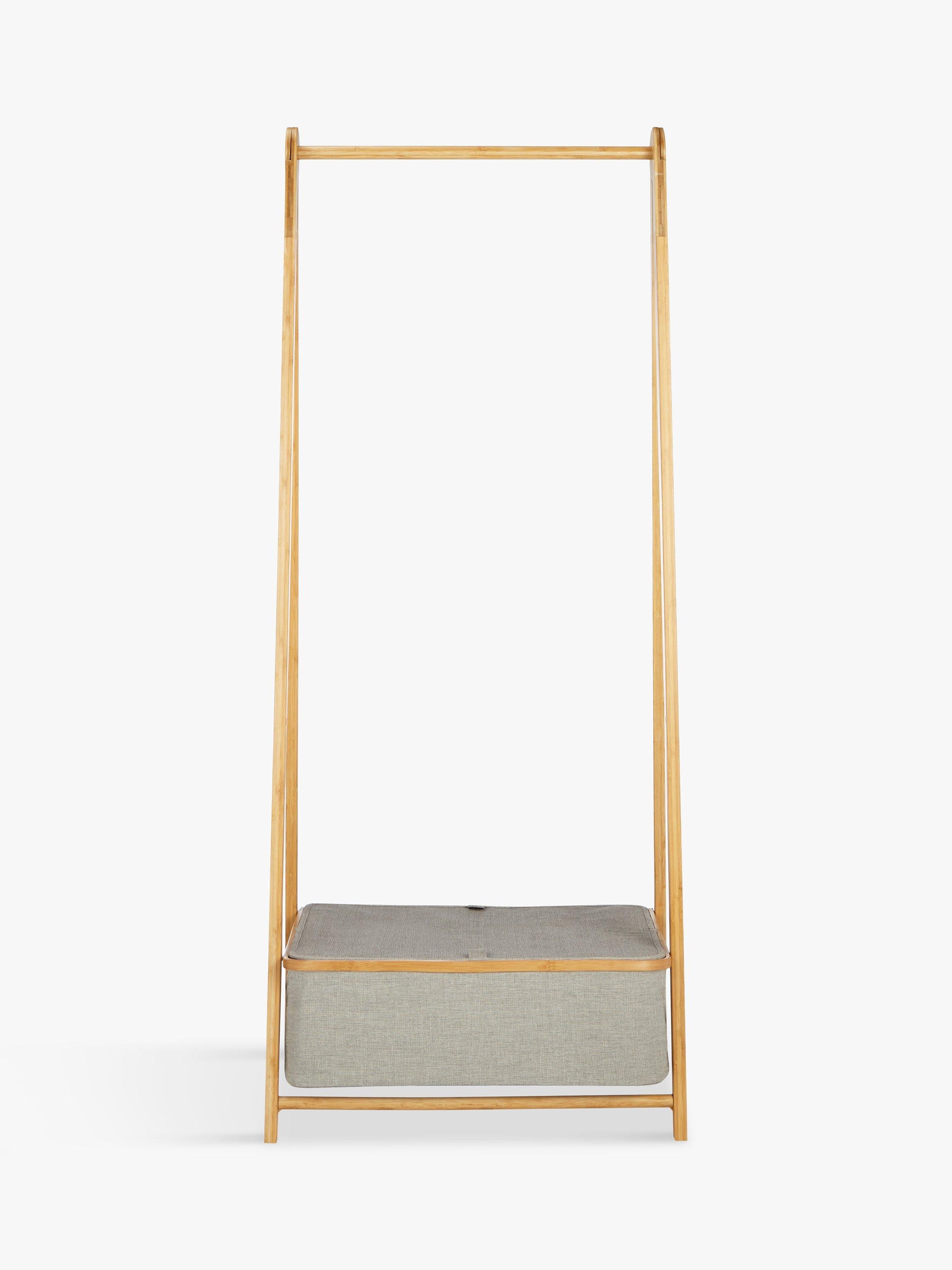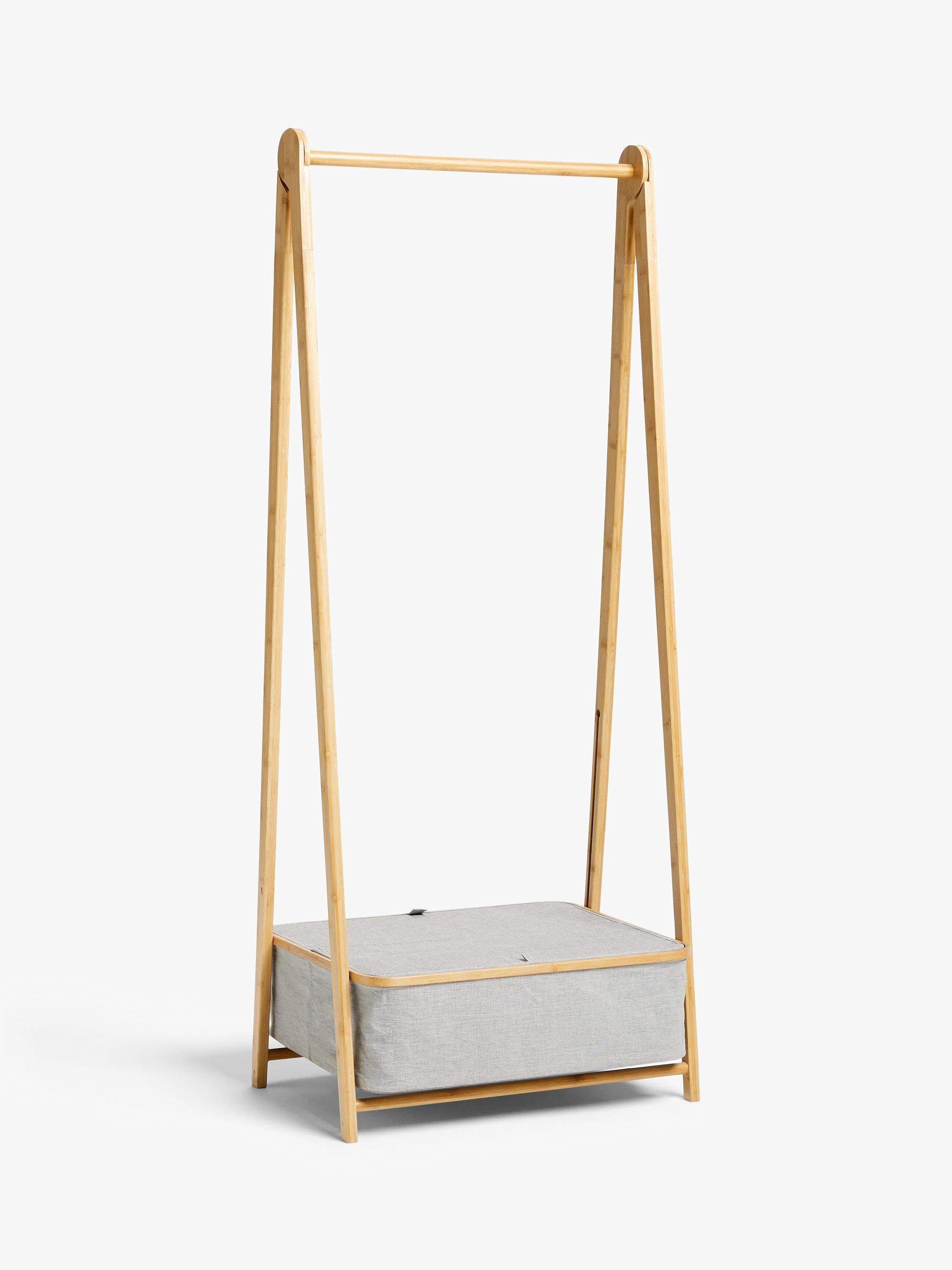 This lightweight bamboo clothes rail folds flat when not in use, so it's great for guest rooms. The polyester fabric box at the base lets you store shoes or accessories neatly inside.