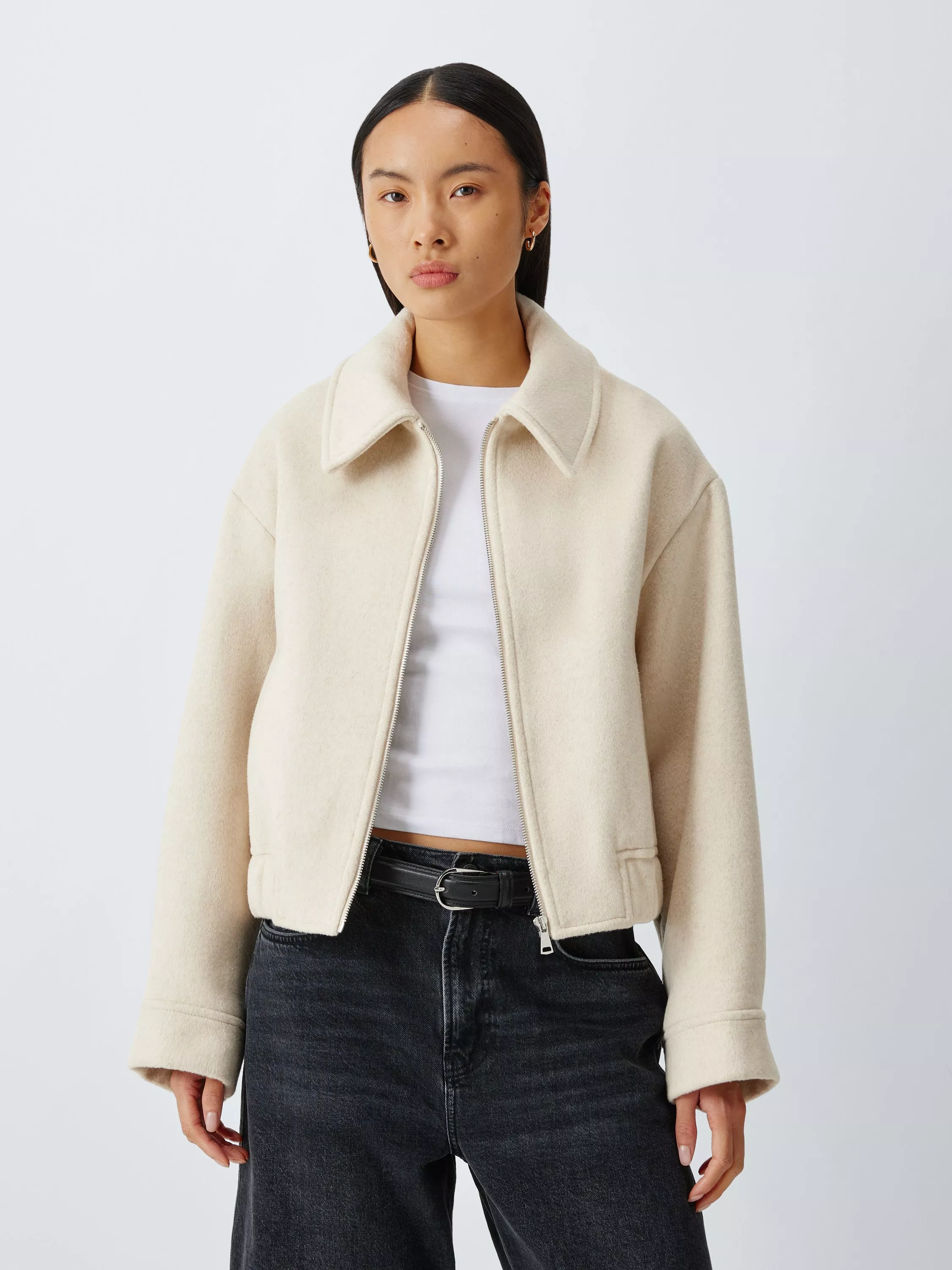 John LewisCollared Wool Blend Bomber Jacket, Oatmeal
