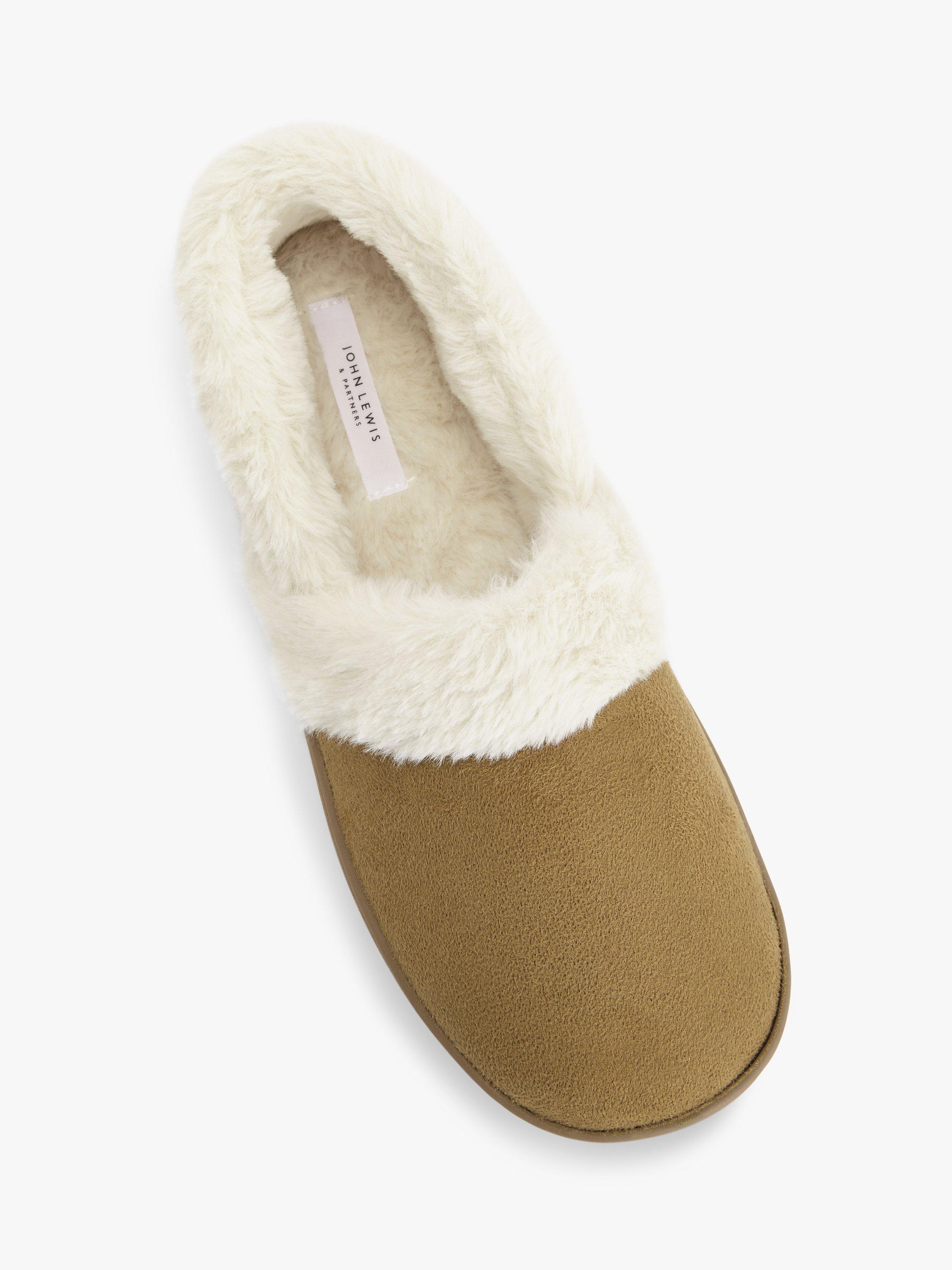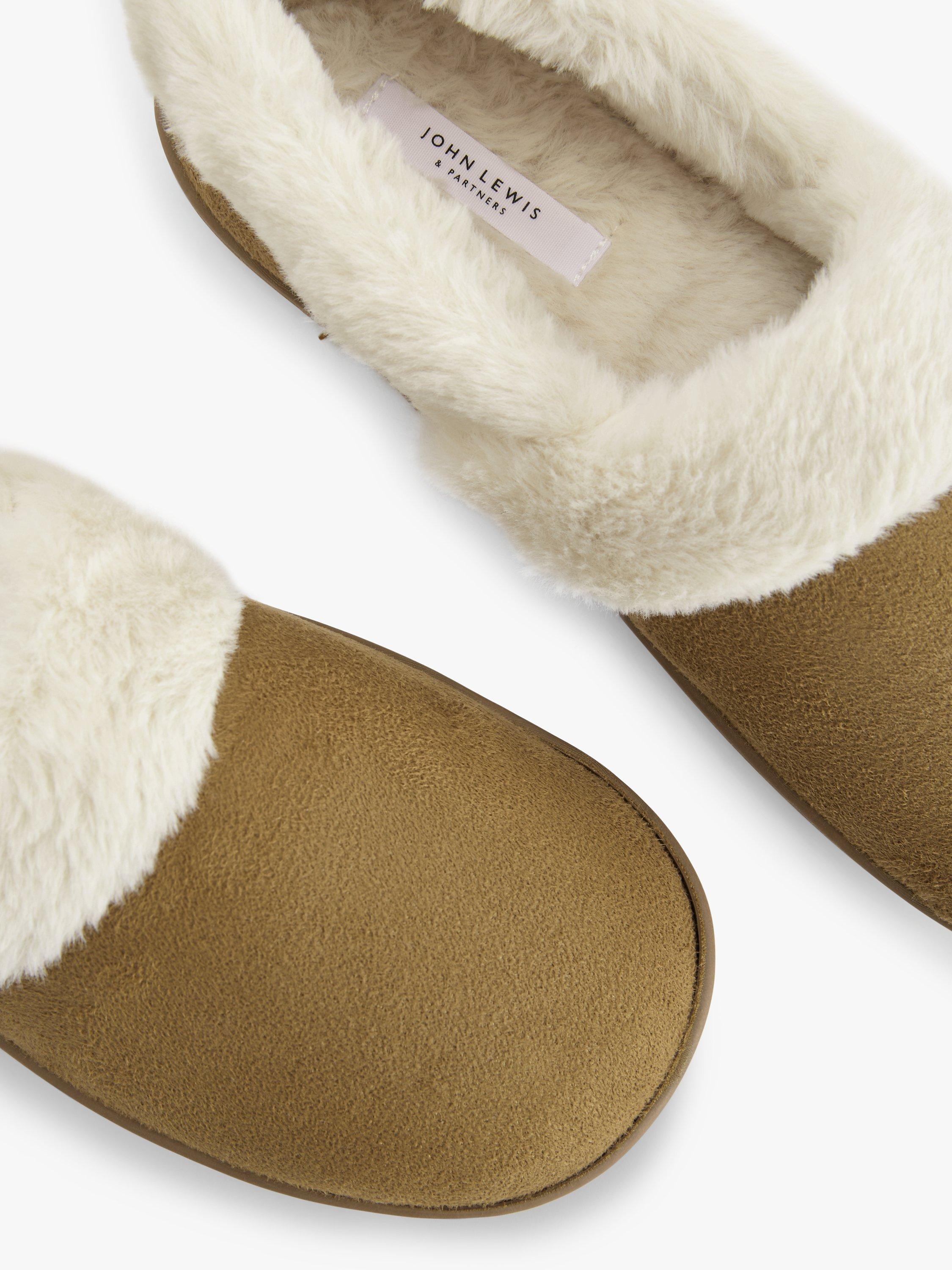 Suitable for colder weather, these Comfort Cuff slippers from John Lewis will keep your feet warm and fashionable. Featuring a warm faux fur lining with a low-cut topline, this slip-on pair is set to a flat sole with seam detailing to complete the look.