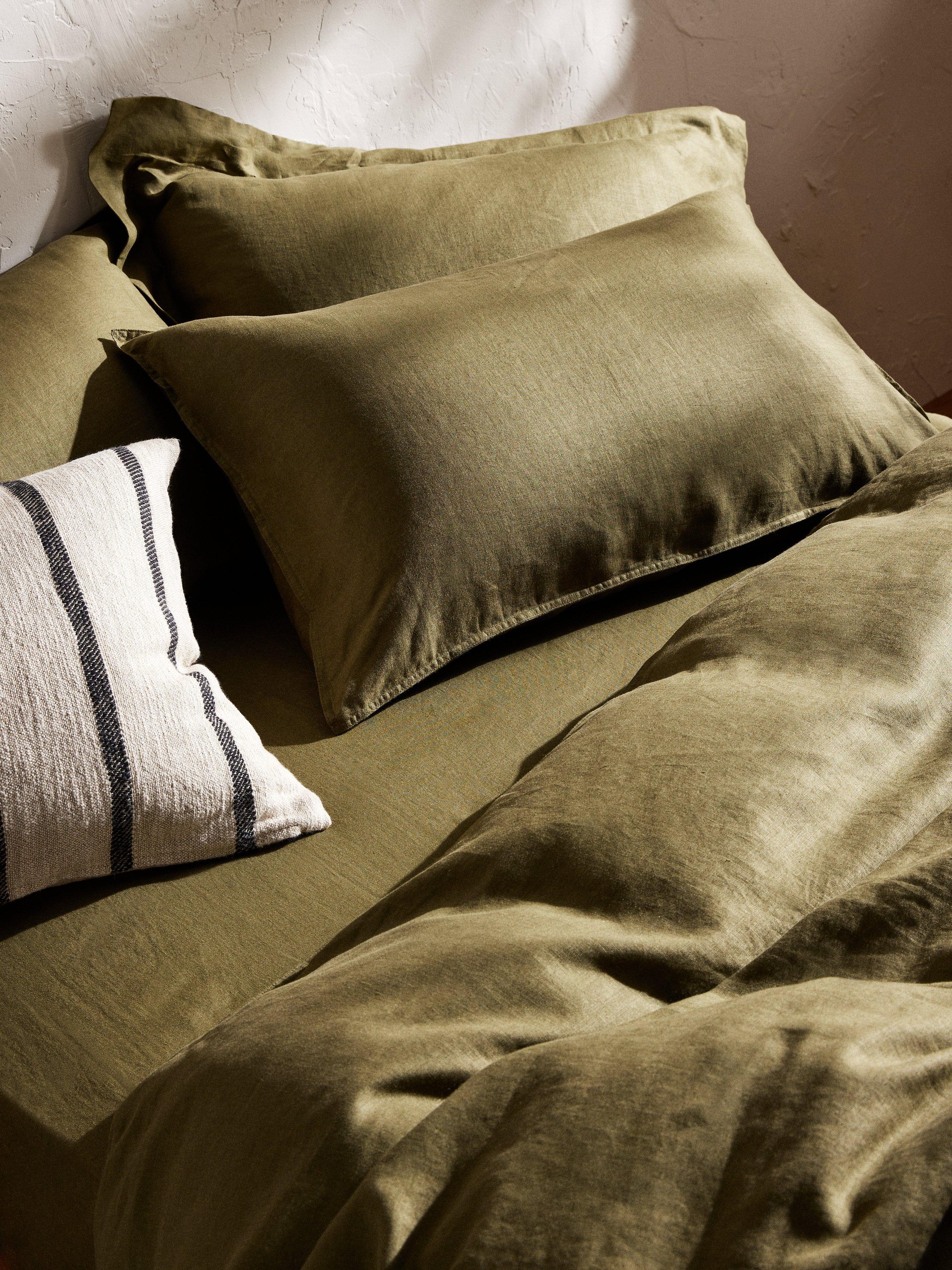 Linen’s long fibres are strong and durable, creating naturally breathable fabric to help keep you cool and comfy while you sleep. The texture and finish also age well, becoming softer over time.