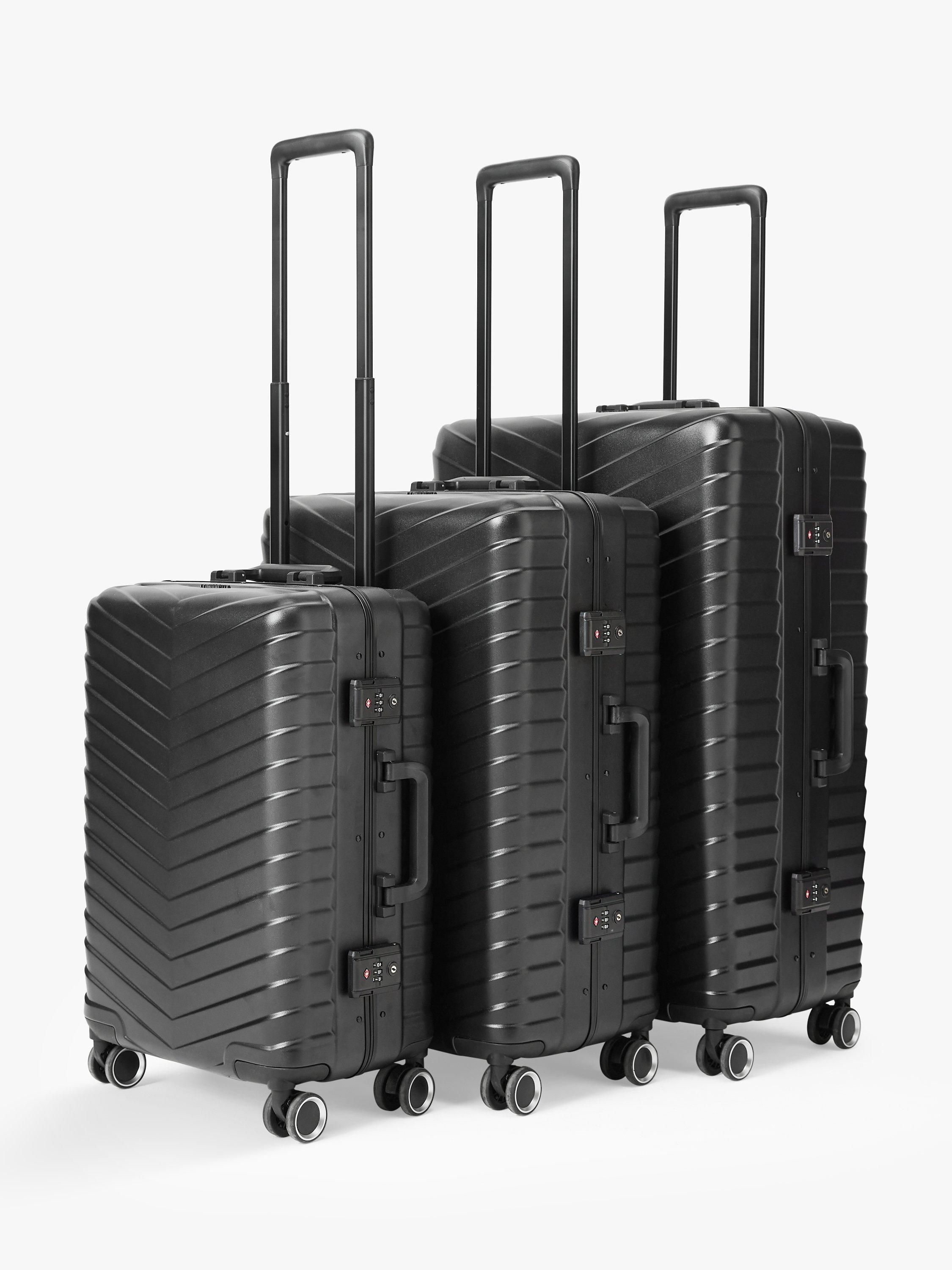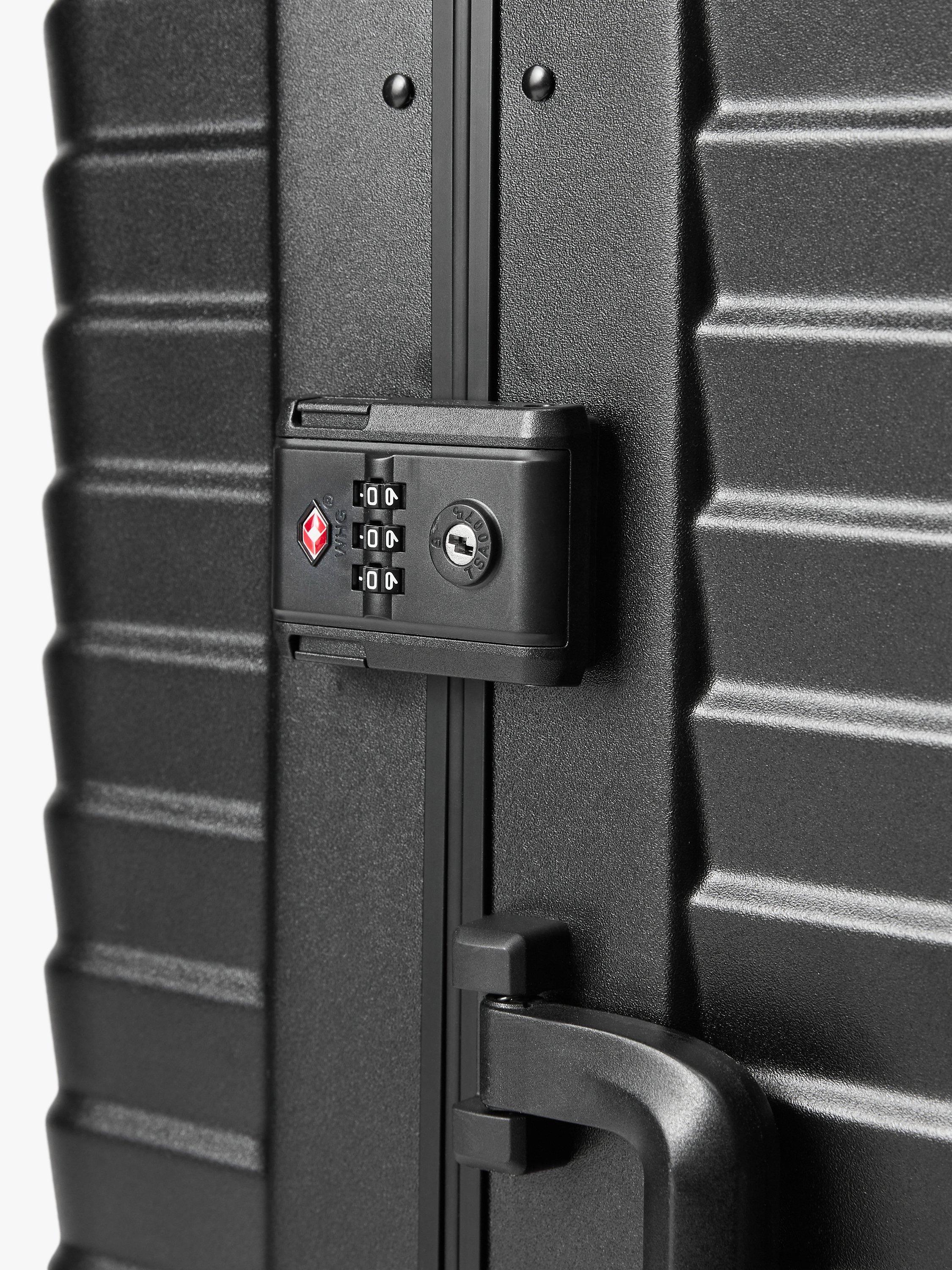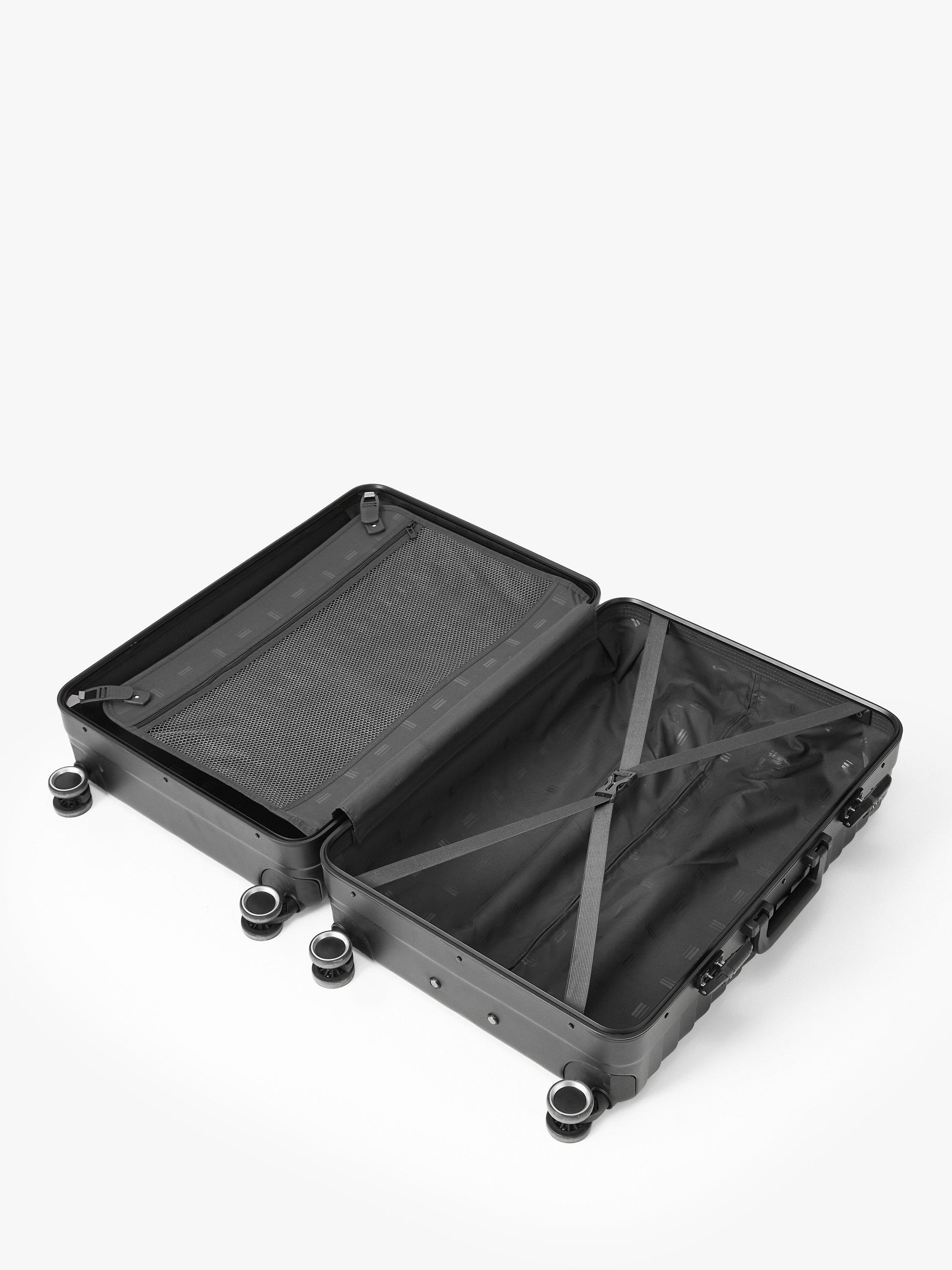 Our 4-wheel Como suitcase has a lightweight yet robust aluminium frame to protect your valuables. A zipless design, it comes with a double TSA lock to secure your travel essentials, interior pockets with divider pads and a soft-touch, high-quality interior lining.