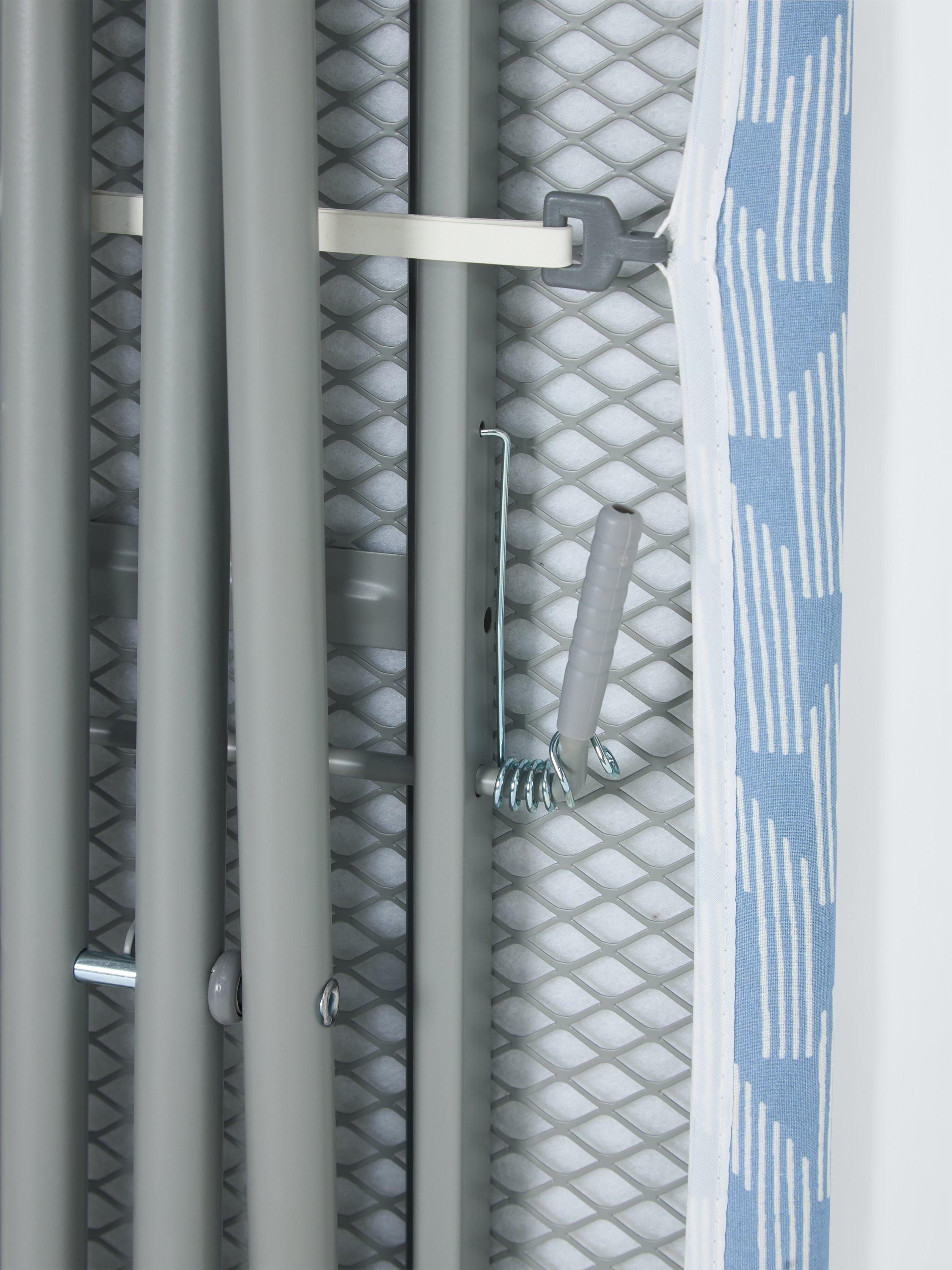 Suitable for both steamers and normal irons, this ironing board is compact and lightweight. Adjustable to 7 height positions to accommodate your needs, it has a 100% cotton cover.