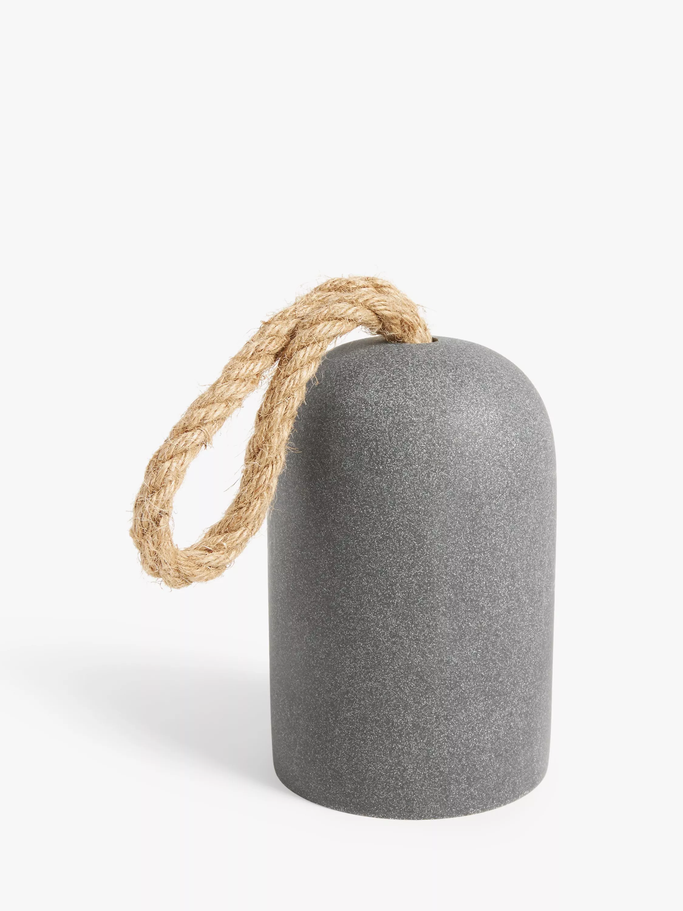 A chunky concrete-look doorstop with a twisted rope handle for a simple, industrial aesthetic.