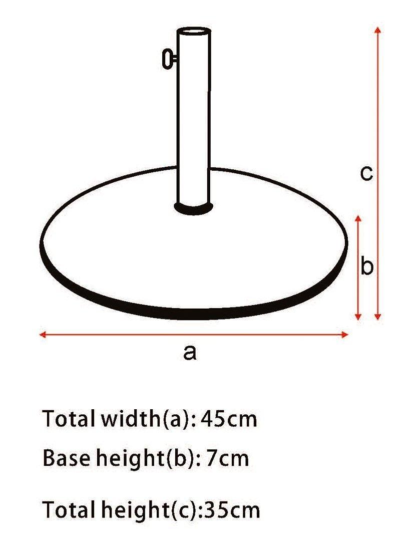 Concrete parasol base suitable for freestanding parasols. The steel pole has a size adapter to accommodate parasol pole diameters 30mm, 35mm and 38mm. Non-slip feet on the base protect patio surfaces.