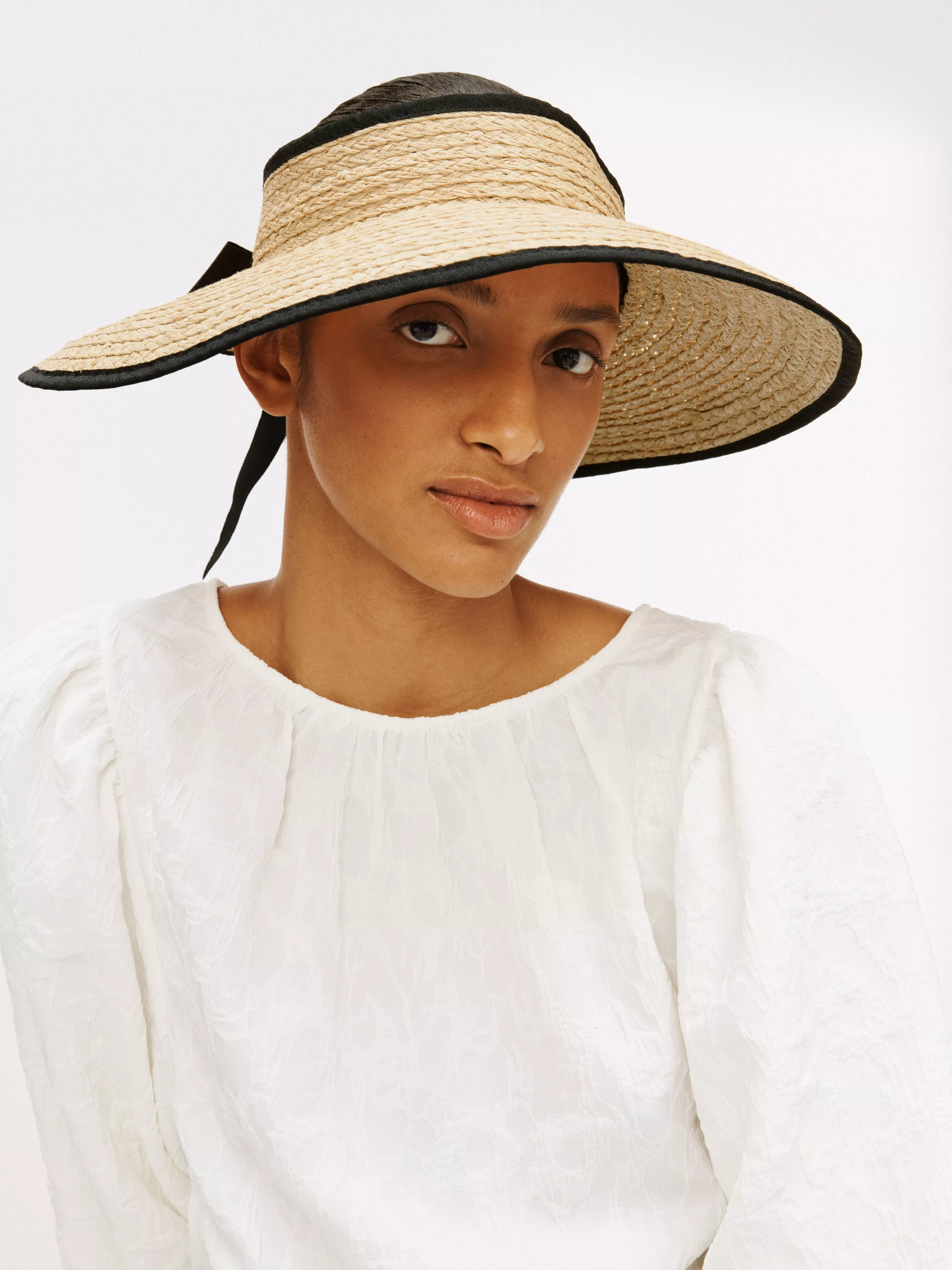 John LewisContrast Trim Raffia Visor, Natural