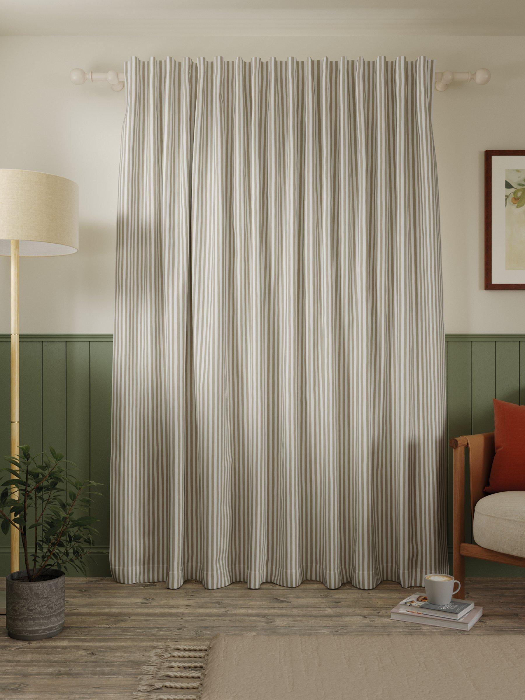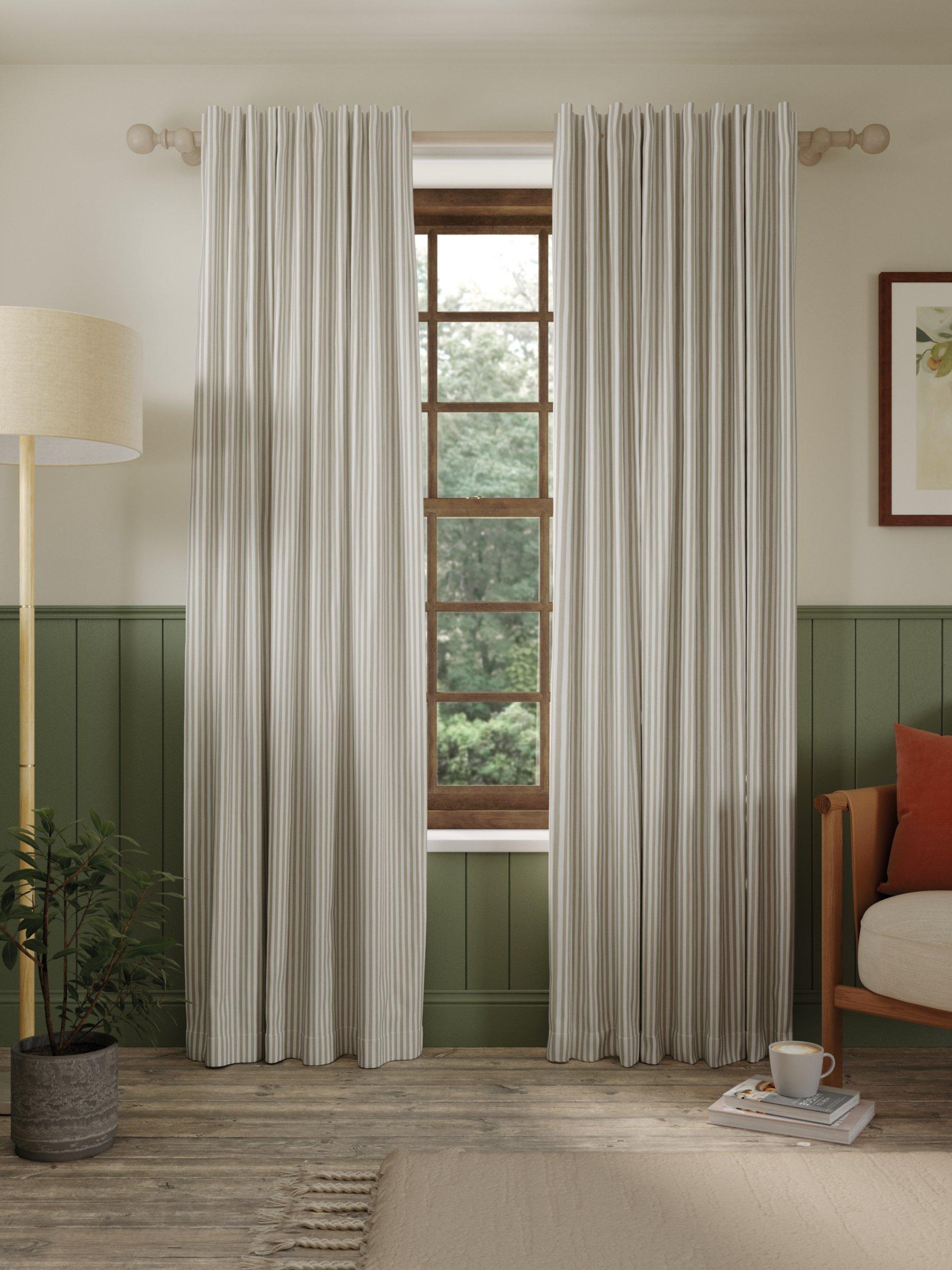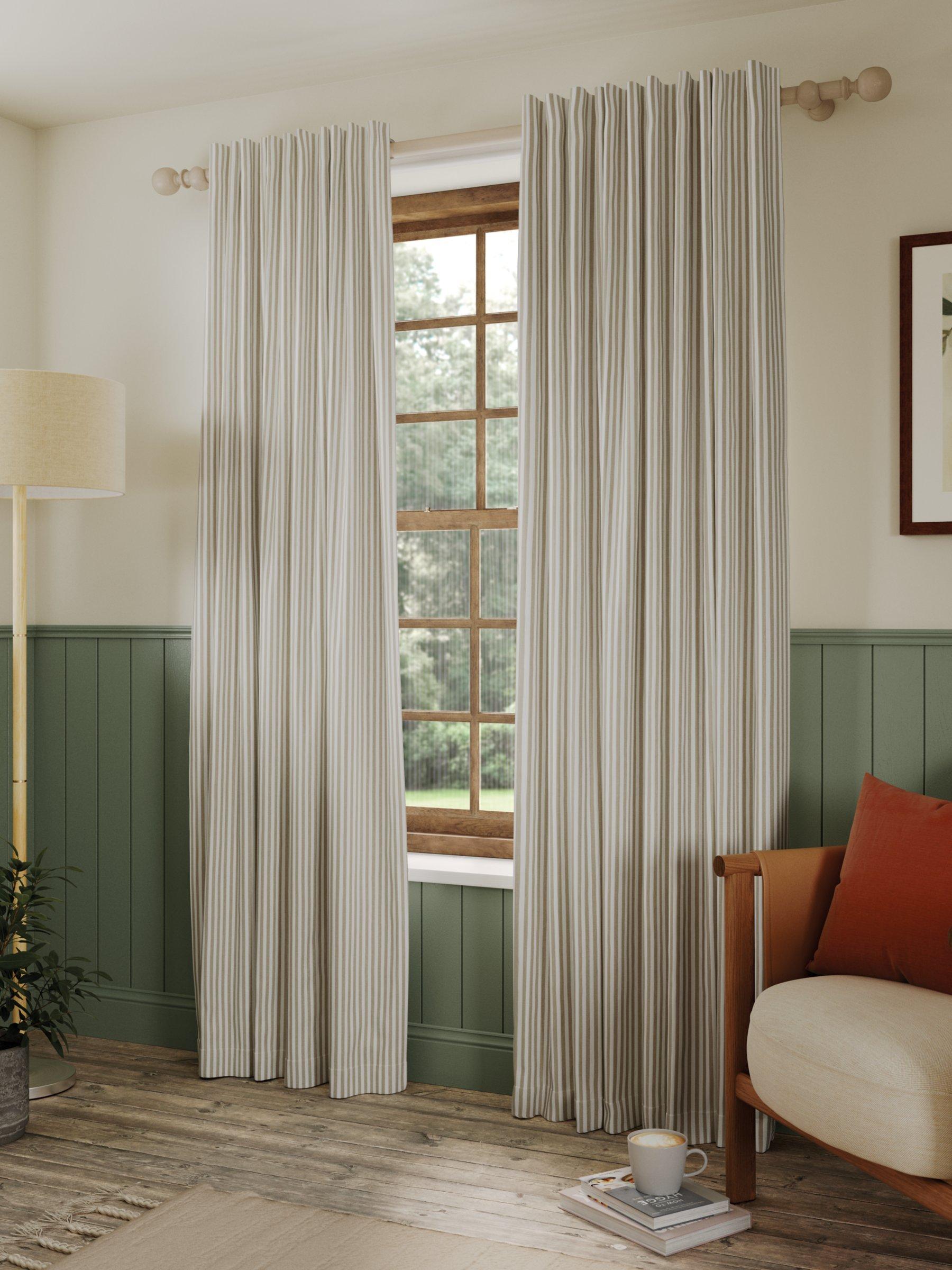 Ready made cotton curtains in a classic stripe. Designed with a hidden tab top and a full lining.