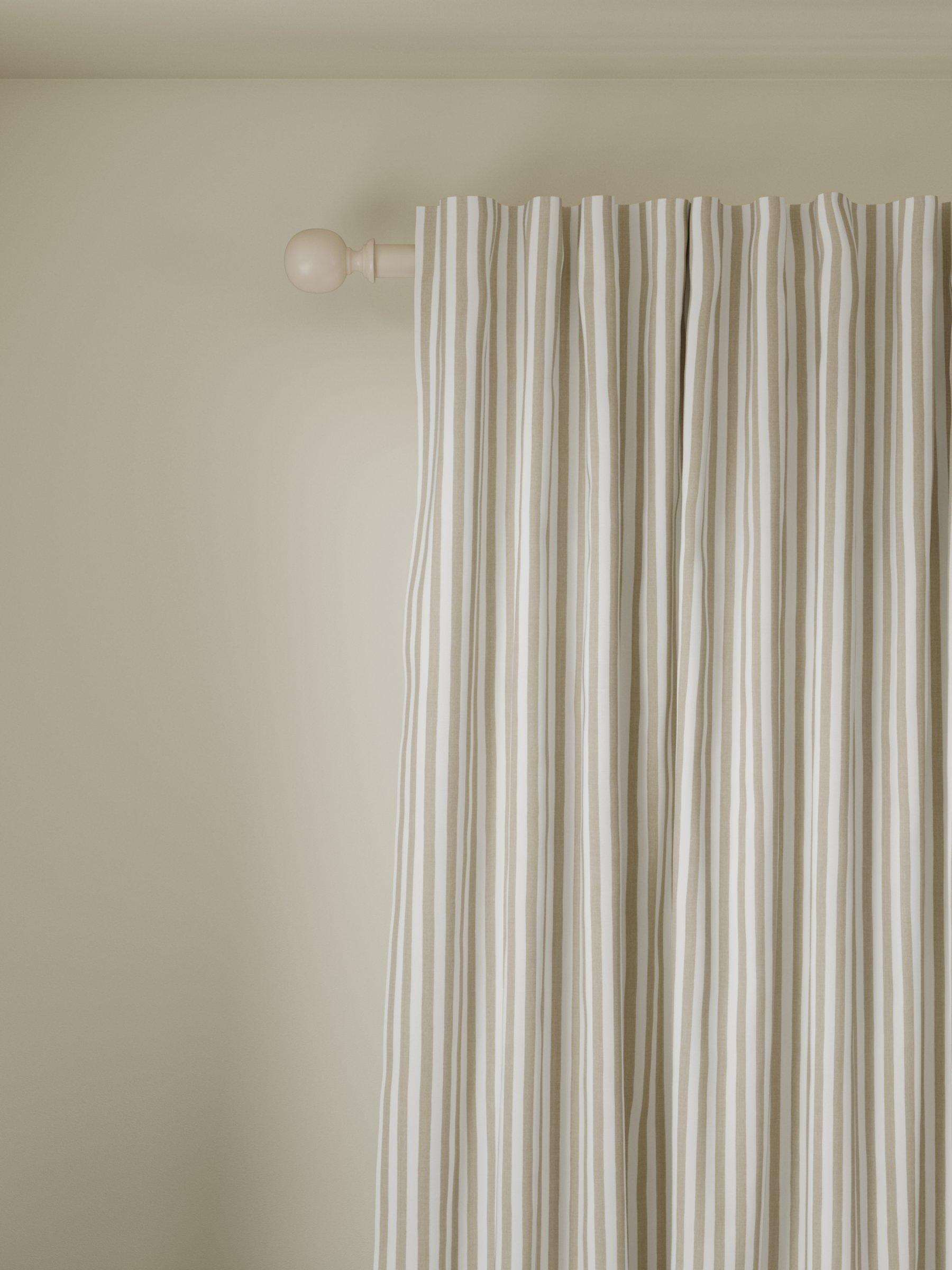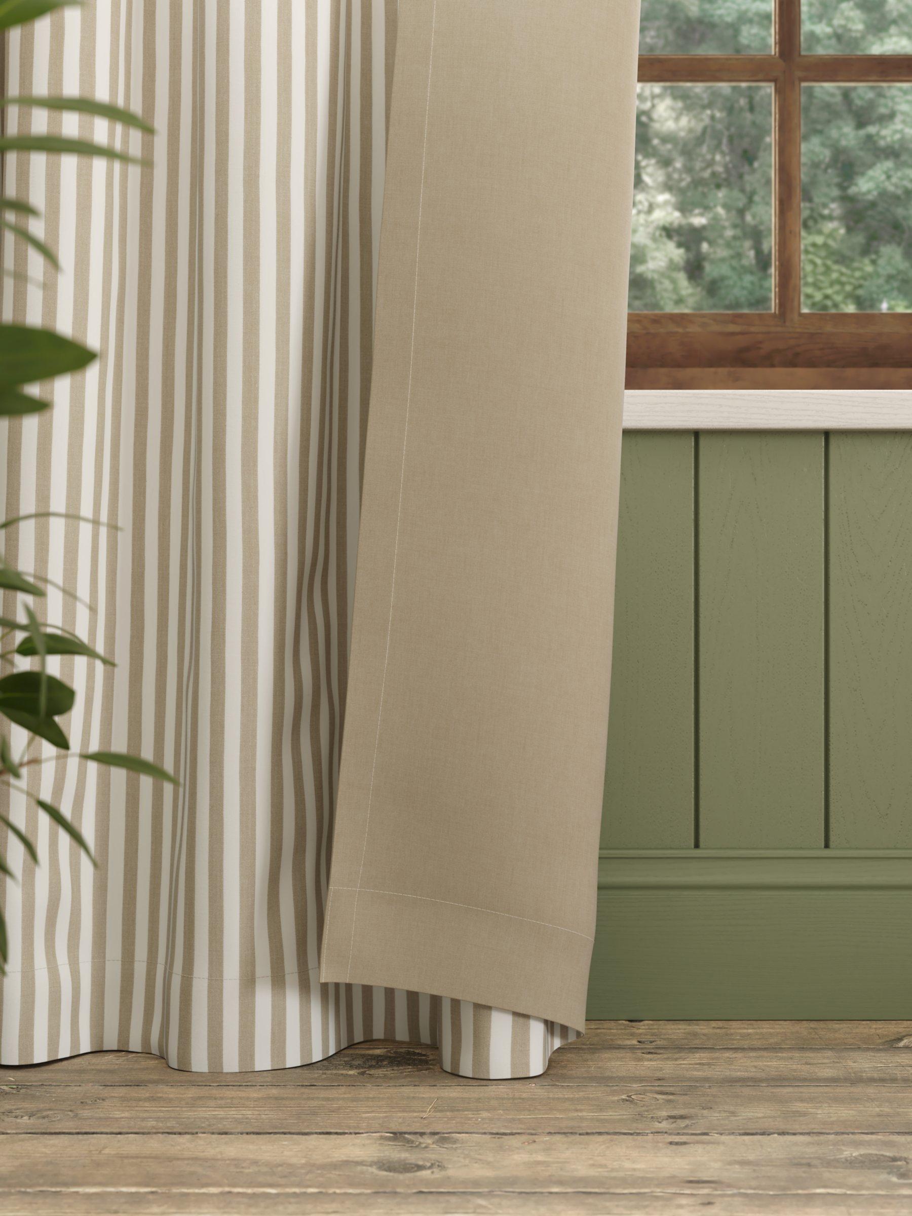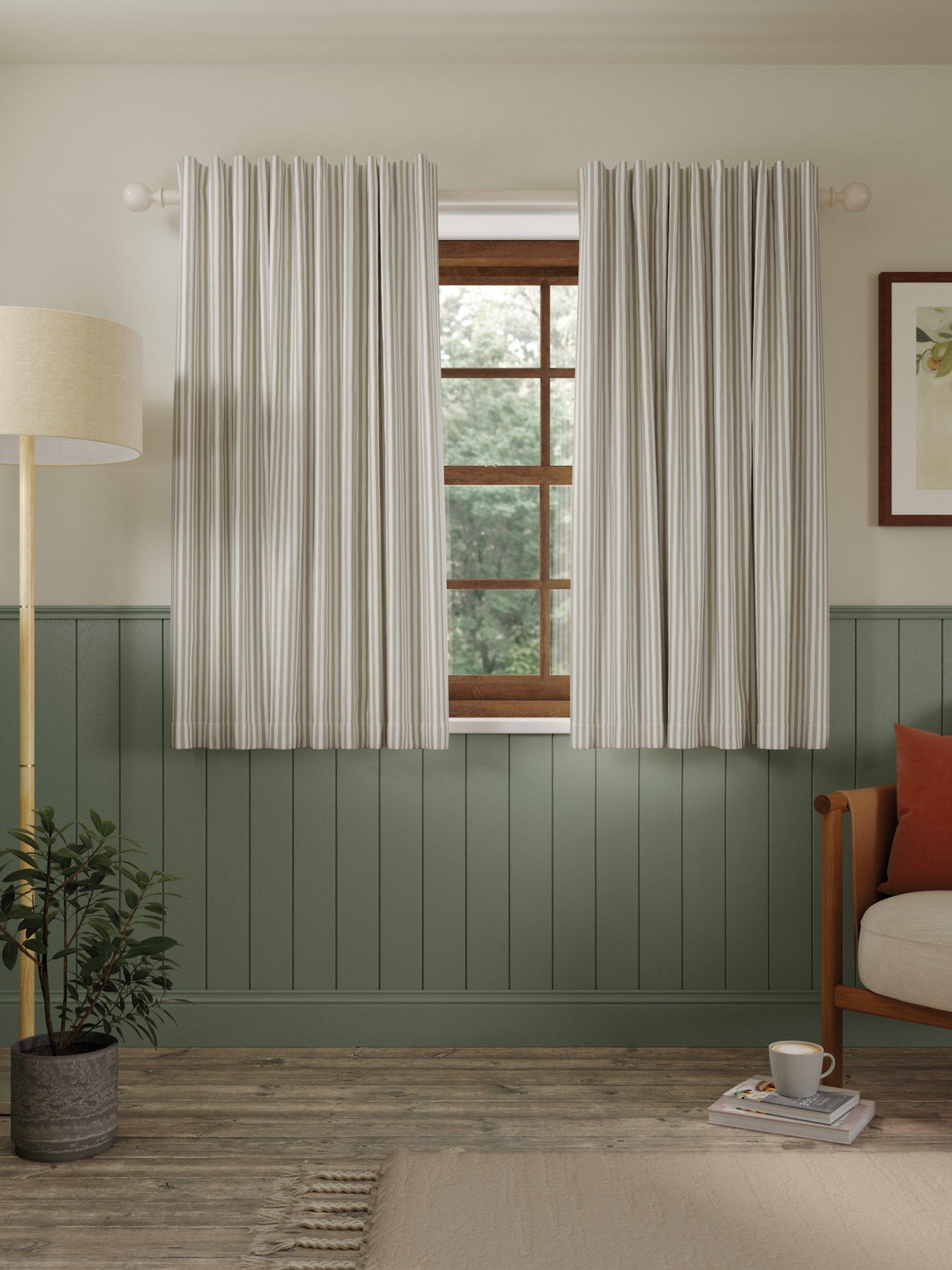Ready made cotton curtains in a classic stripe. Designed with a hidden tab top and a full lining.
