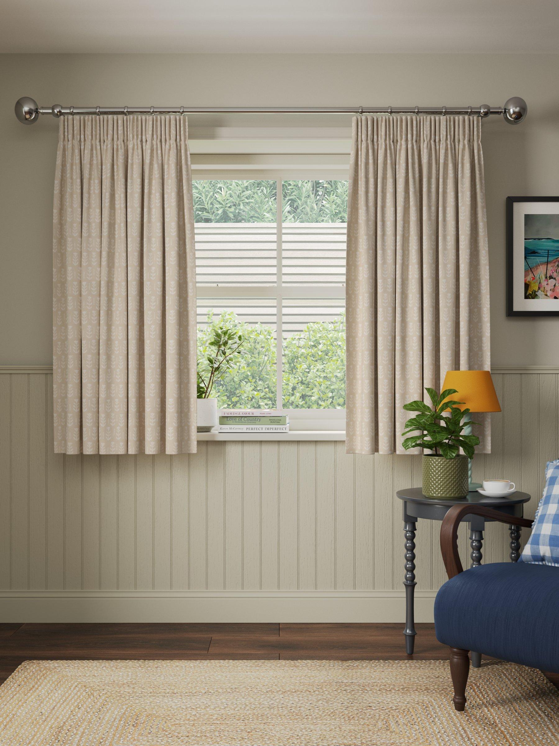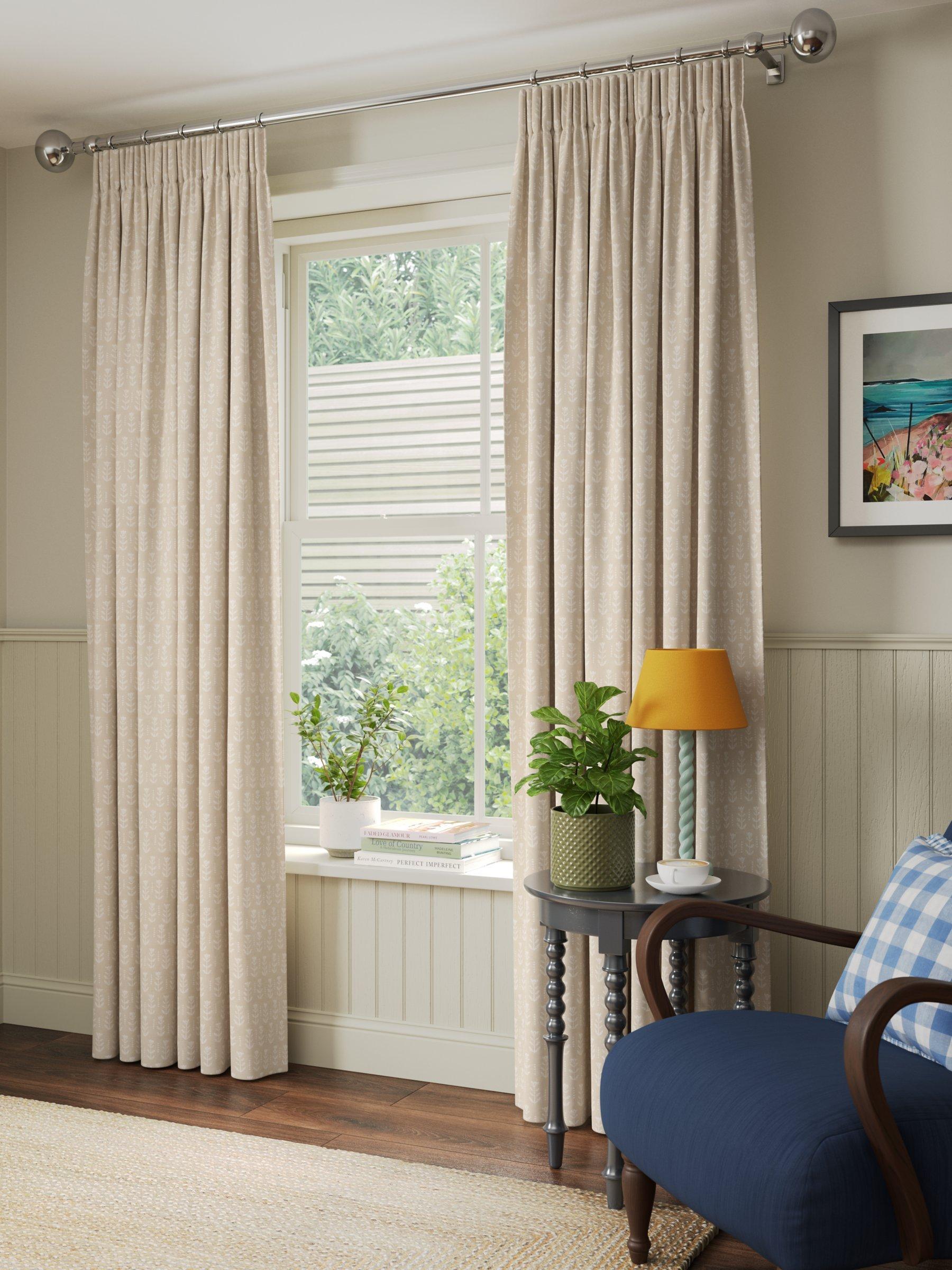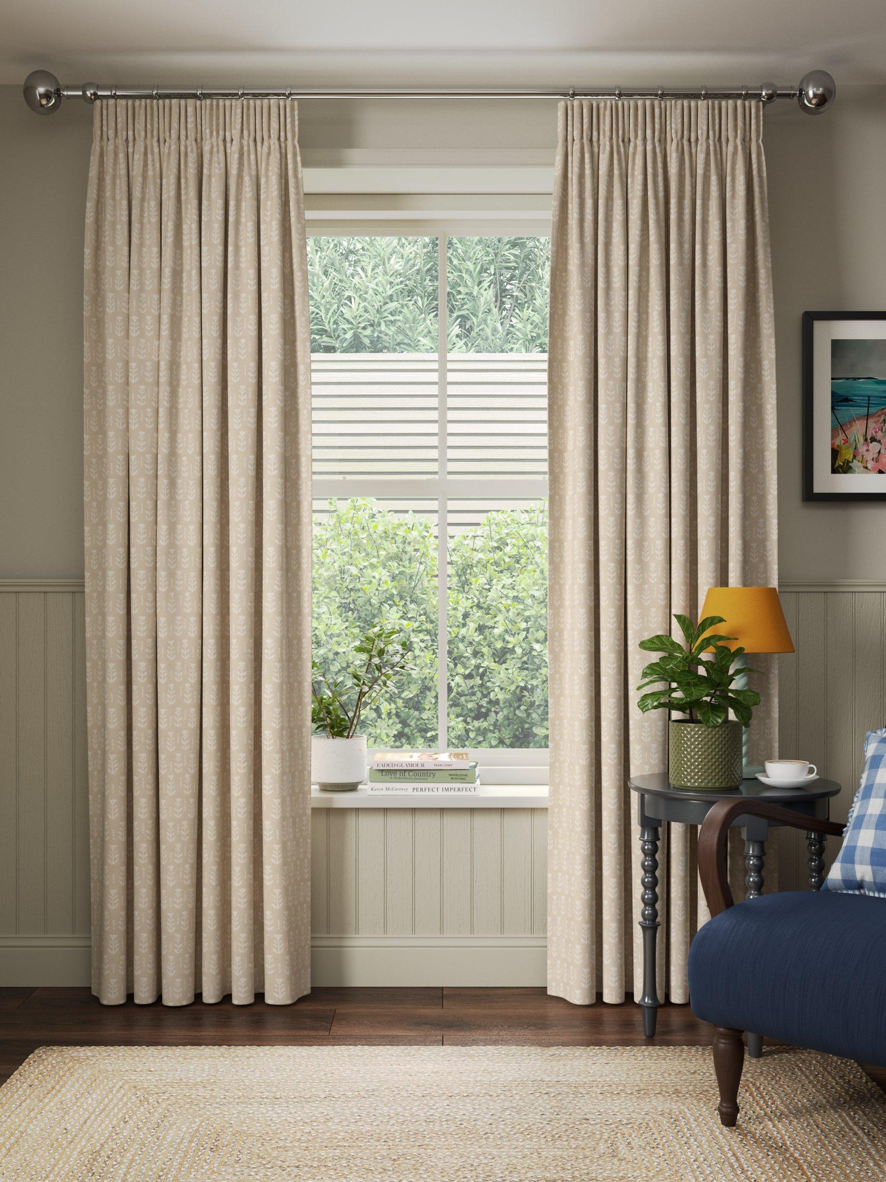 John LewisCora Print Pair Lined Pencil Pleat Curtains, Putty