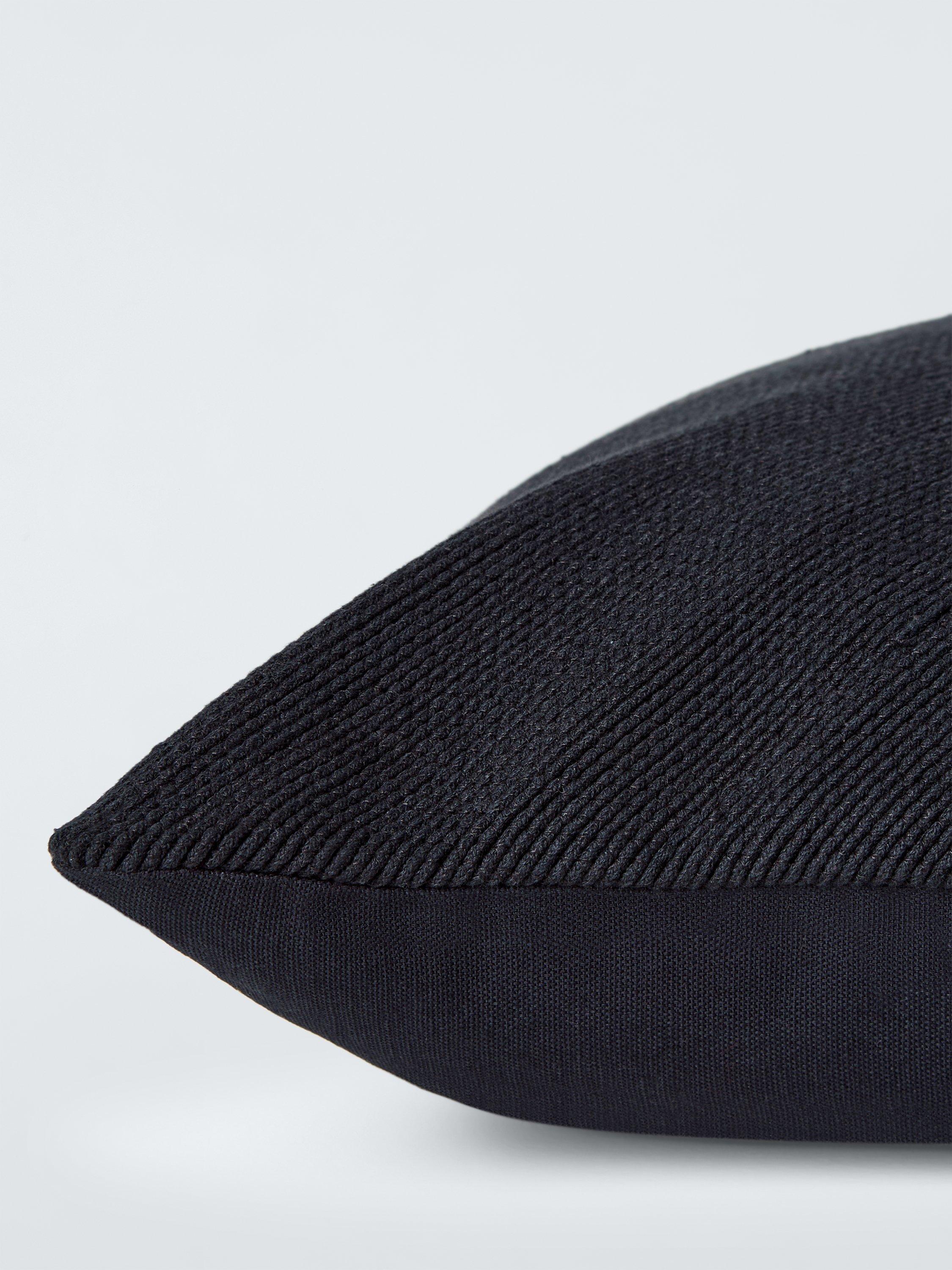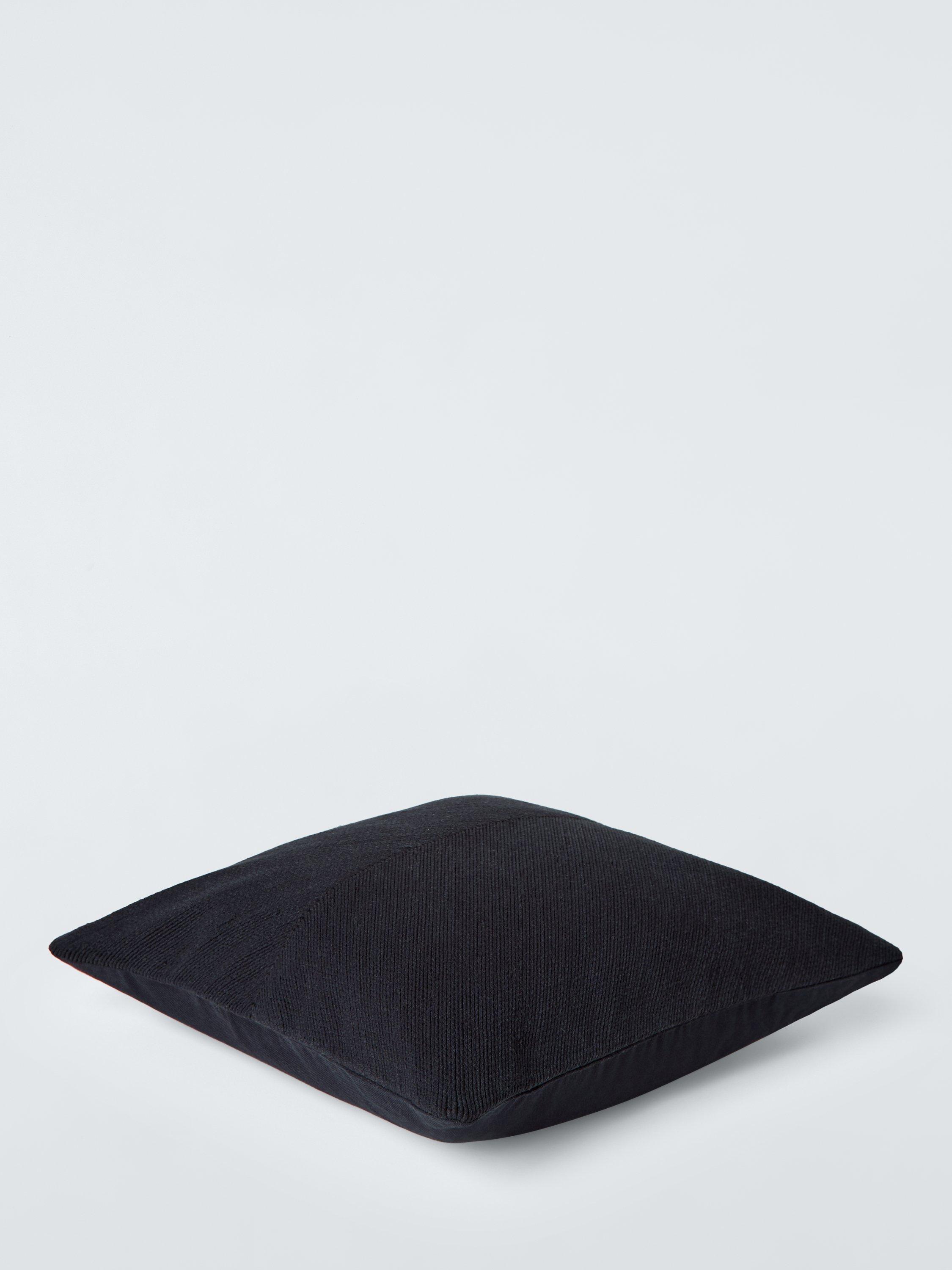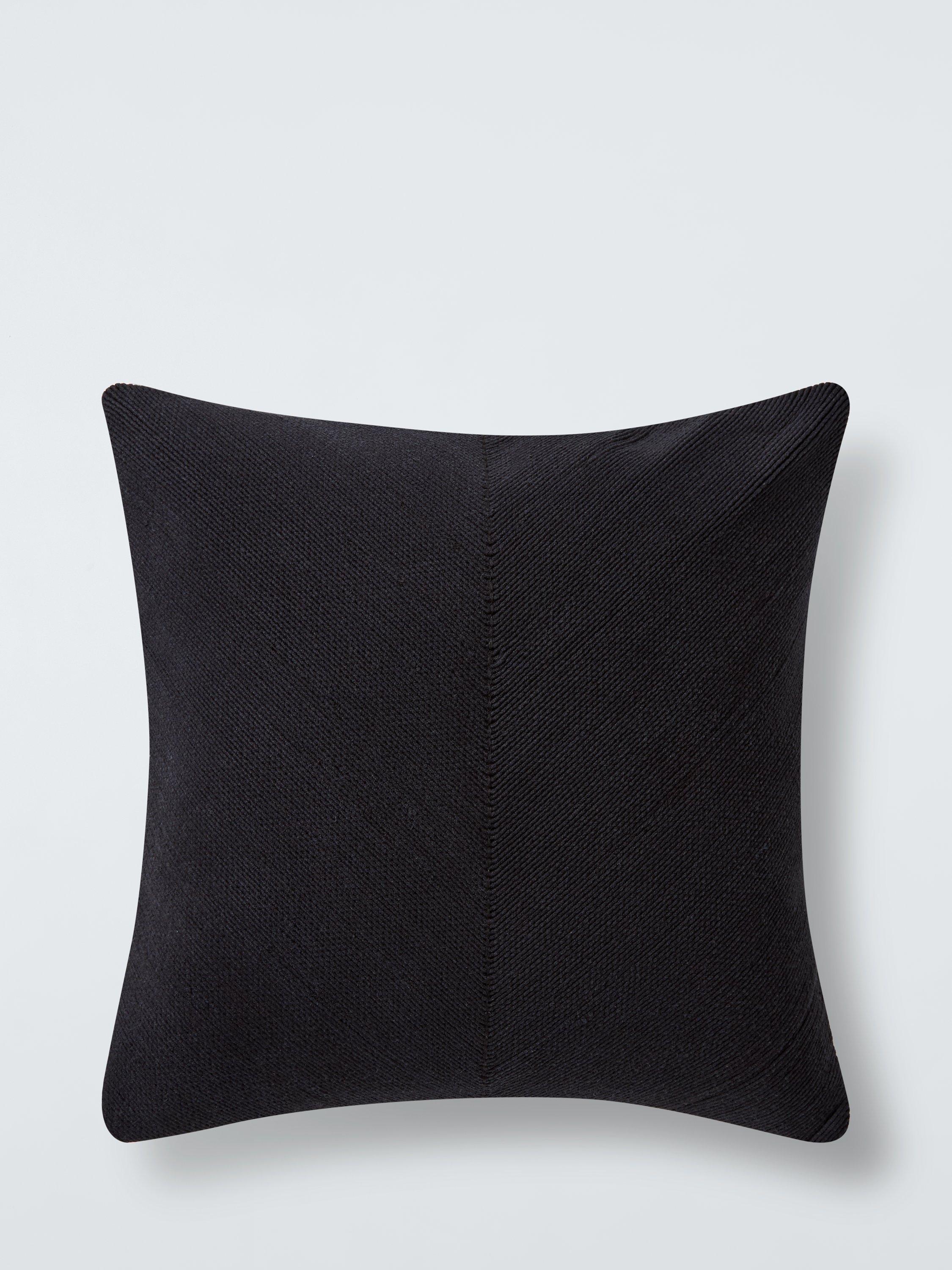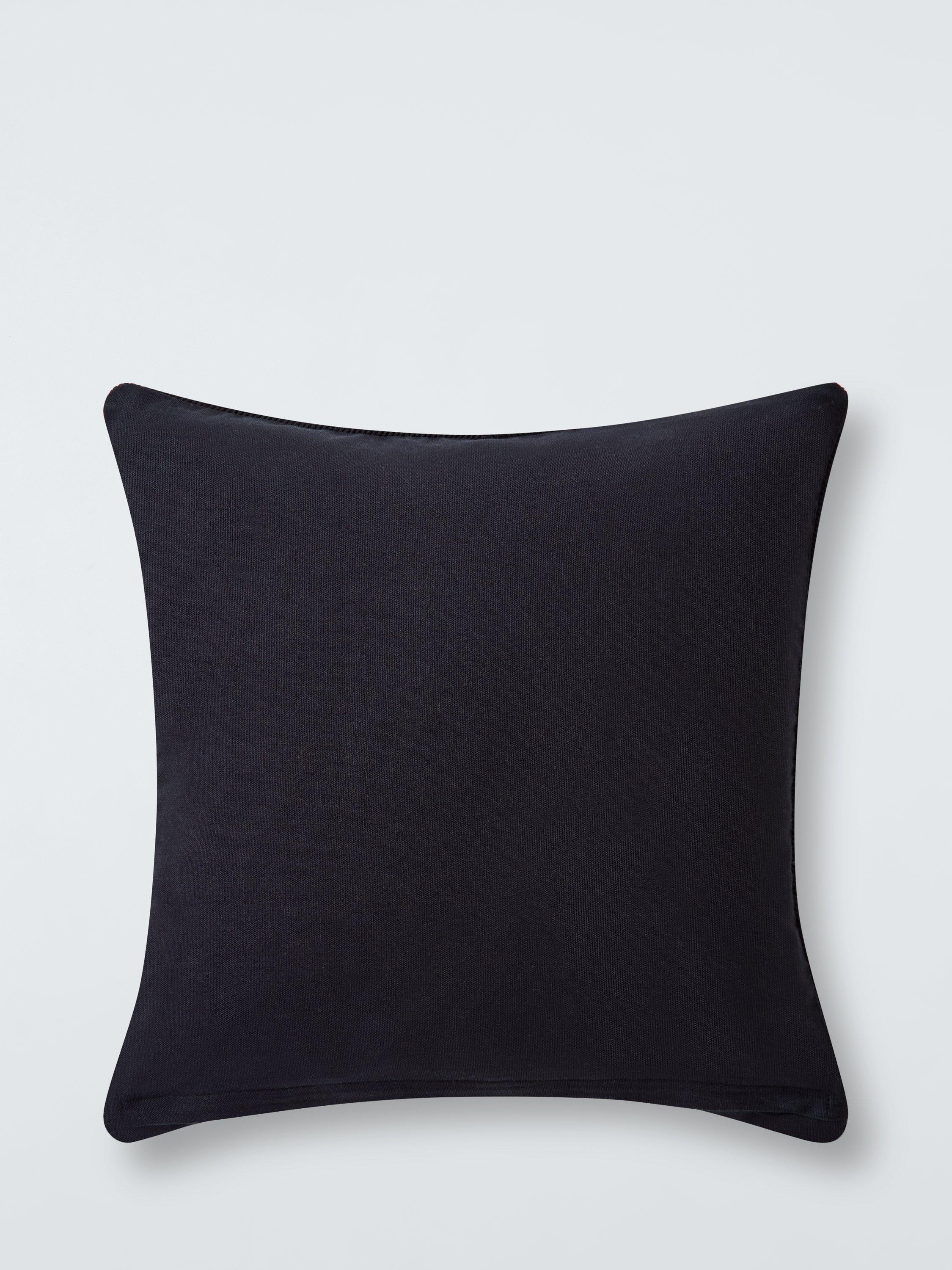 This cotton cushion is woven with a simple corded "v" design and hand-guided embroidery detail.
