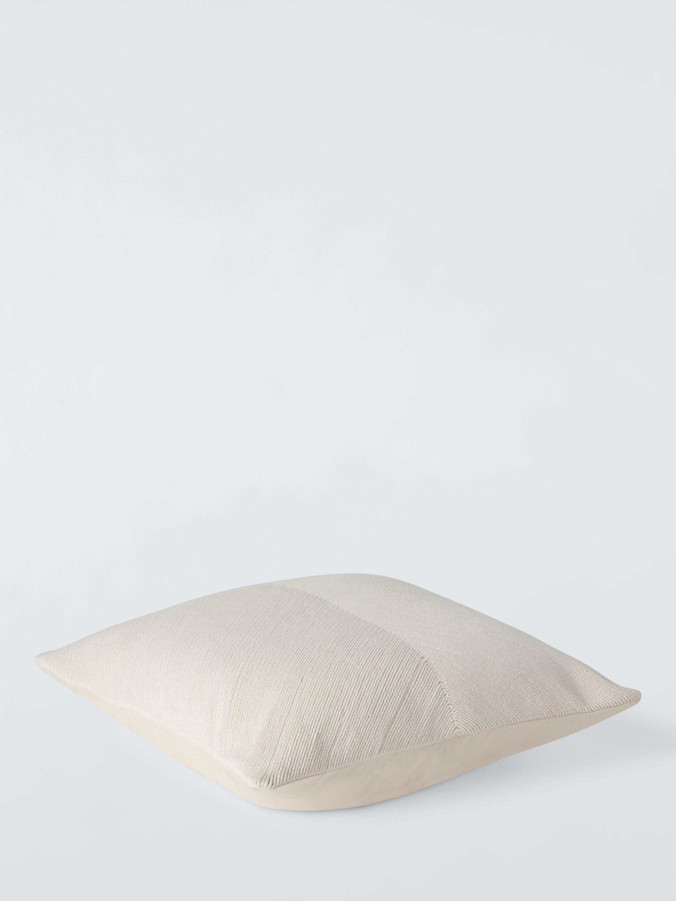 This cotton cushion is woven with a simple corded "v" design and hand-guided embroidery detail.