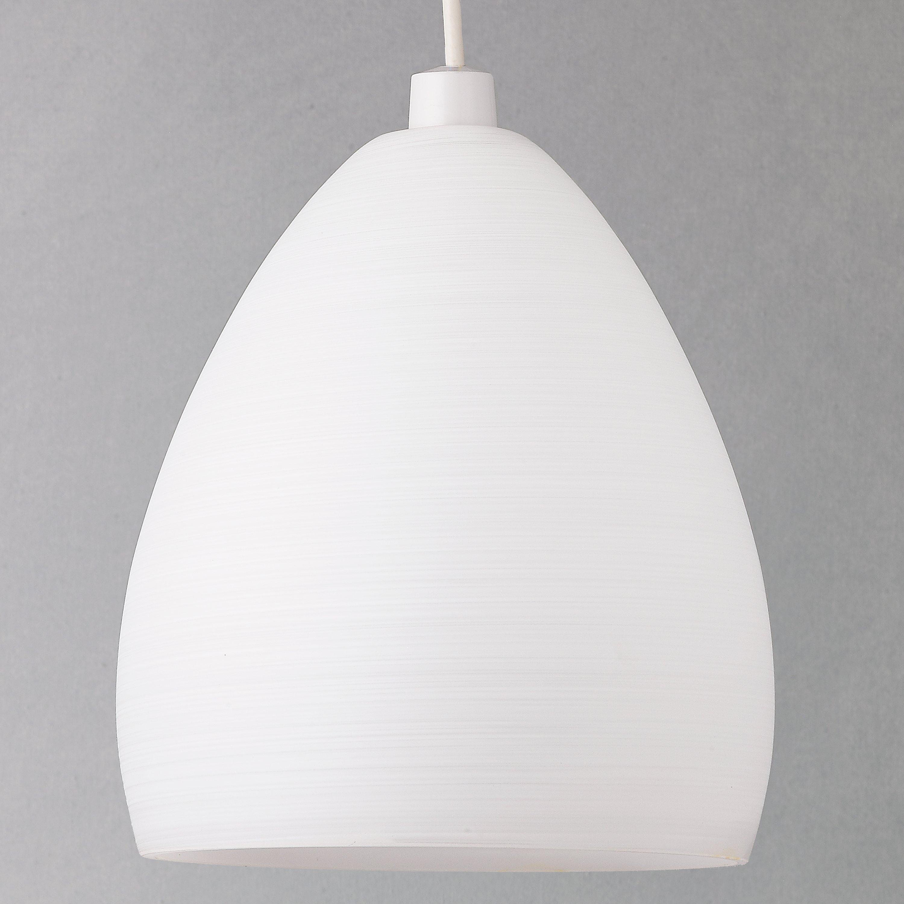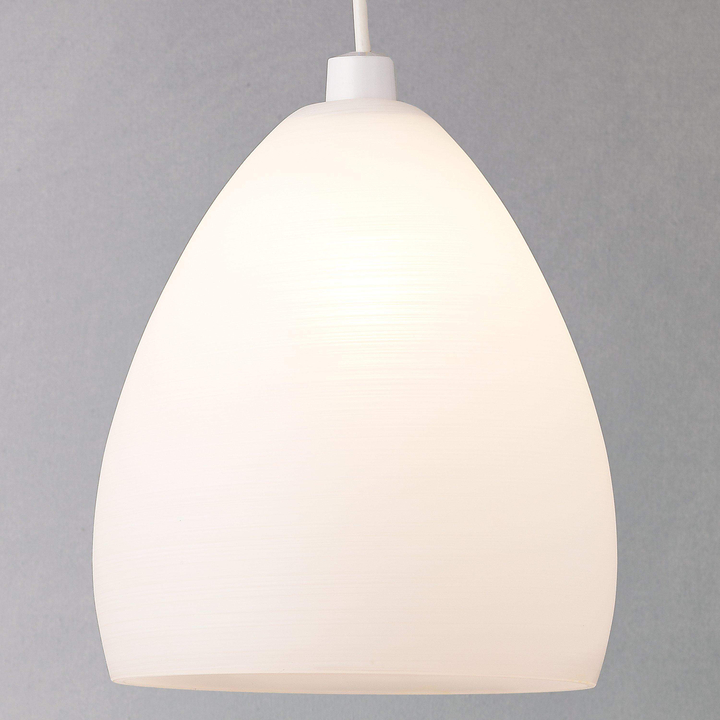 Egg-shaped ceiling shade made from smooth, opal glass.