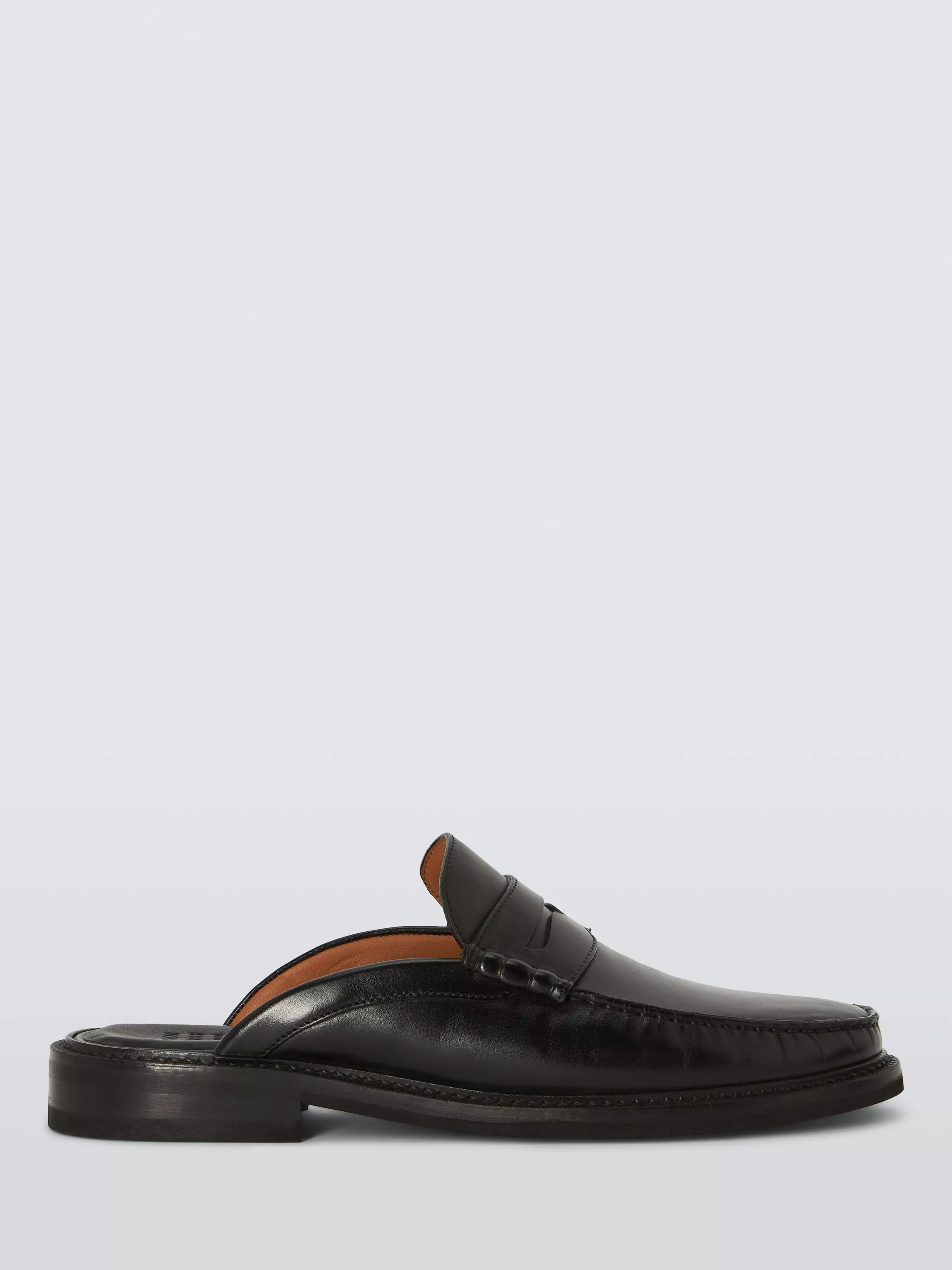 With a modern loafer design, our backless Cornell style is made from leather with saddle detailing and a low block heel.