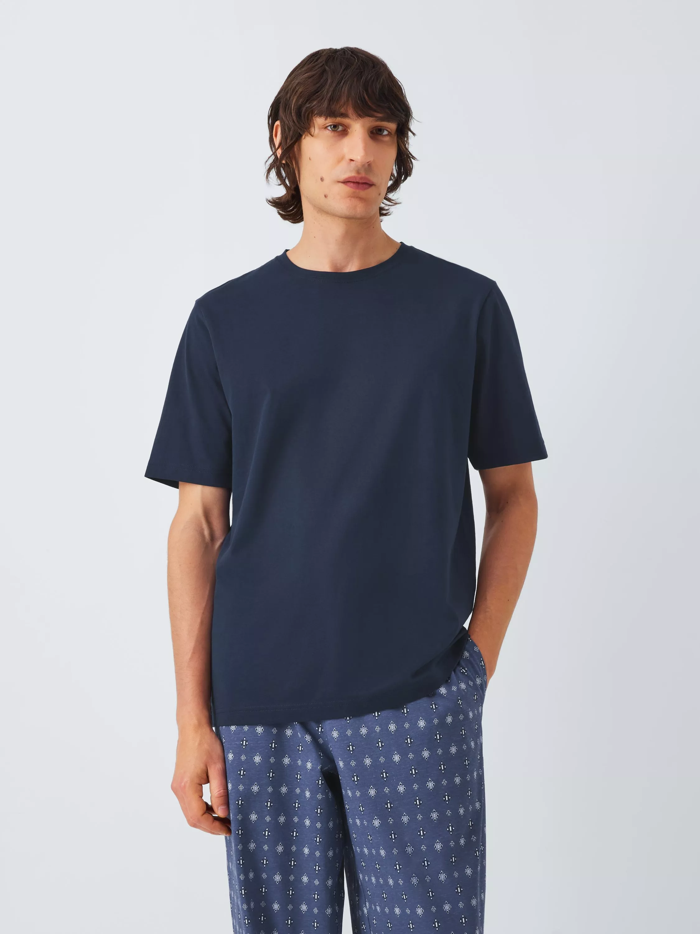 A classic interlock jersey crew-neck T-shirt and jersey drawstring PJ bottoms with characterful geo-stripe detailing come together to create this comfortable pyjama set.