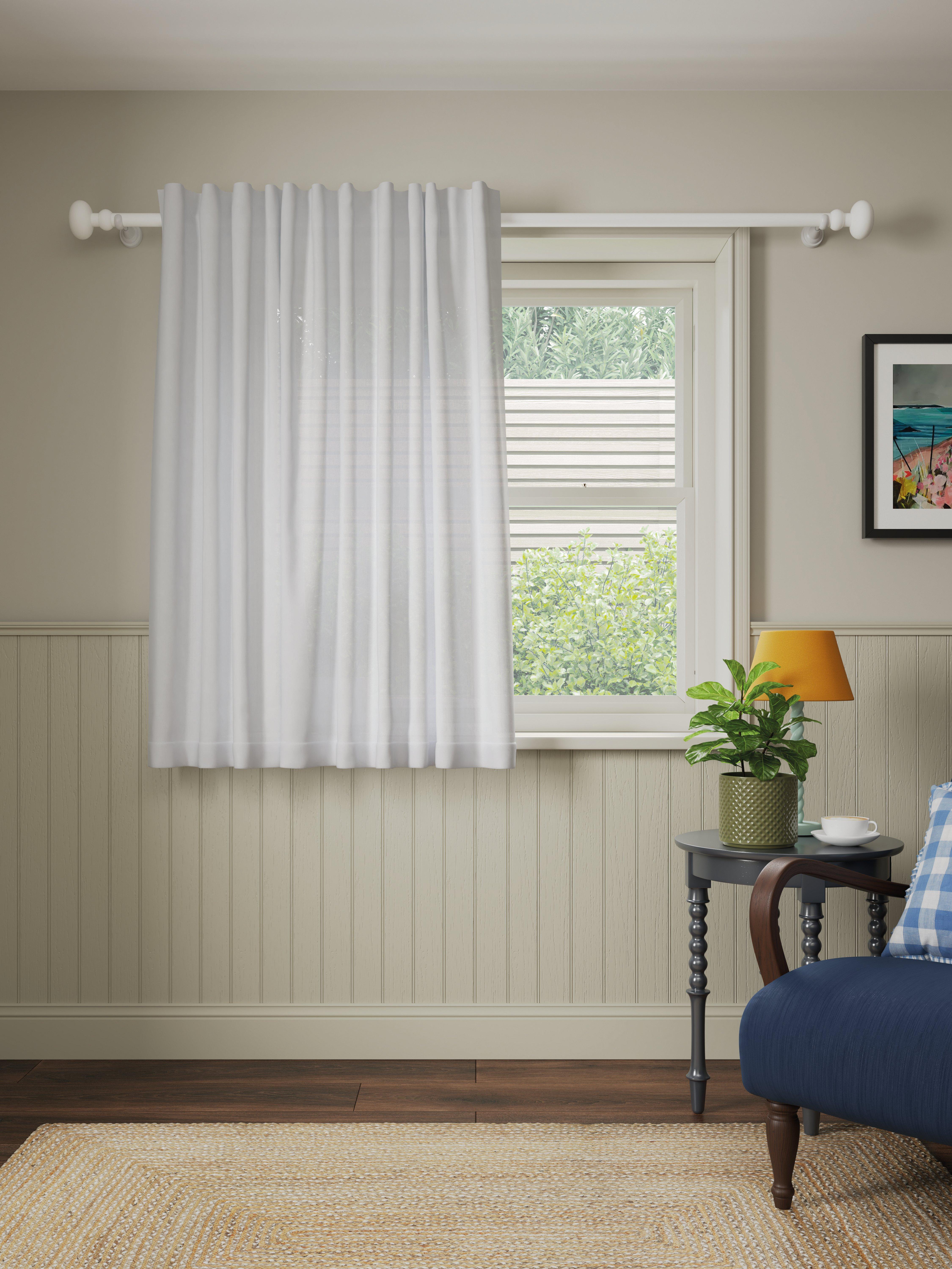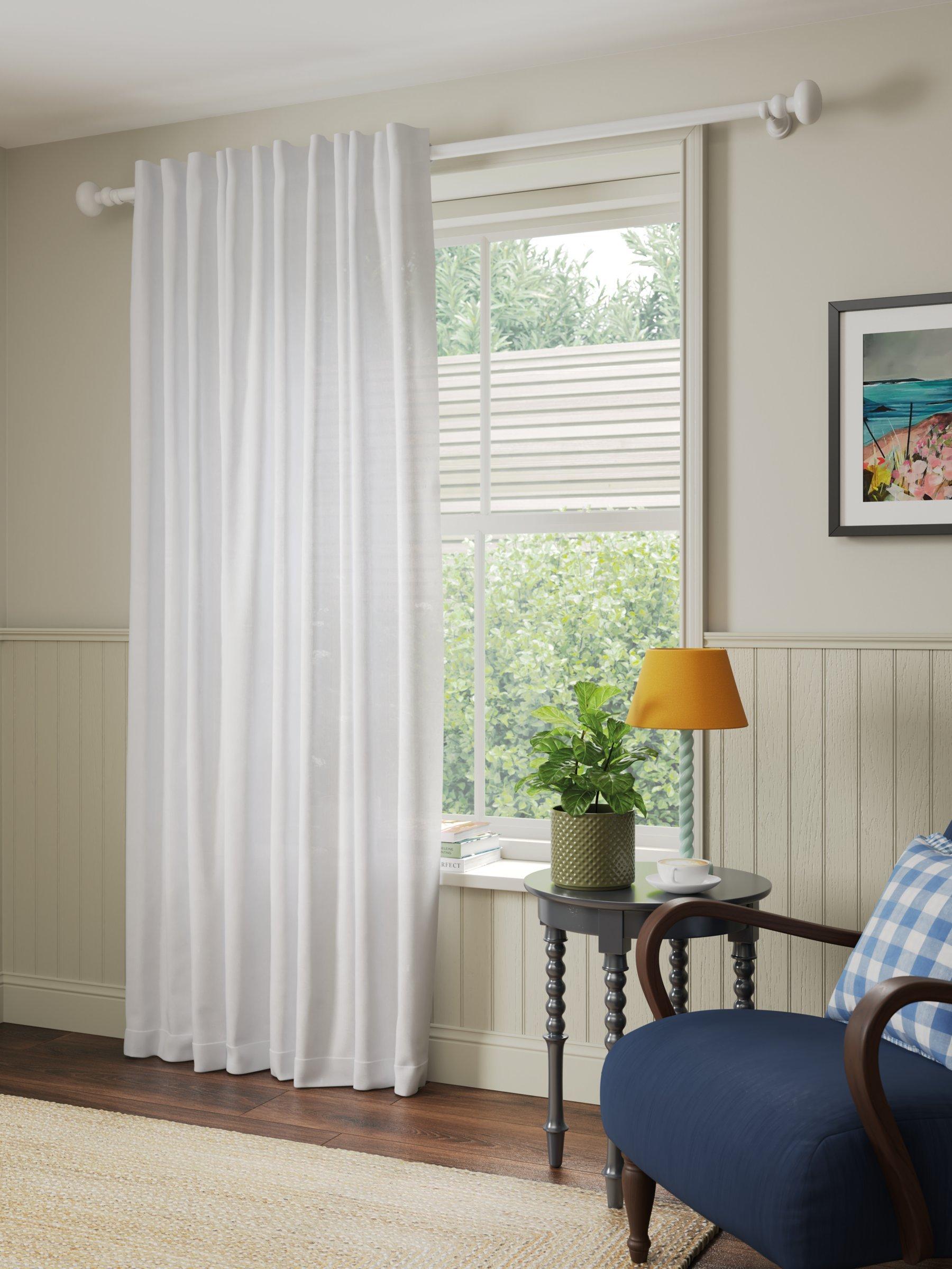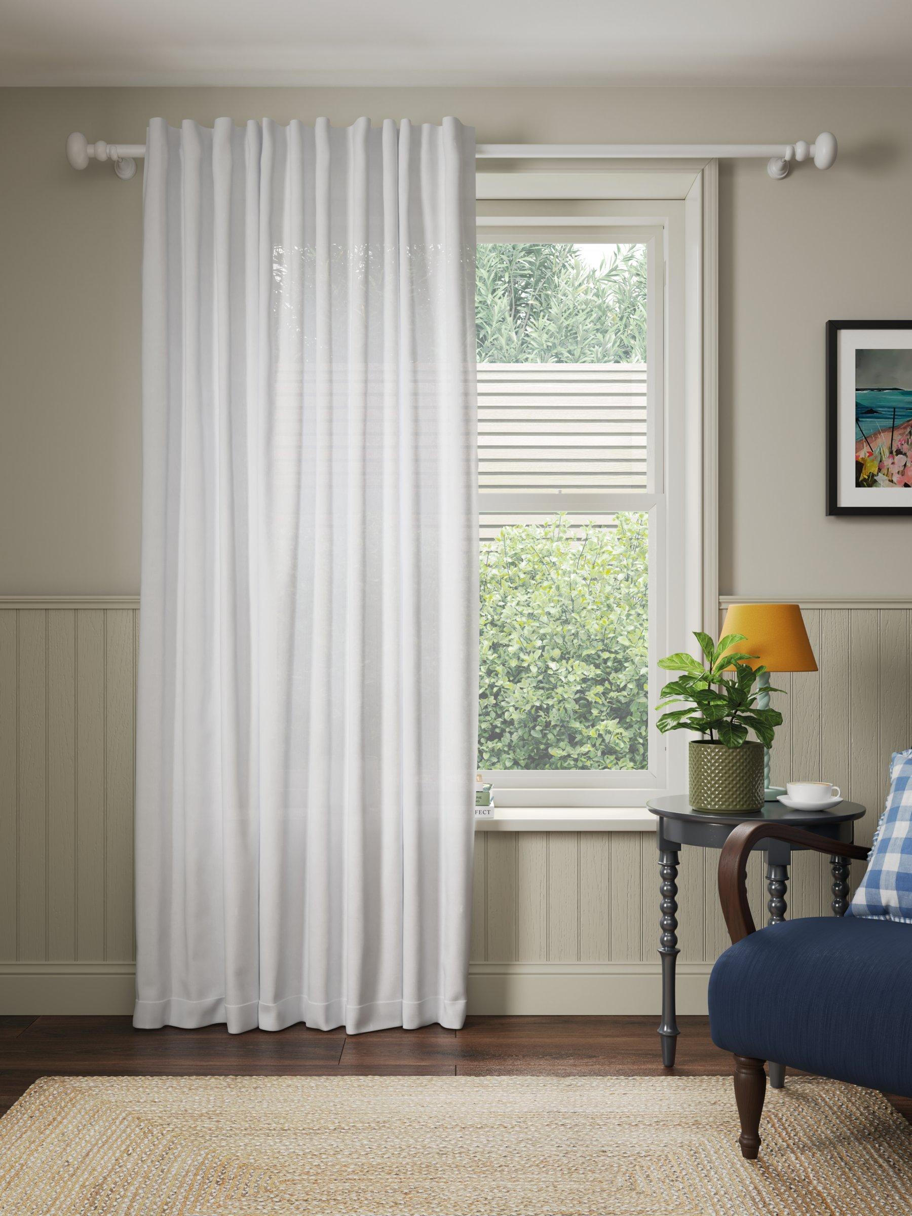 This panel is made in a beautiful textured, cotton-linen blend fabric with a simple, easy to hang hidden tab header.