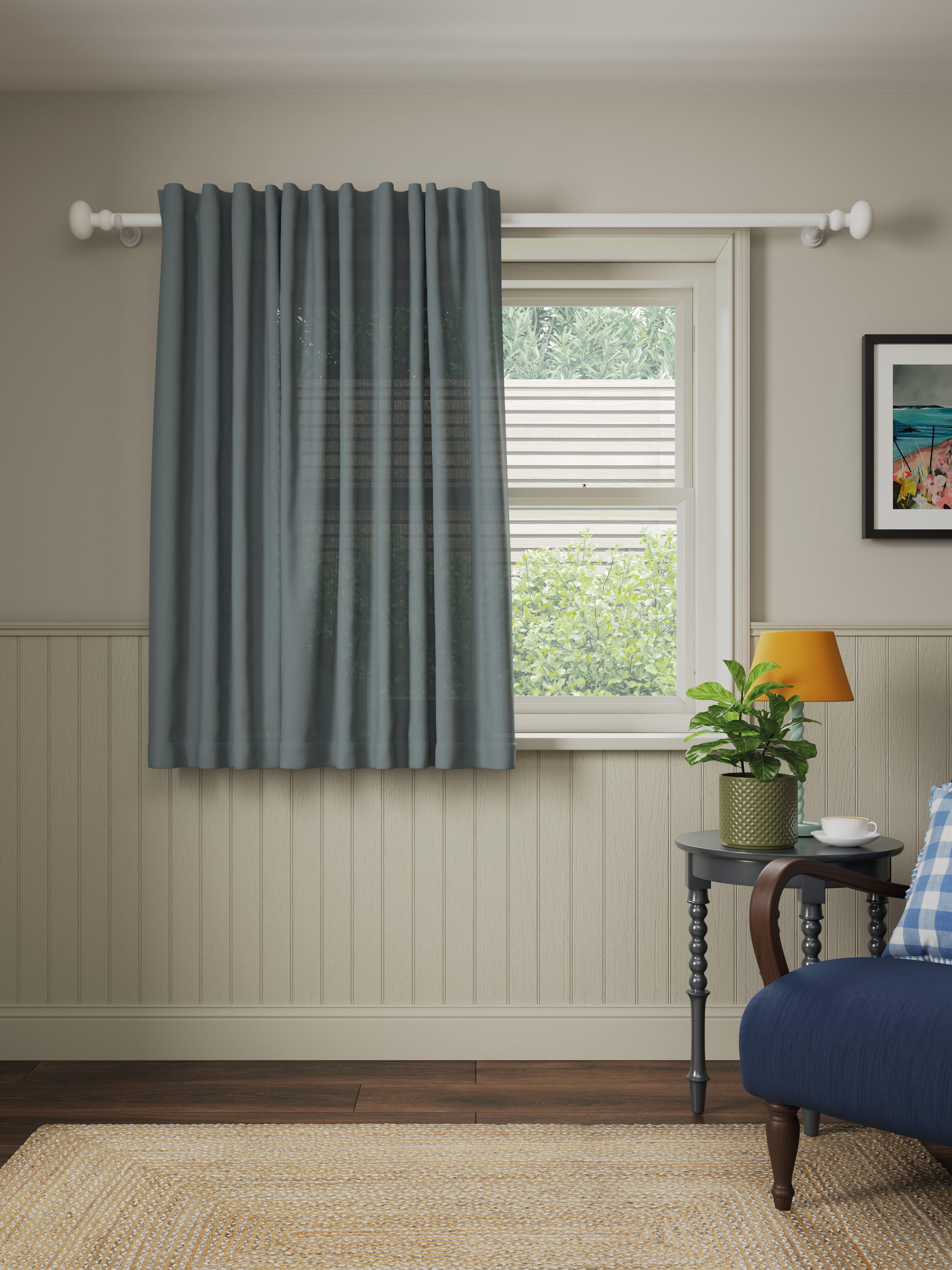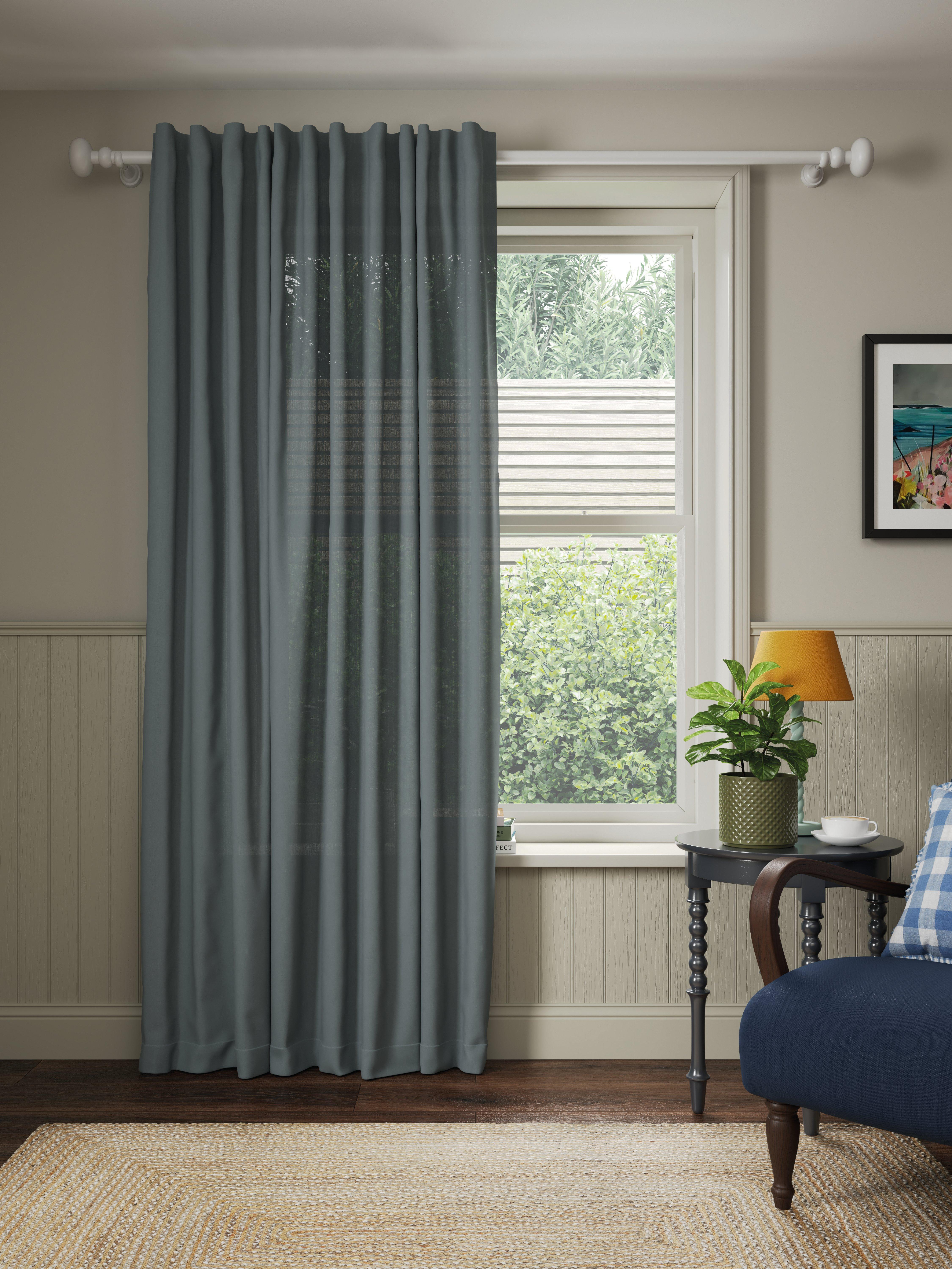 This panel is made in a beautiful textured, cotton-linen blend fabric with a simple, easy to hang hidden tab header.