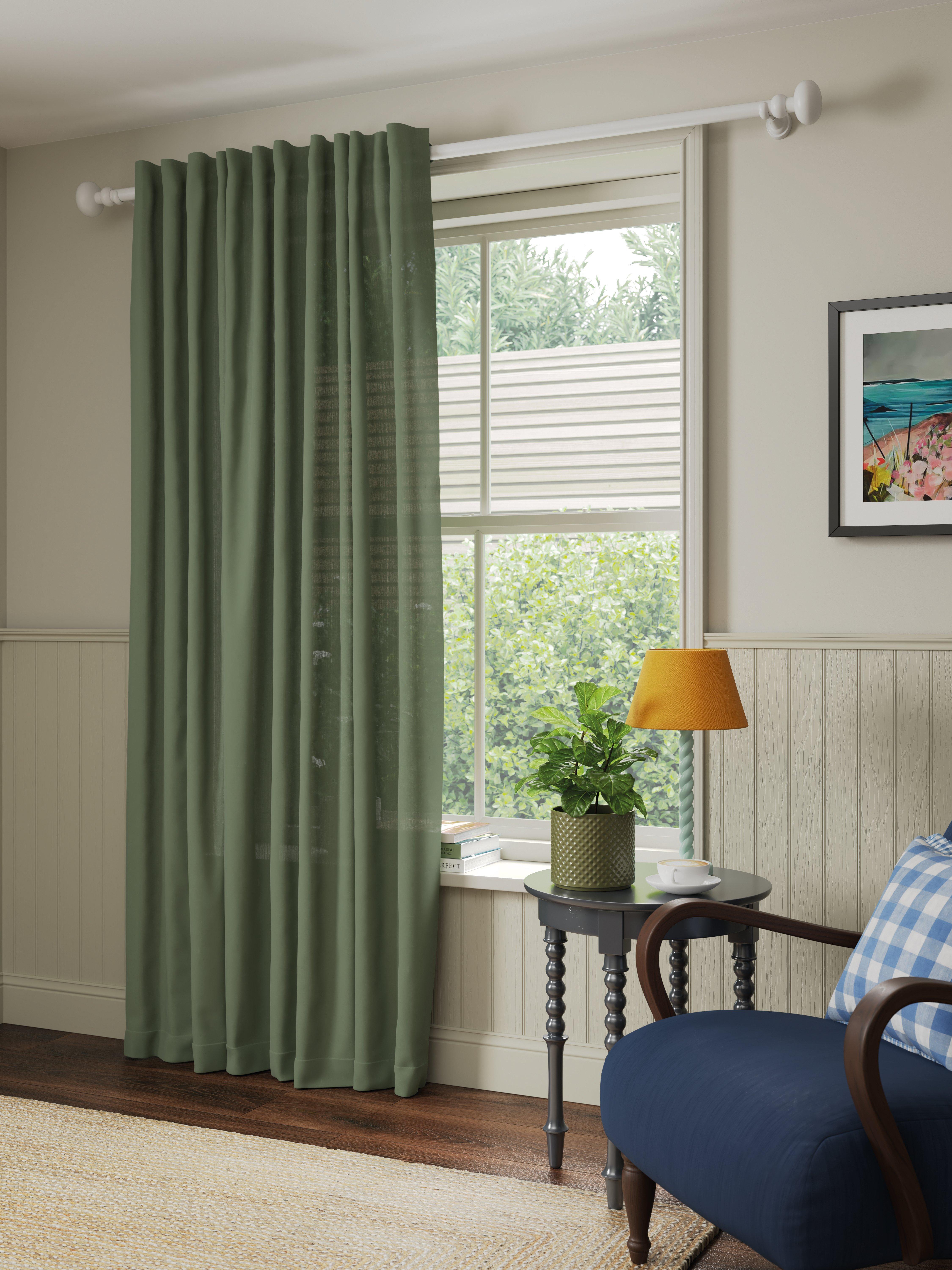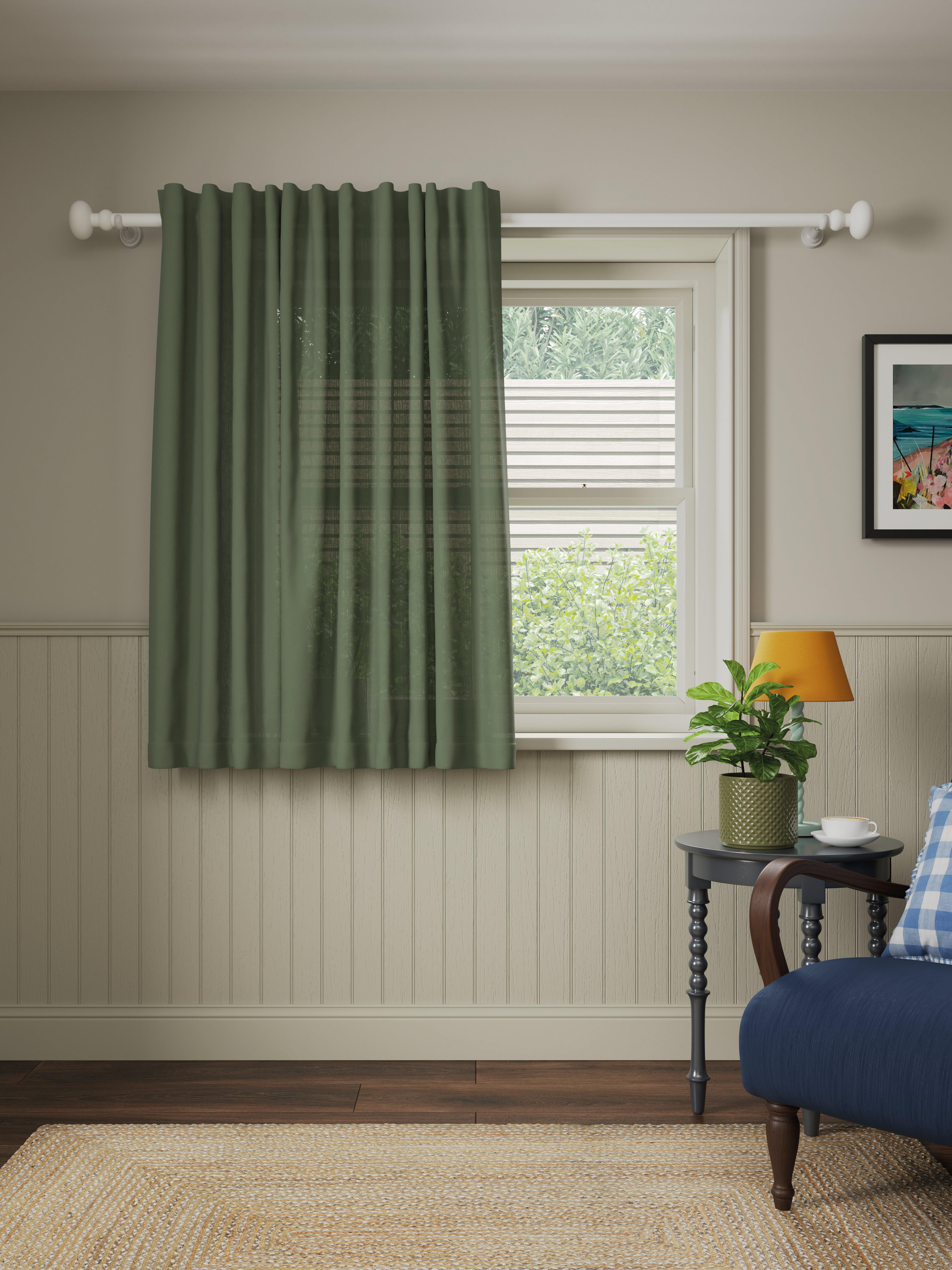 This panel is made in a beautiful textured, cotton-linen blend fabric with a simple, easy to hang hidden tab header.
