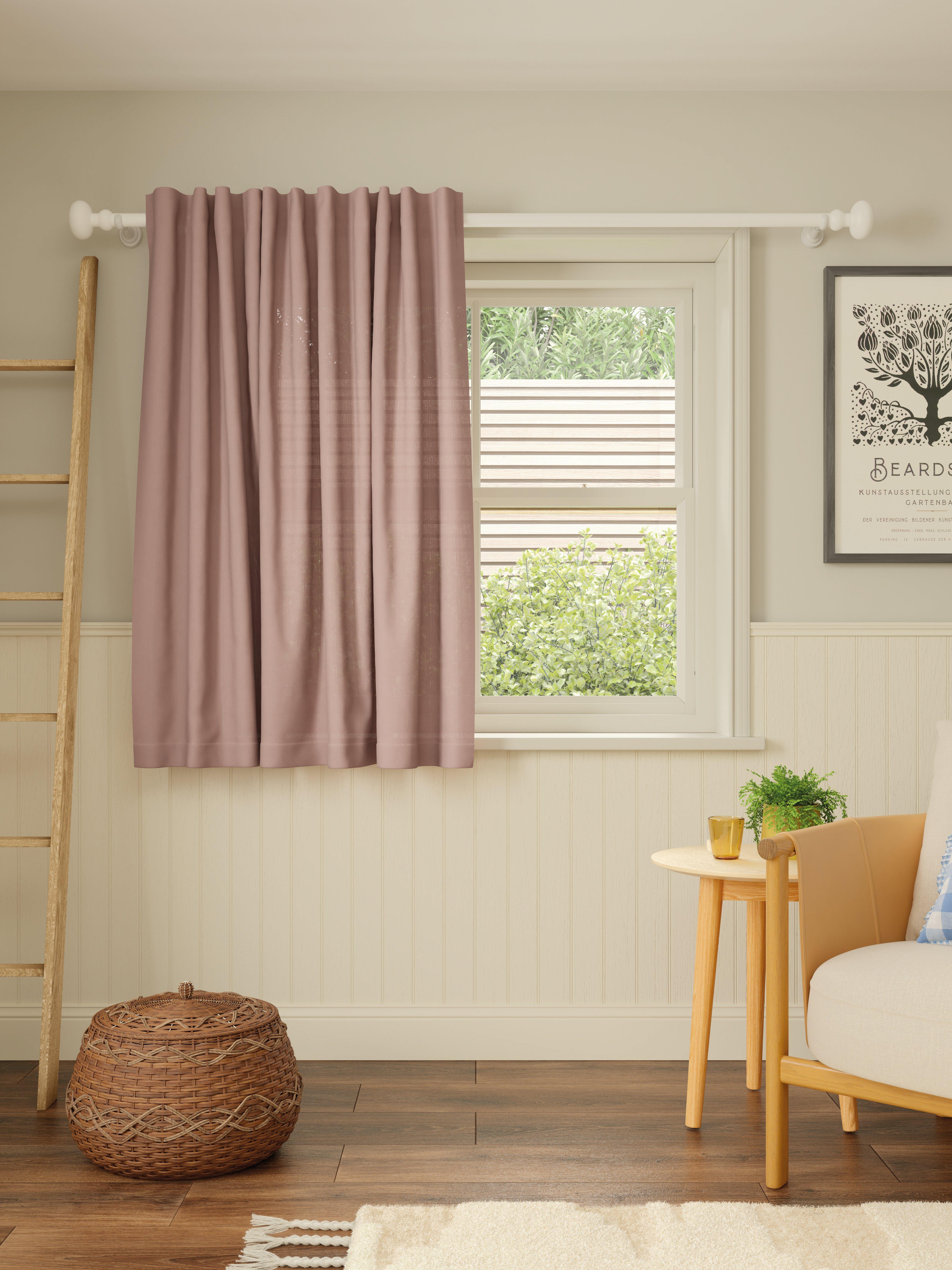 This panel is made in a beautiful textured, cotton-linen blend fabric with a simple, easy to hang hidden tab header.