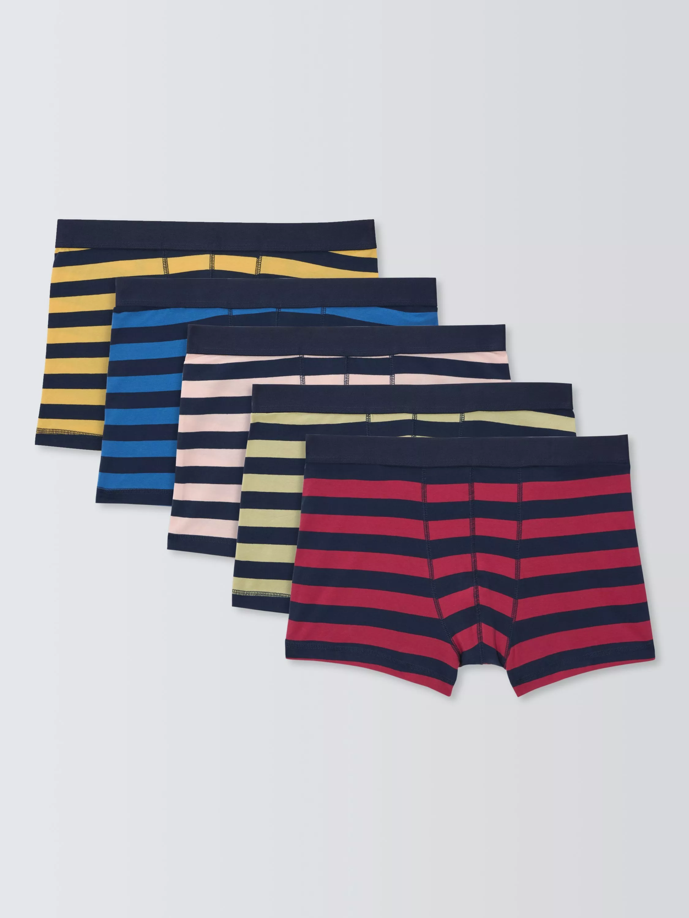 Our classic trunks are made from quality cotton with a hint of added stretch to assure all-day comfort. These sport a selection of rugby stripe designs. Supplied as a pack of five.