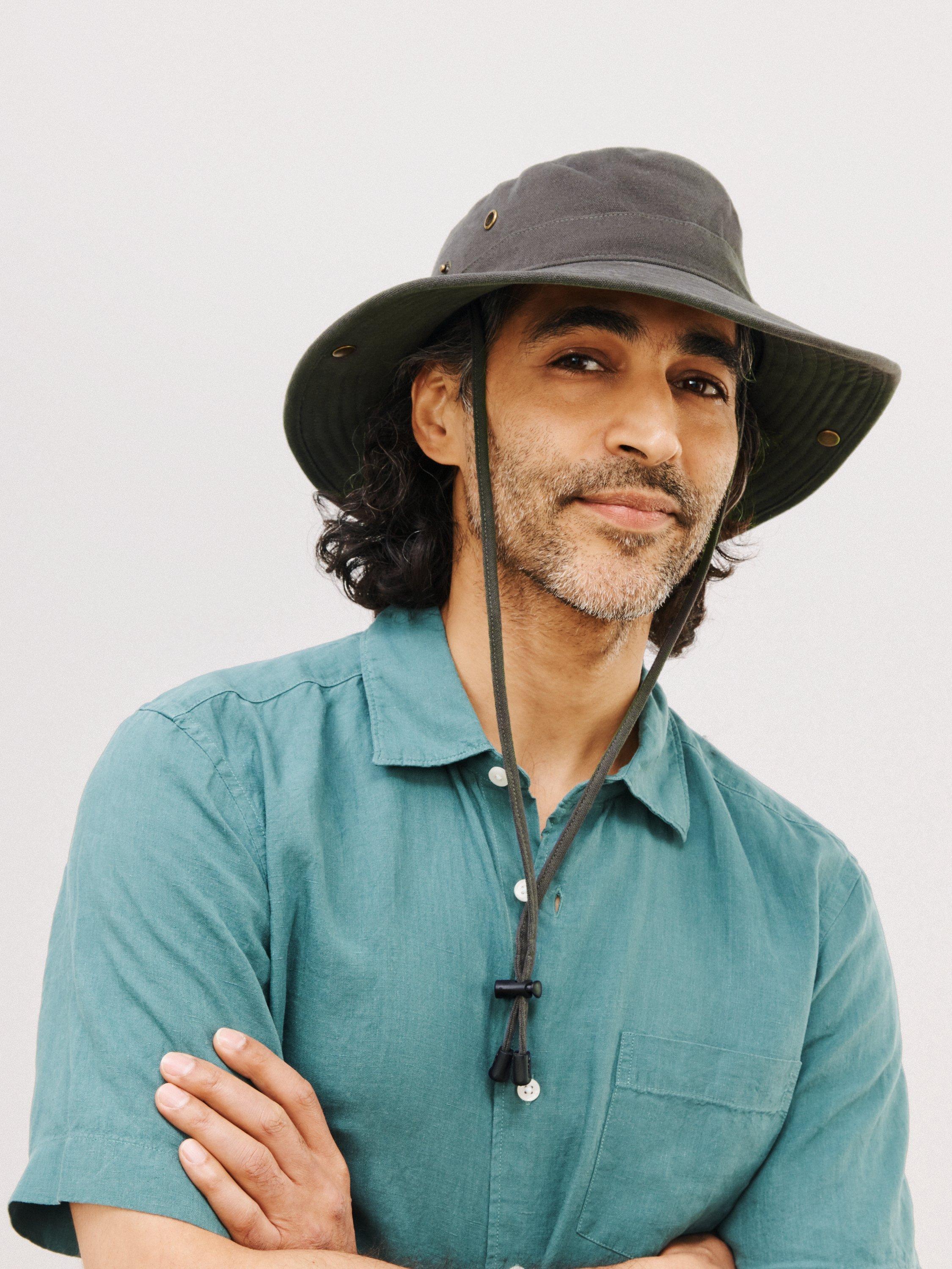 Crafted from 100% cotton, our safari hat can be styled as a sun hat, a fedora ...or a cowboy hat. Combining the best of all these styles, its wide soft brim shades the face and the neck with UFP protection, and it can be positioned just right with an adjustable chin cord.