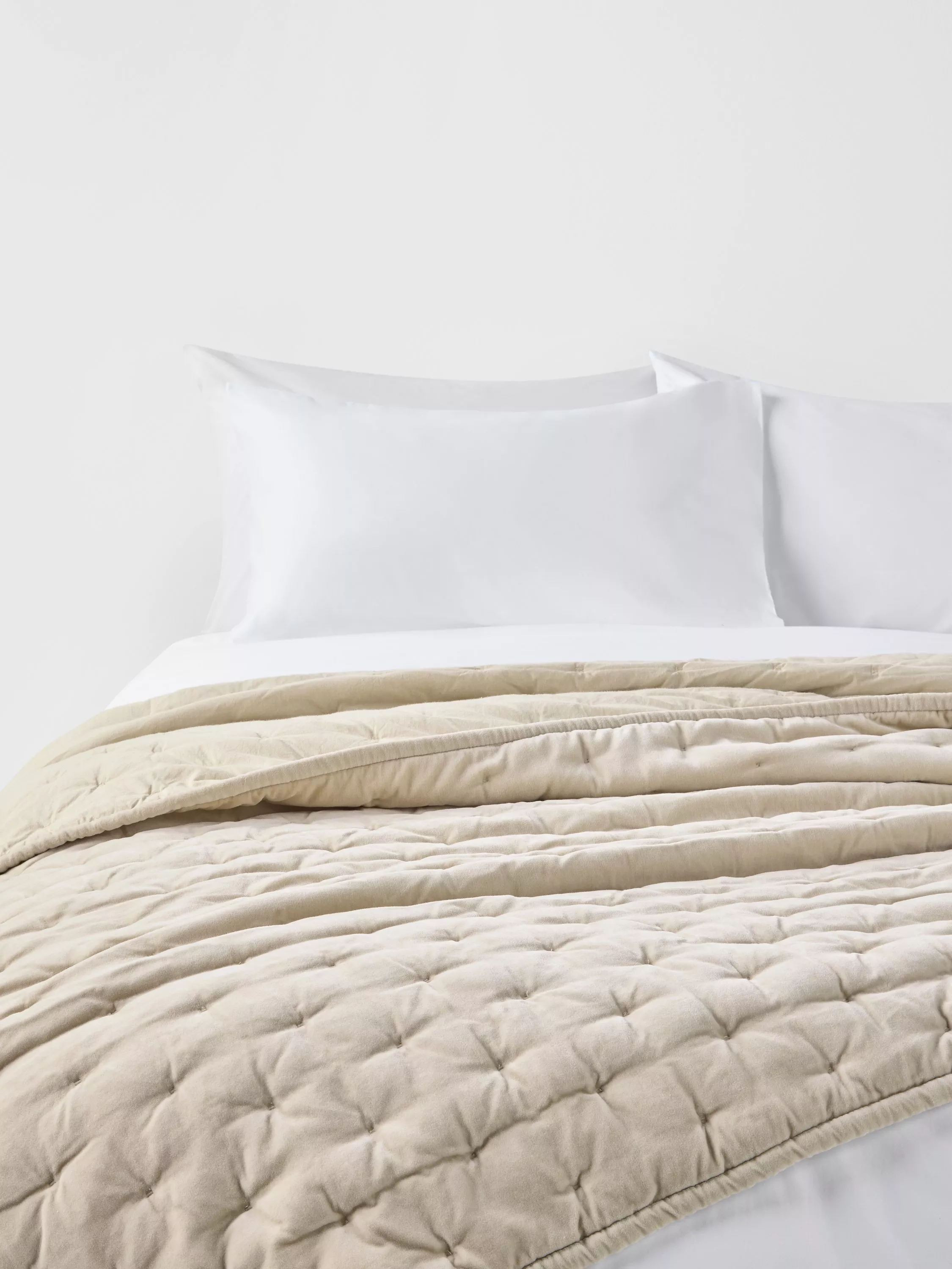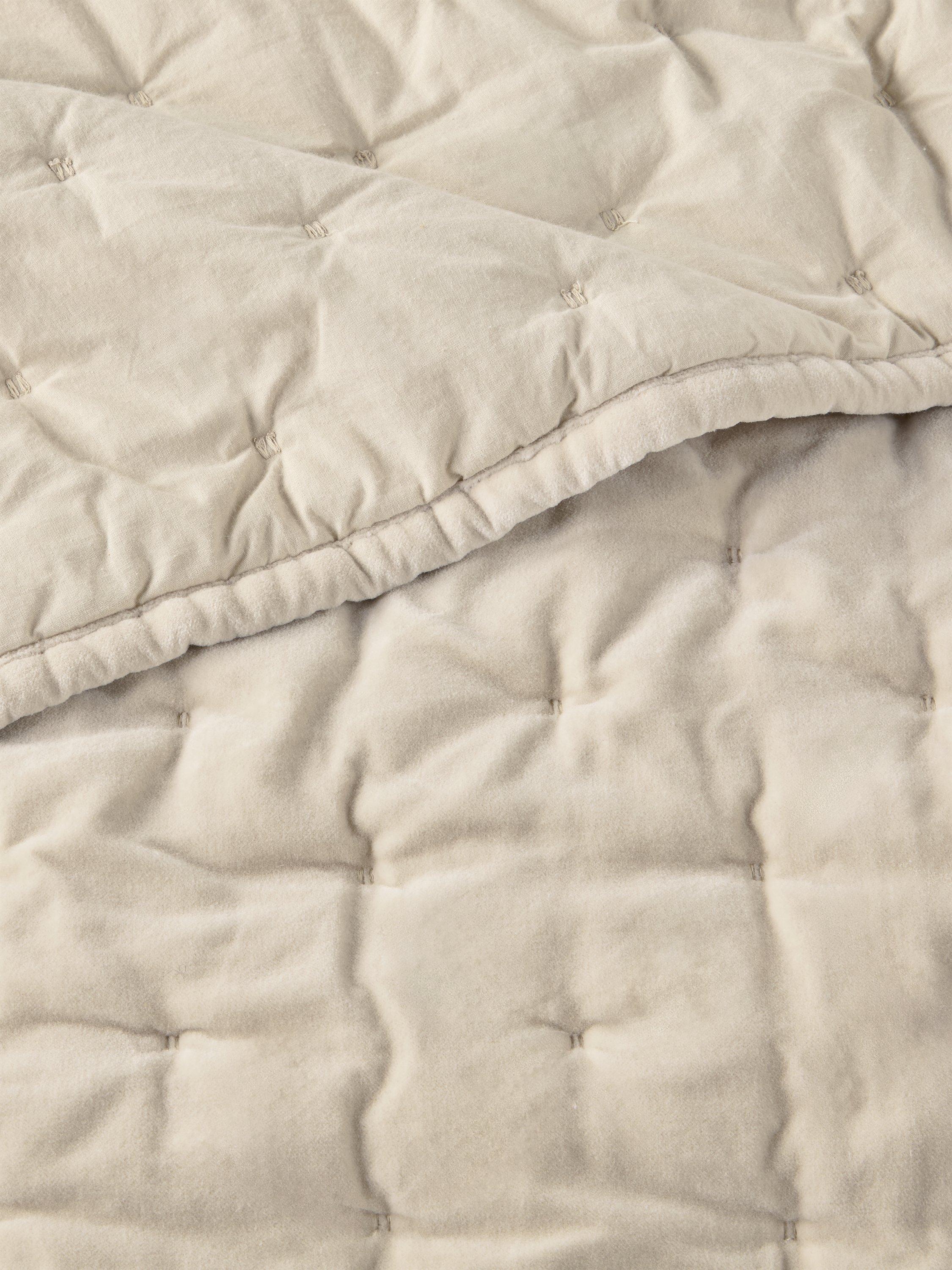 Soft velvet-textured quilted bedspread. Made of breathable cotton to give you a lightweight layer to your bed in summer or extra warmth in the winter.