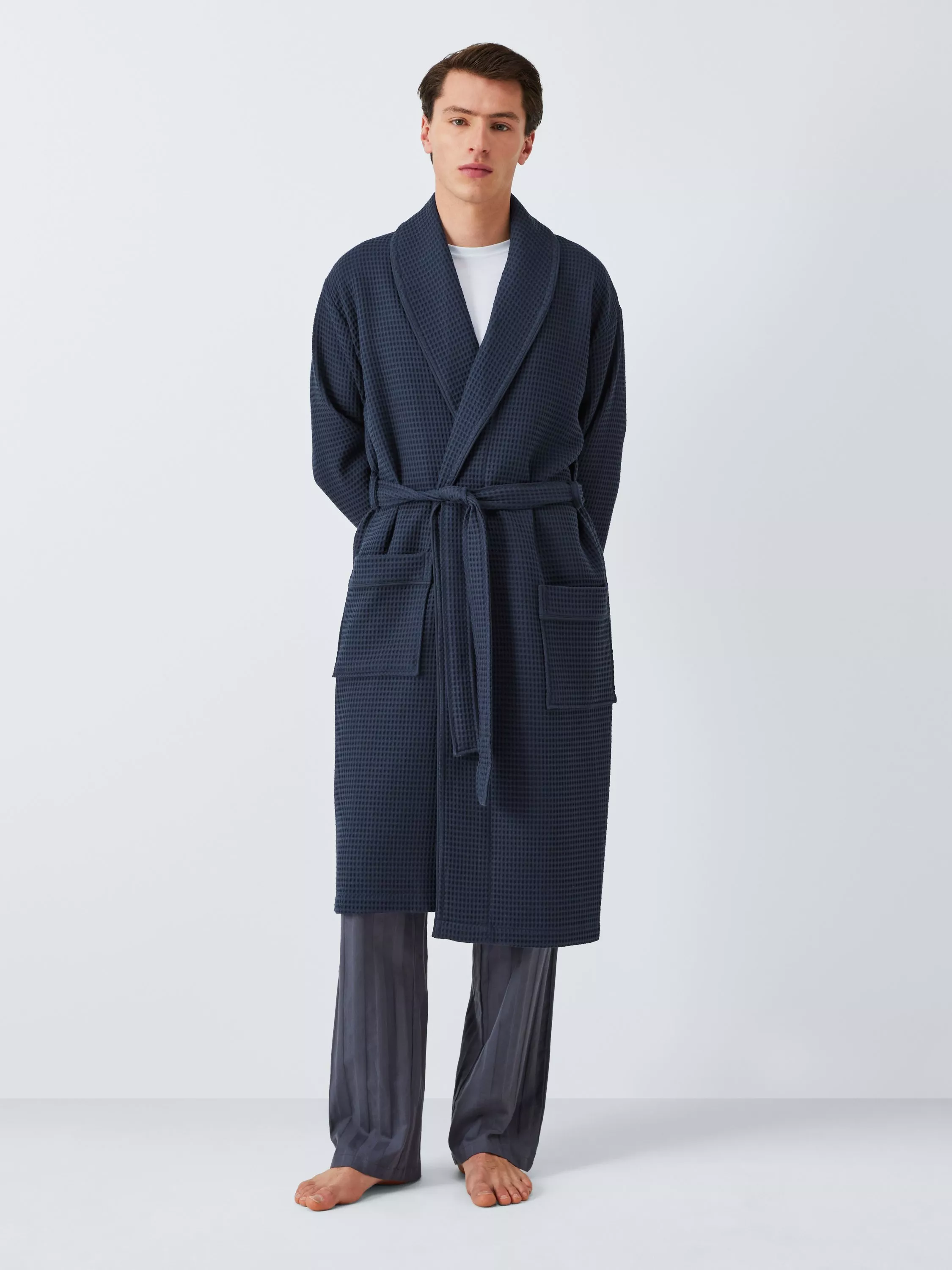 Crafted from a lightweight and breathable cotton fabric, made from pure cotton, our robe is the ideal way to get comfy before bed, or extend that well-earned lazy weekend morning. With two generous pockets at the front, it fastens loosely with a self-tie waistband. Kick back and relax in style and comfort.