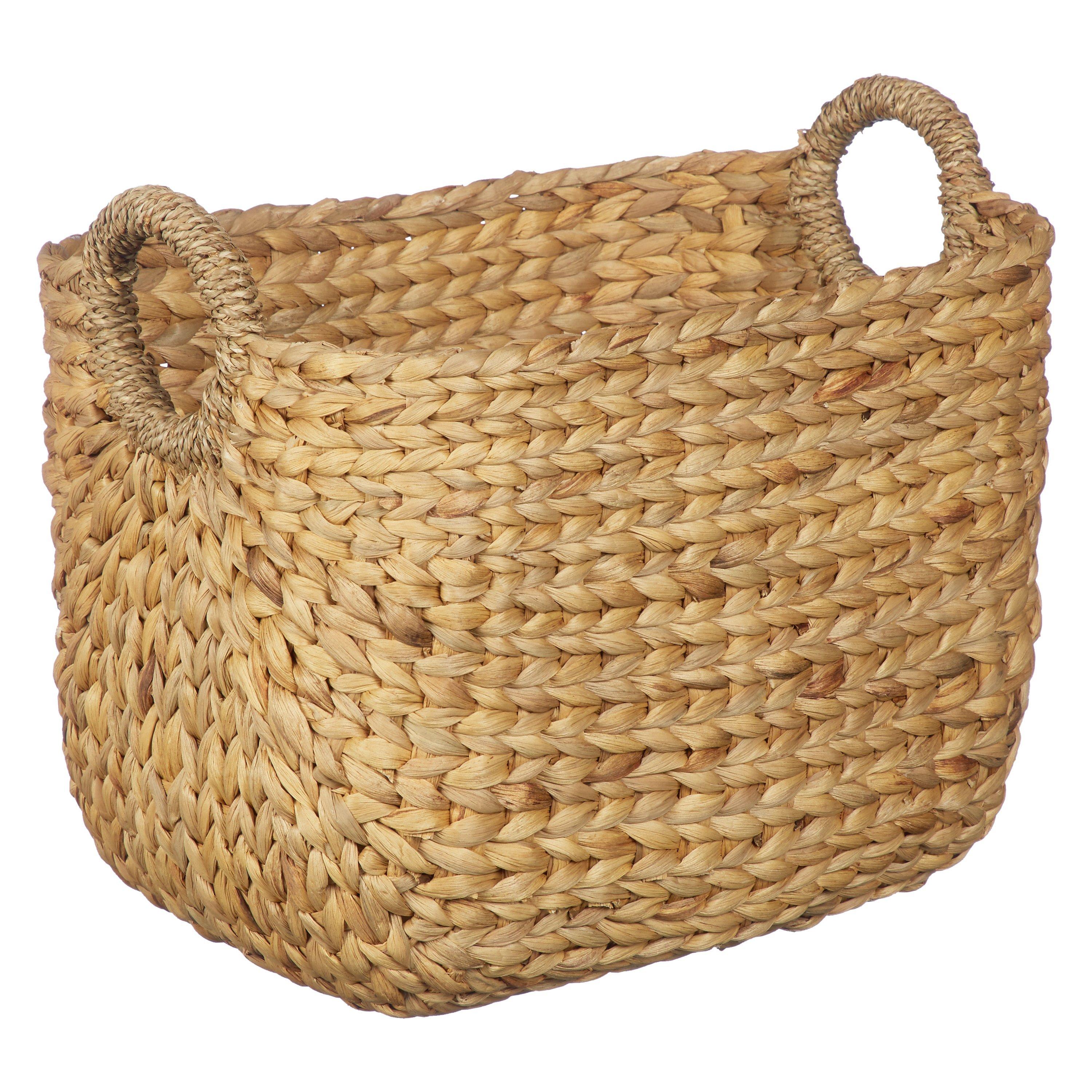 Lightweight and durable storage basket made from sustainable woven water hyacinth.