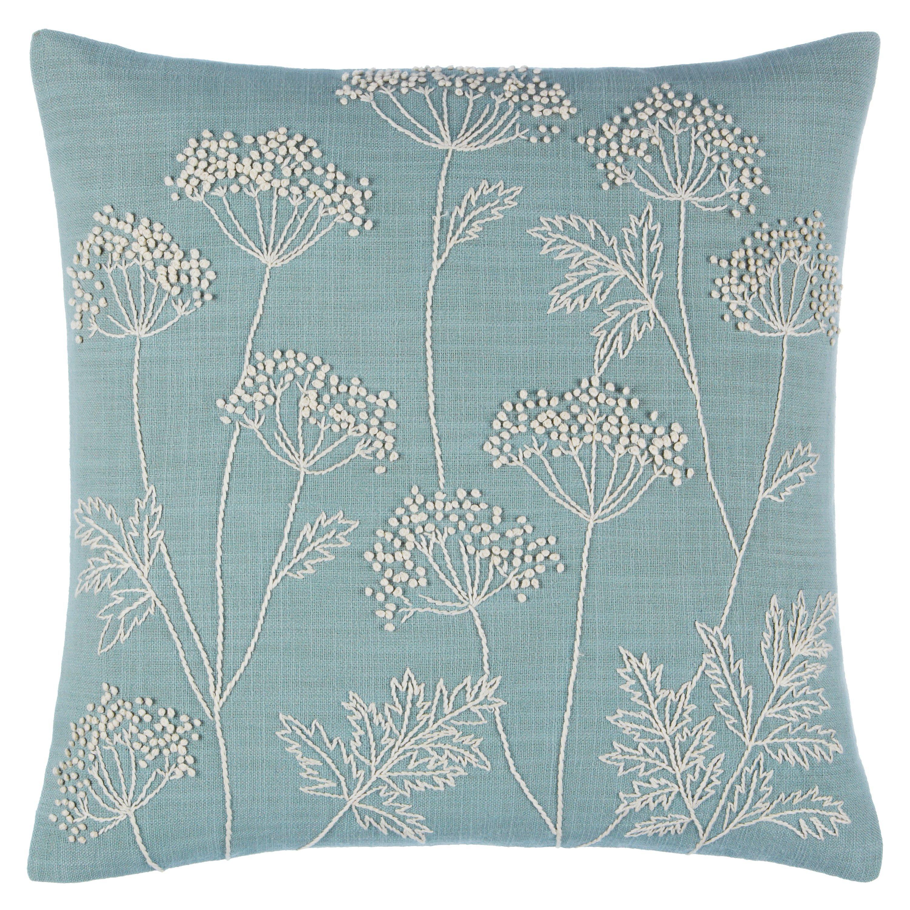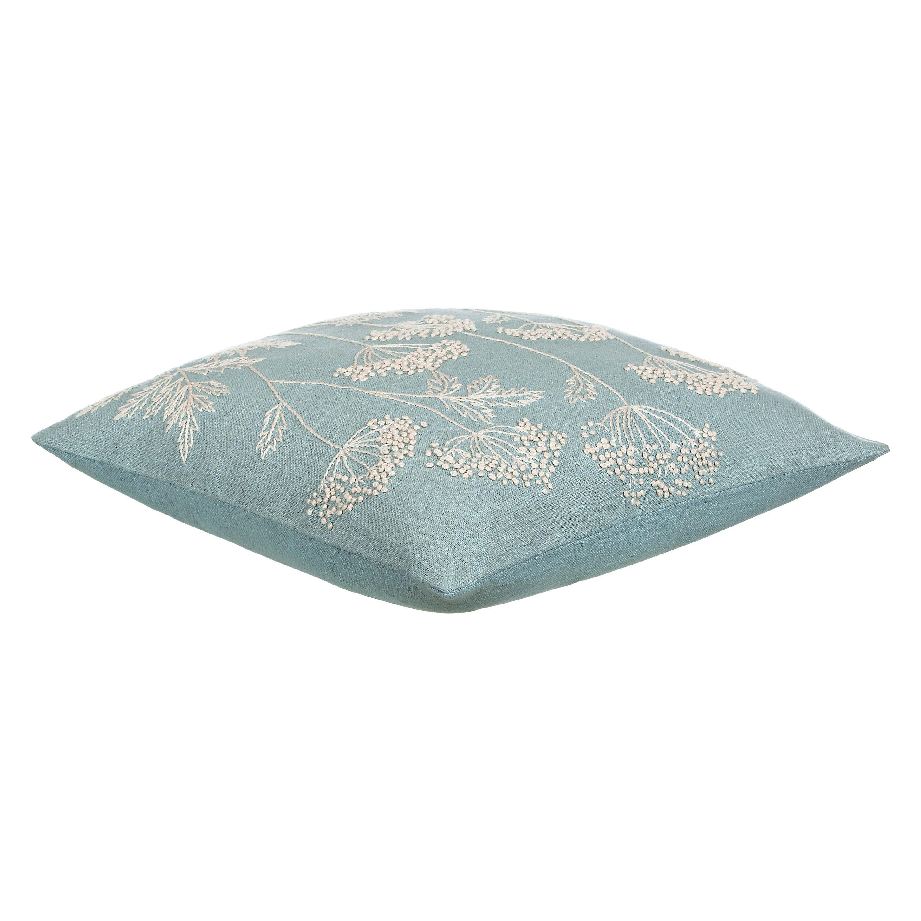 Suitable for a bedroom or living room, this pretty cushion features beautifully textured embroidery.