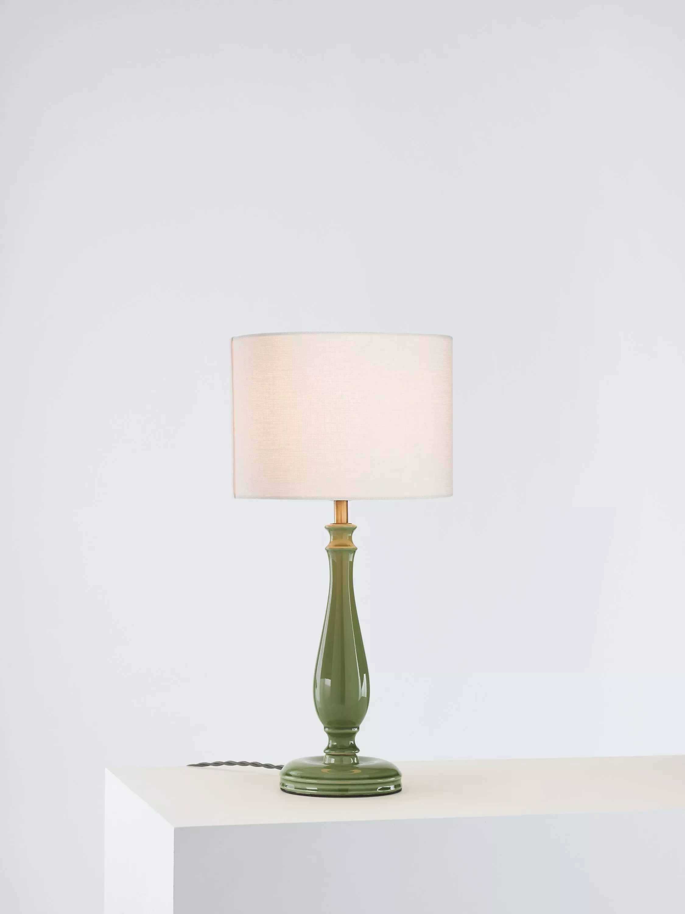 This lamp base adds an element of sophistication to any room. Its crackle ceramic glaze and antique brass detailing creates a relaxed, timeless feel and would fit perfectly with any décor.
