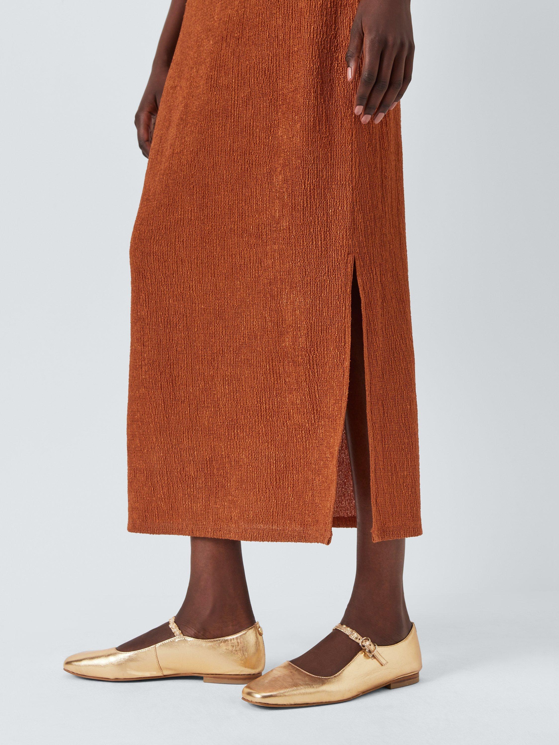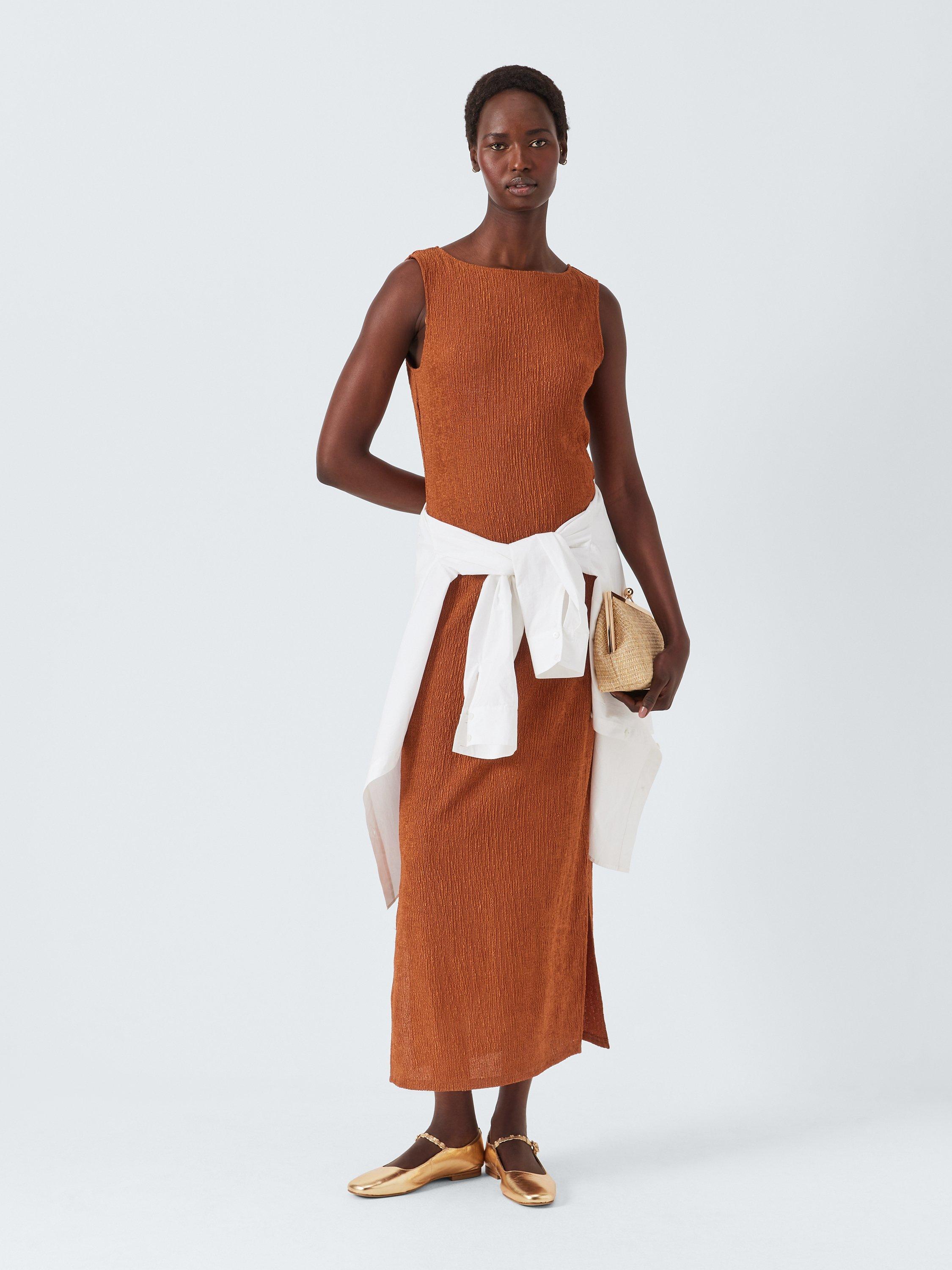 In a midi cut, the jersey dress is detailed with a charming crinkle handle - perfect for adding a textured look to your edit.